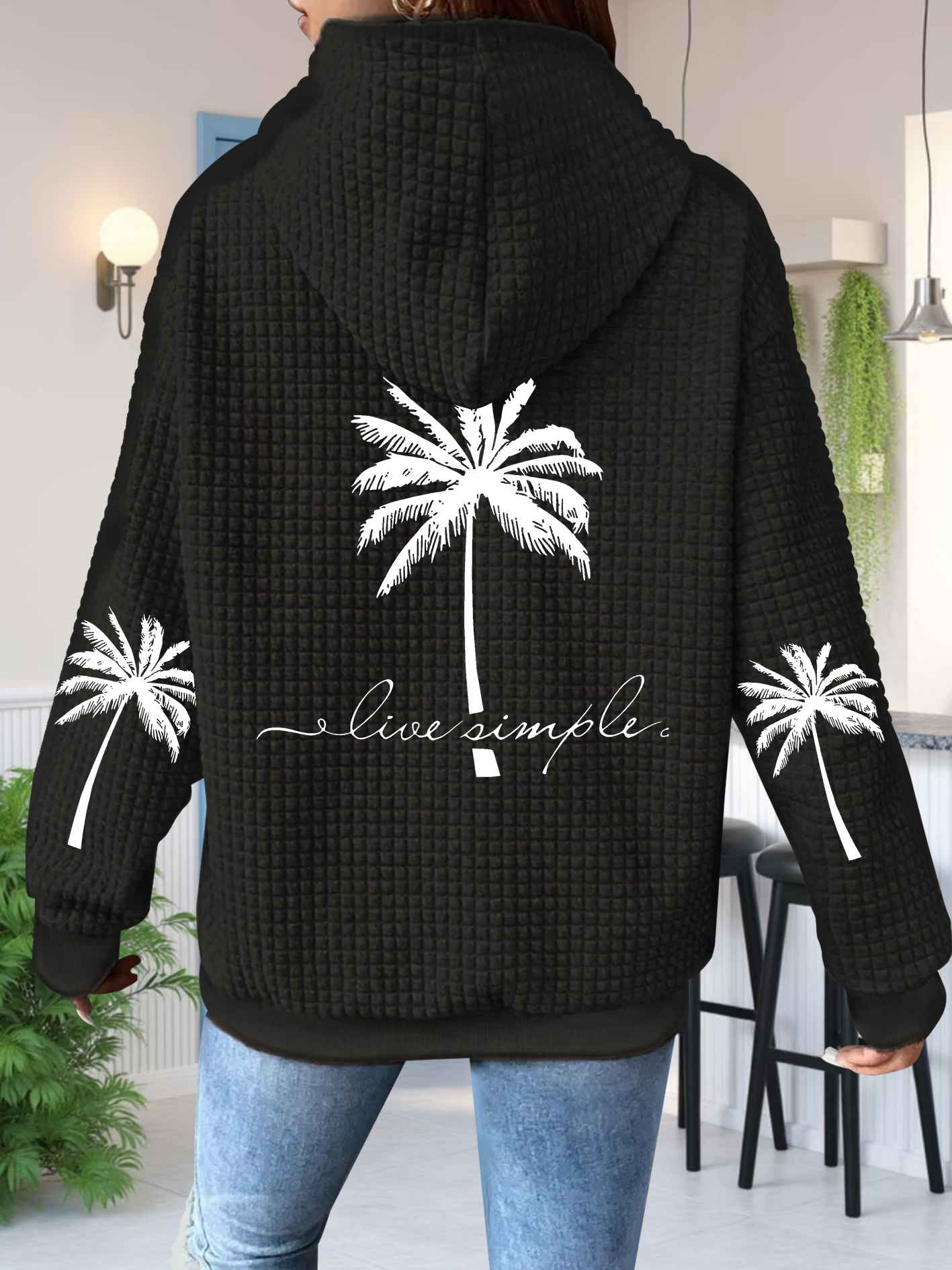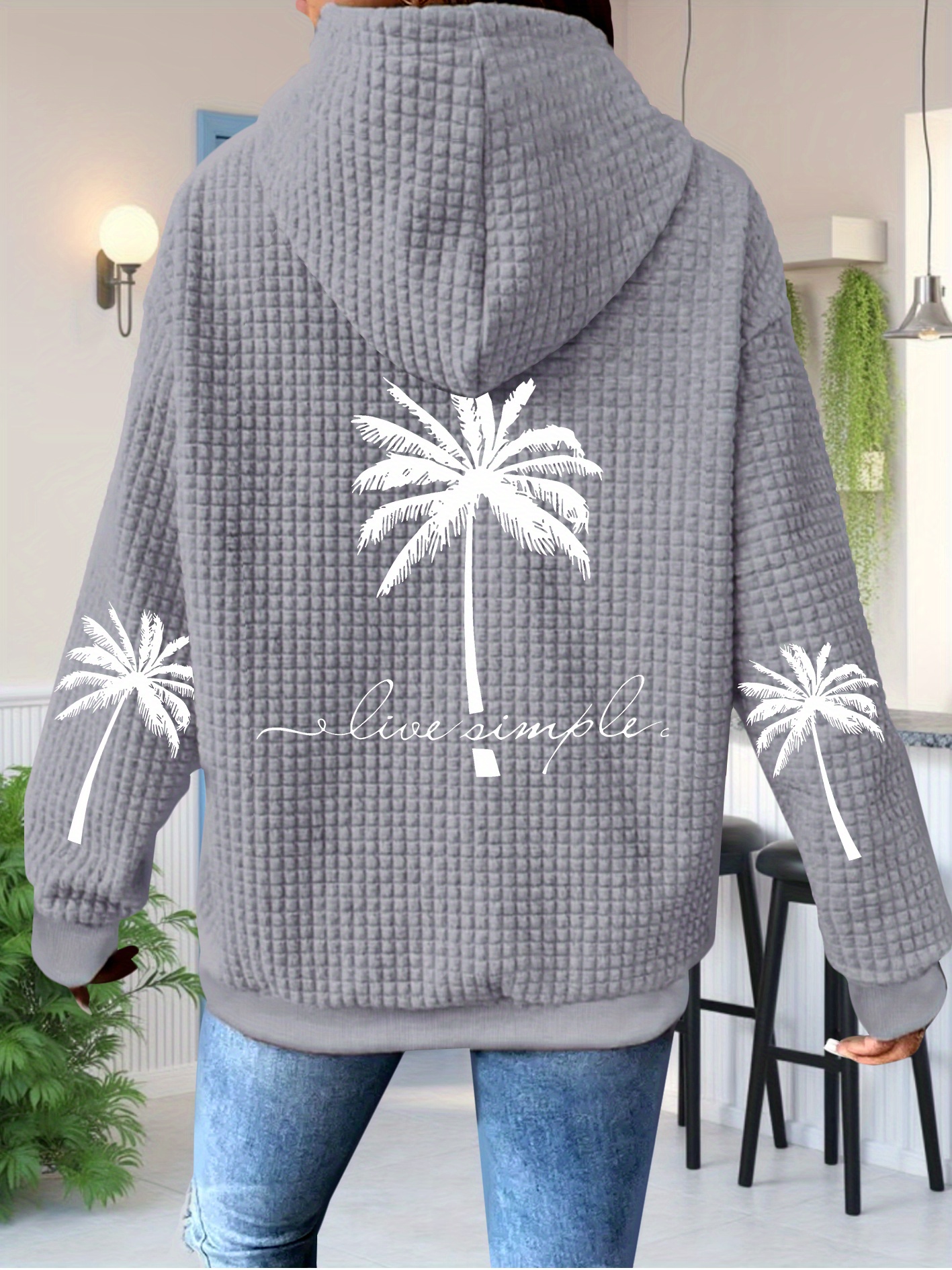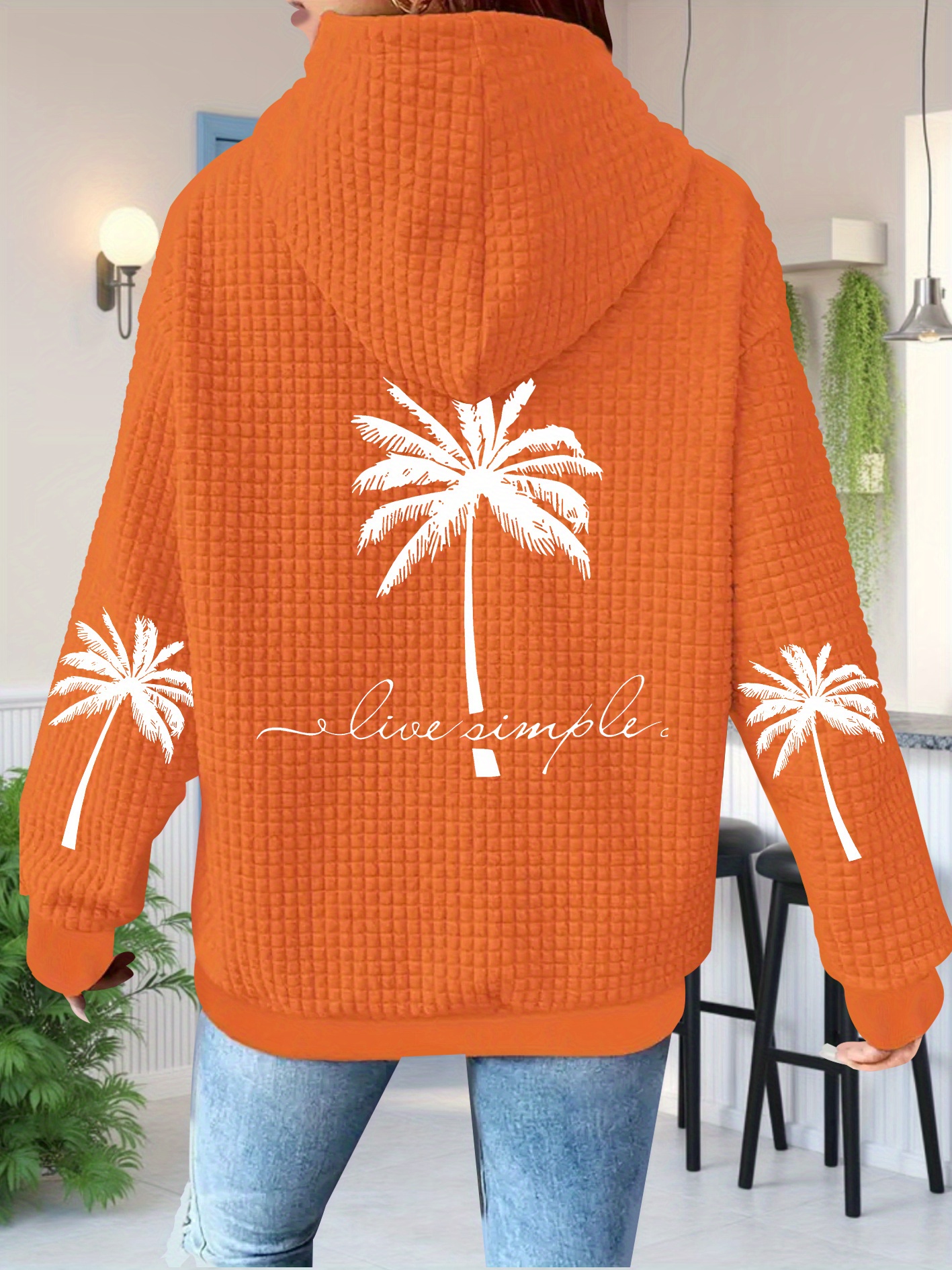 1 review for Women’s Coconut Tree Print Waffle Zip-Up Hoodie Drawstring Casual