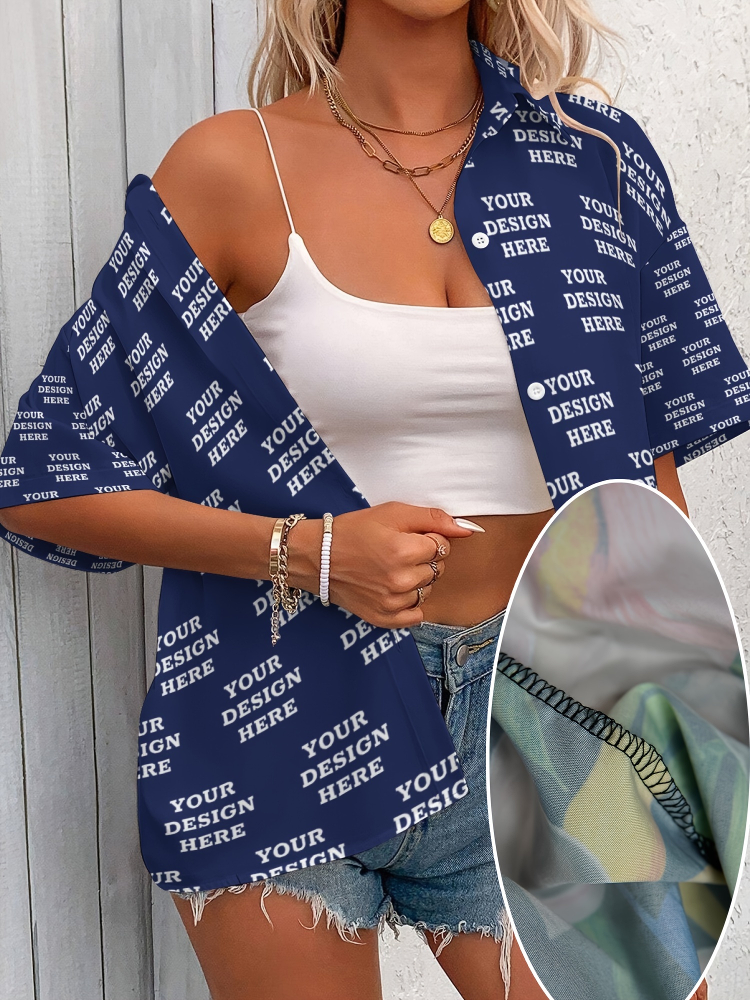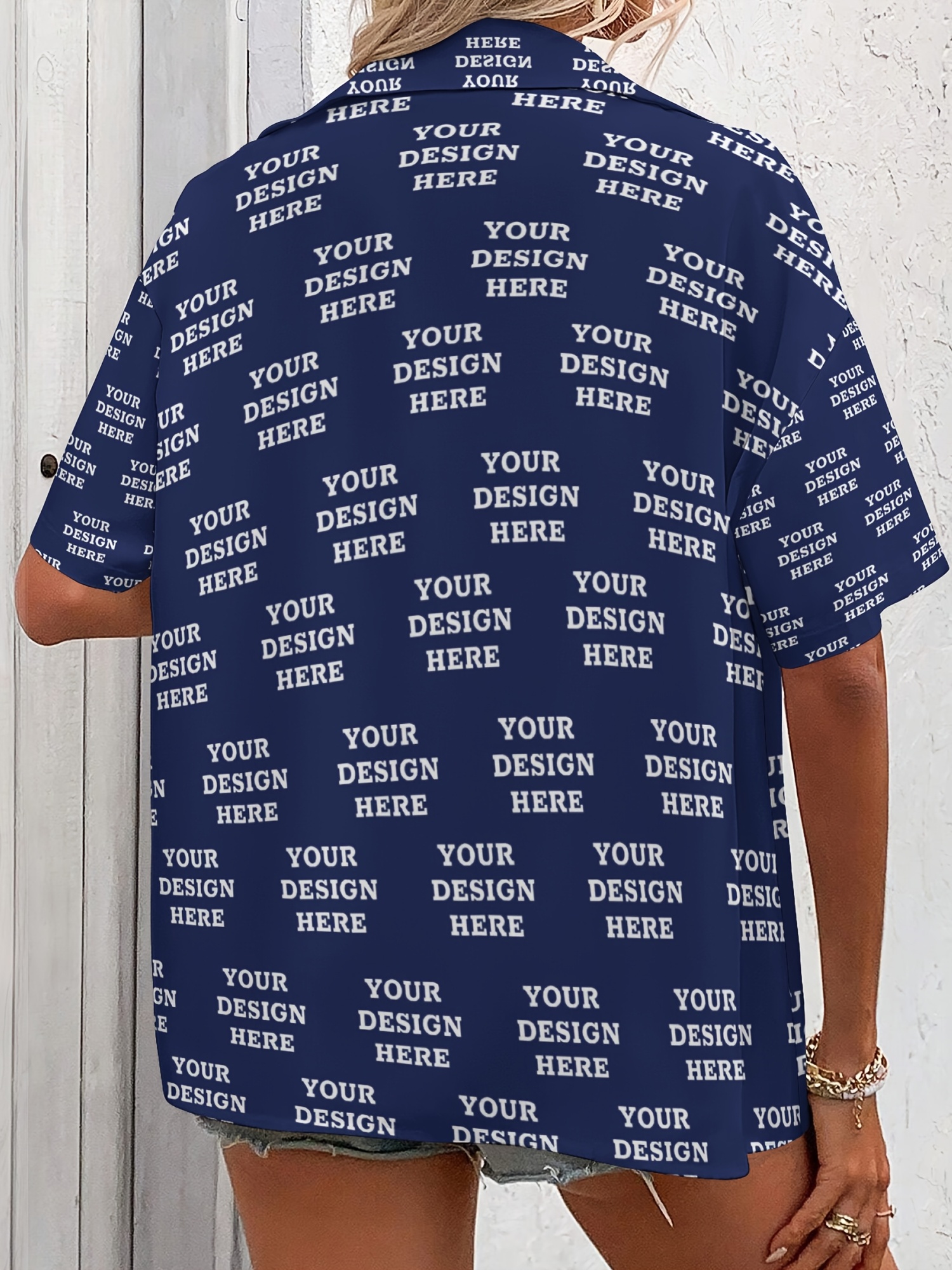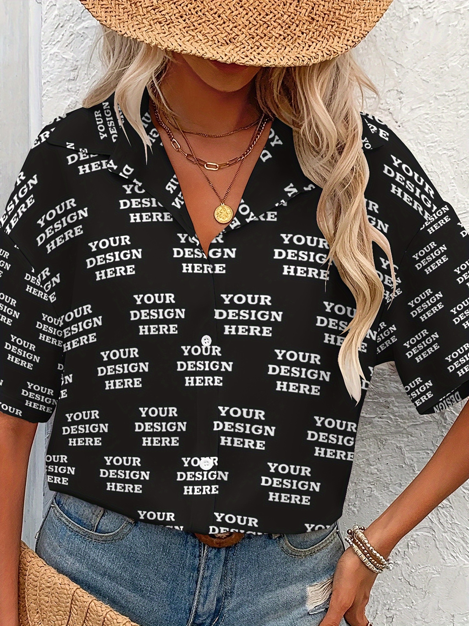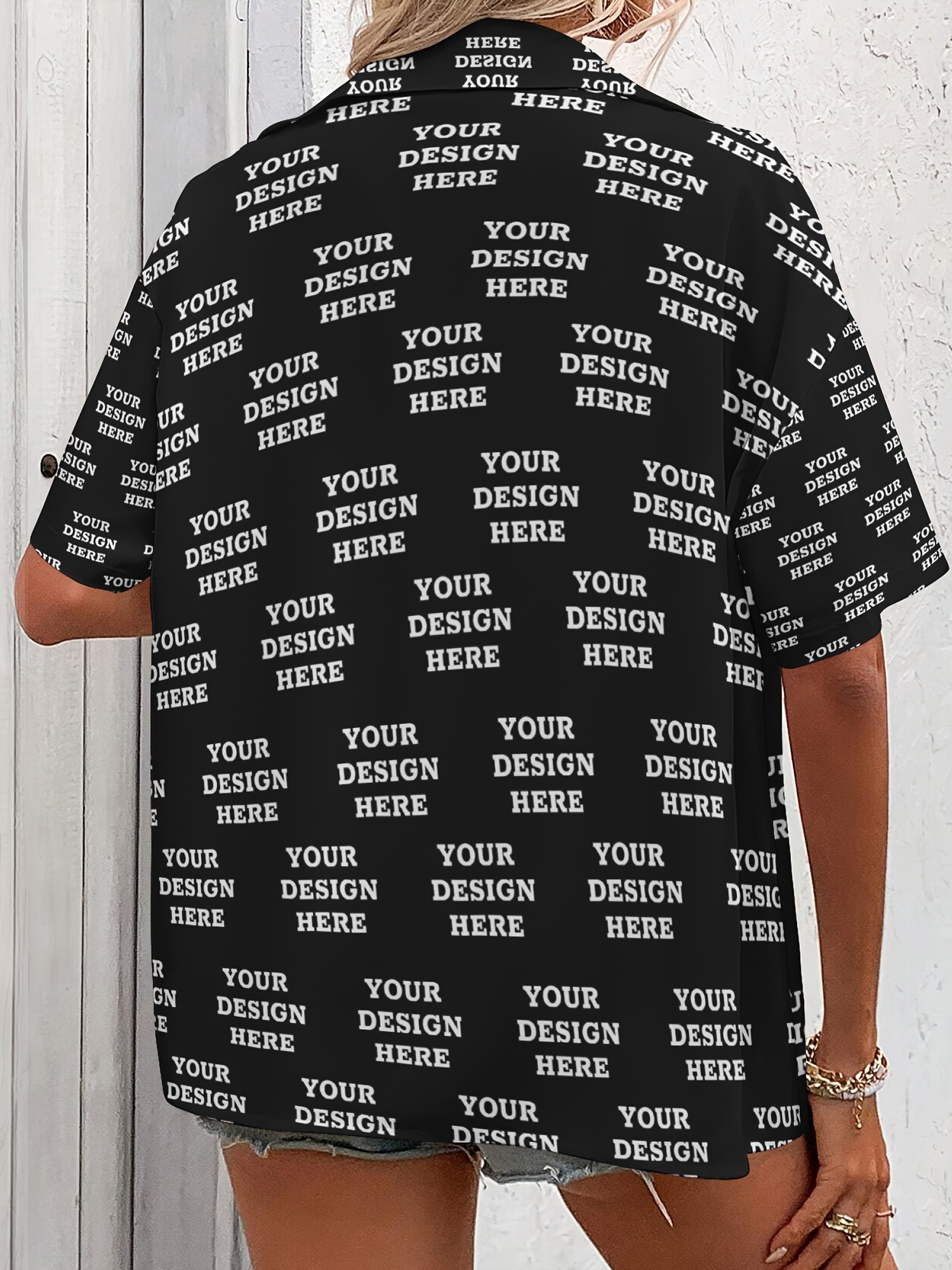 Customizable Women’s Hawaiian Shirt Black Short Sleeve Button-Up