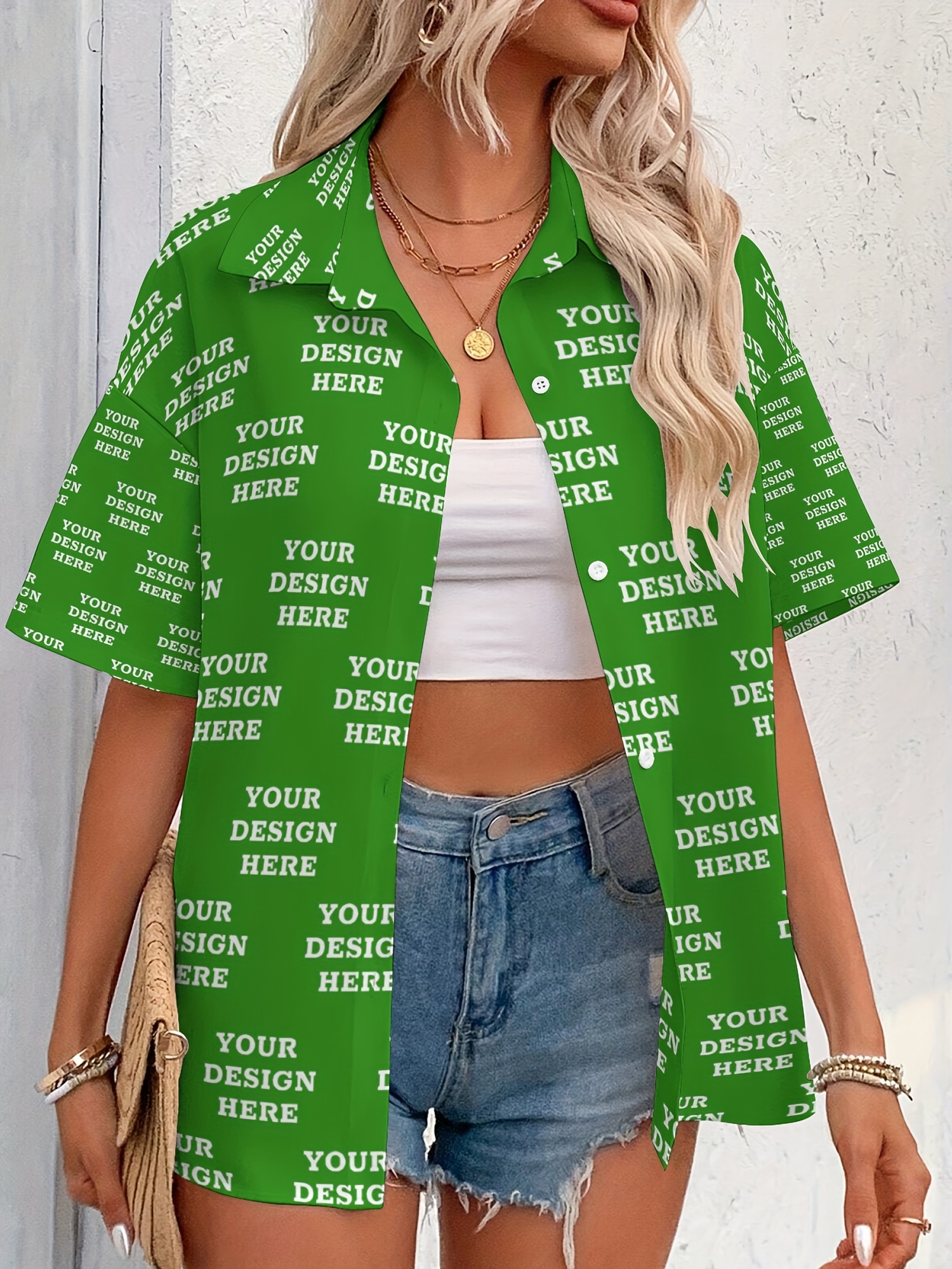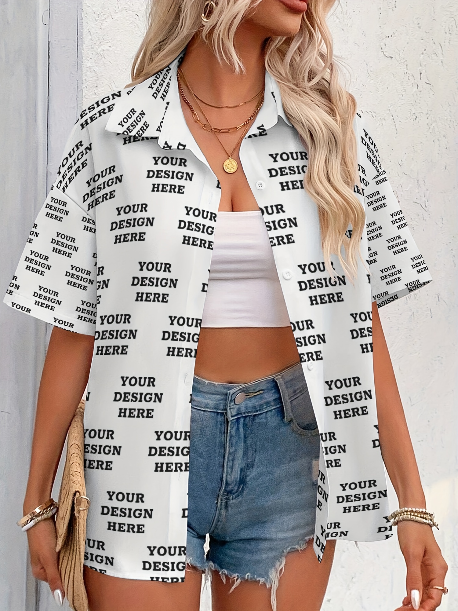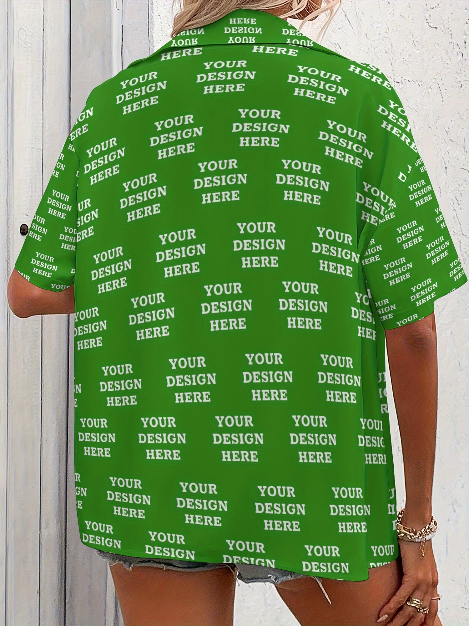 Customizable Women’s Hawaiian Shirt Black Short Sleeve Button-Up