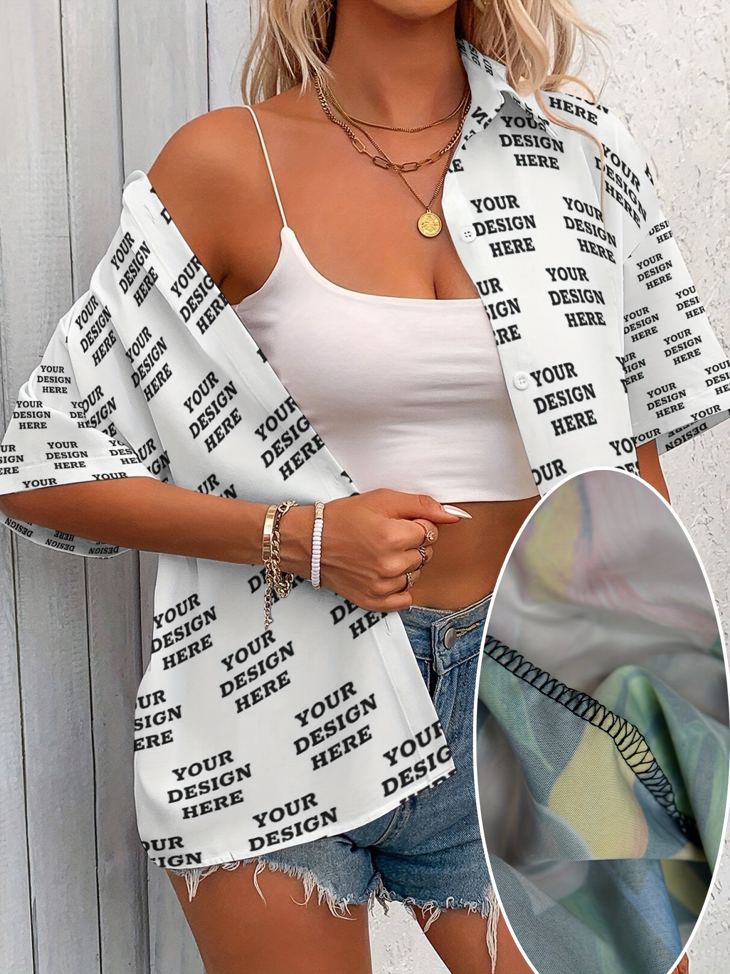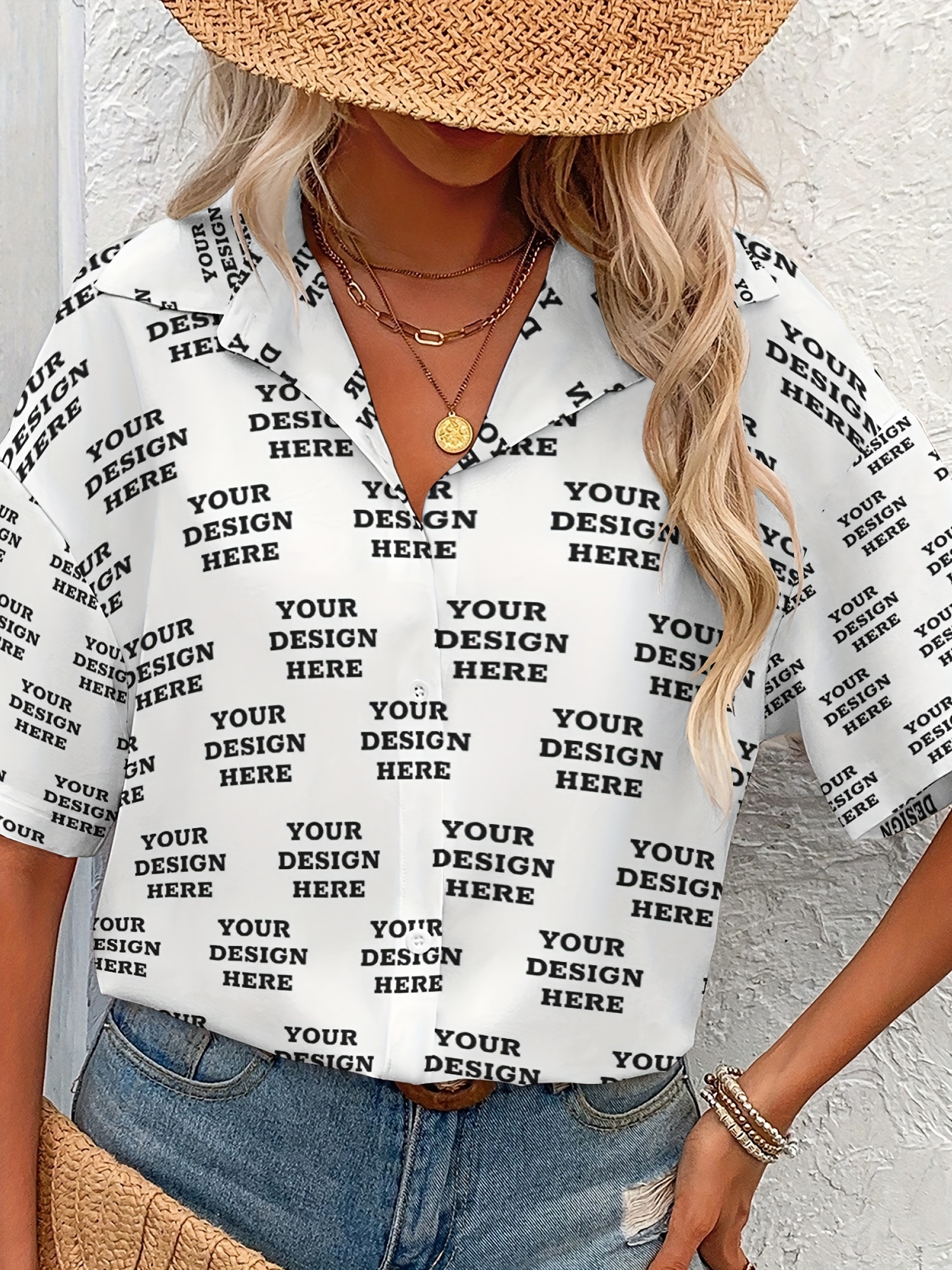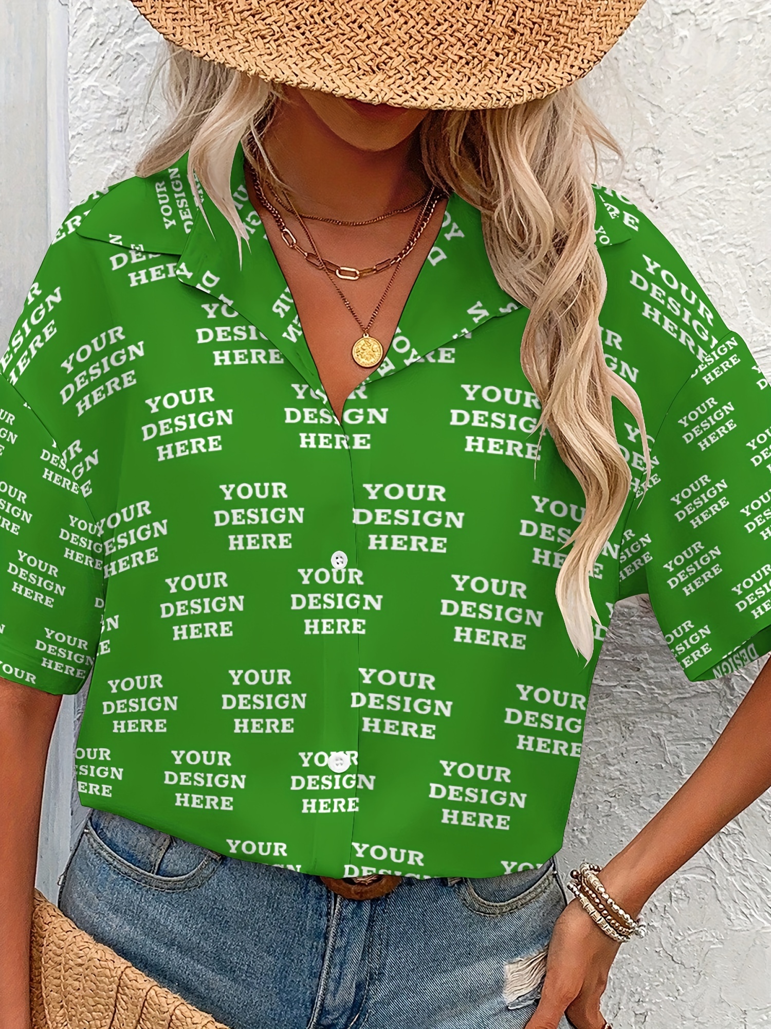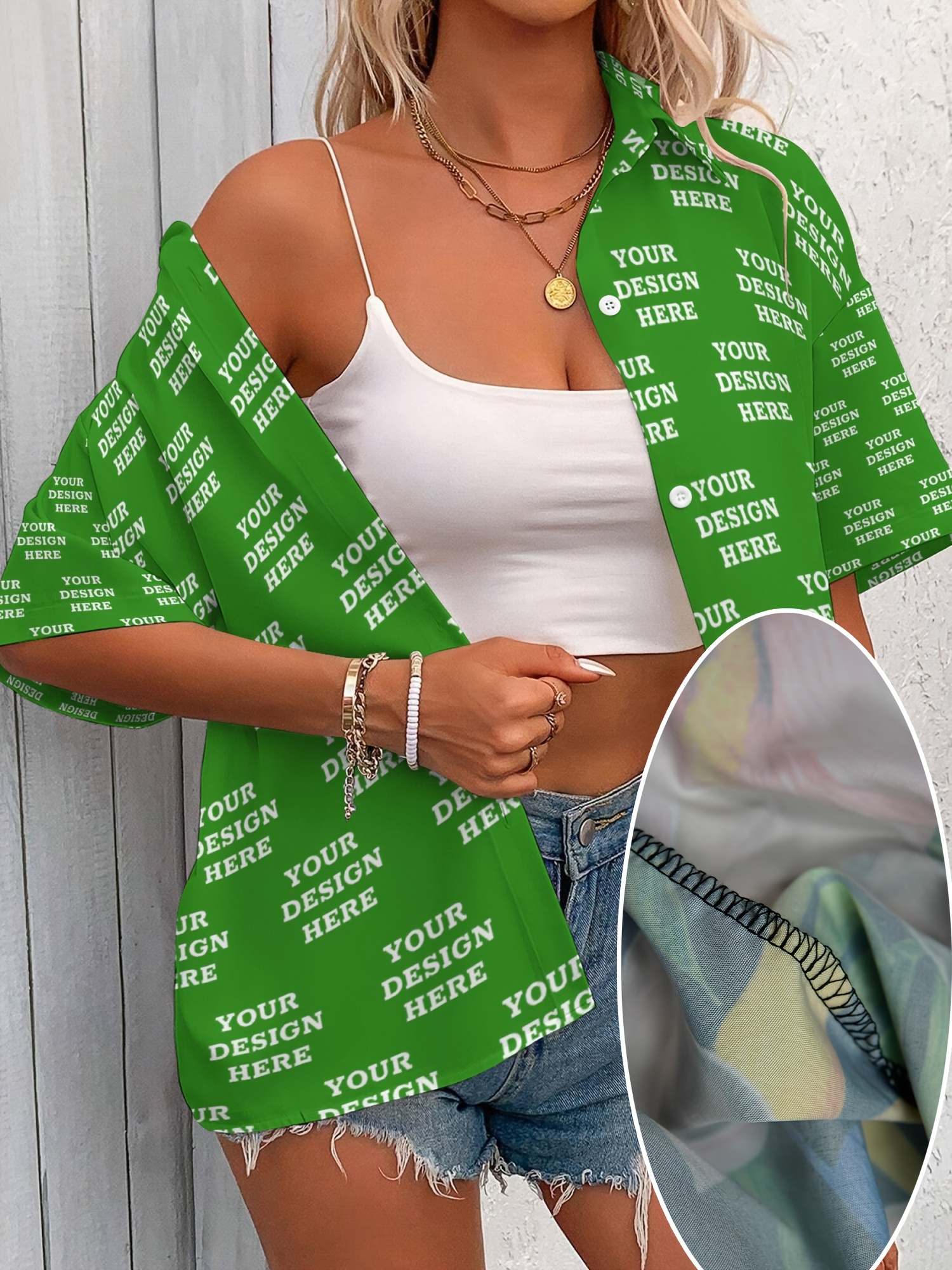 Customizable Women’s Hawaiian Shirt Black Short Sleeve Button-Up