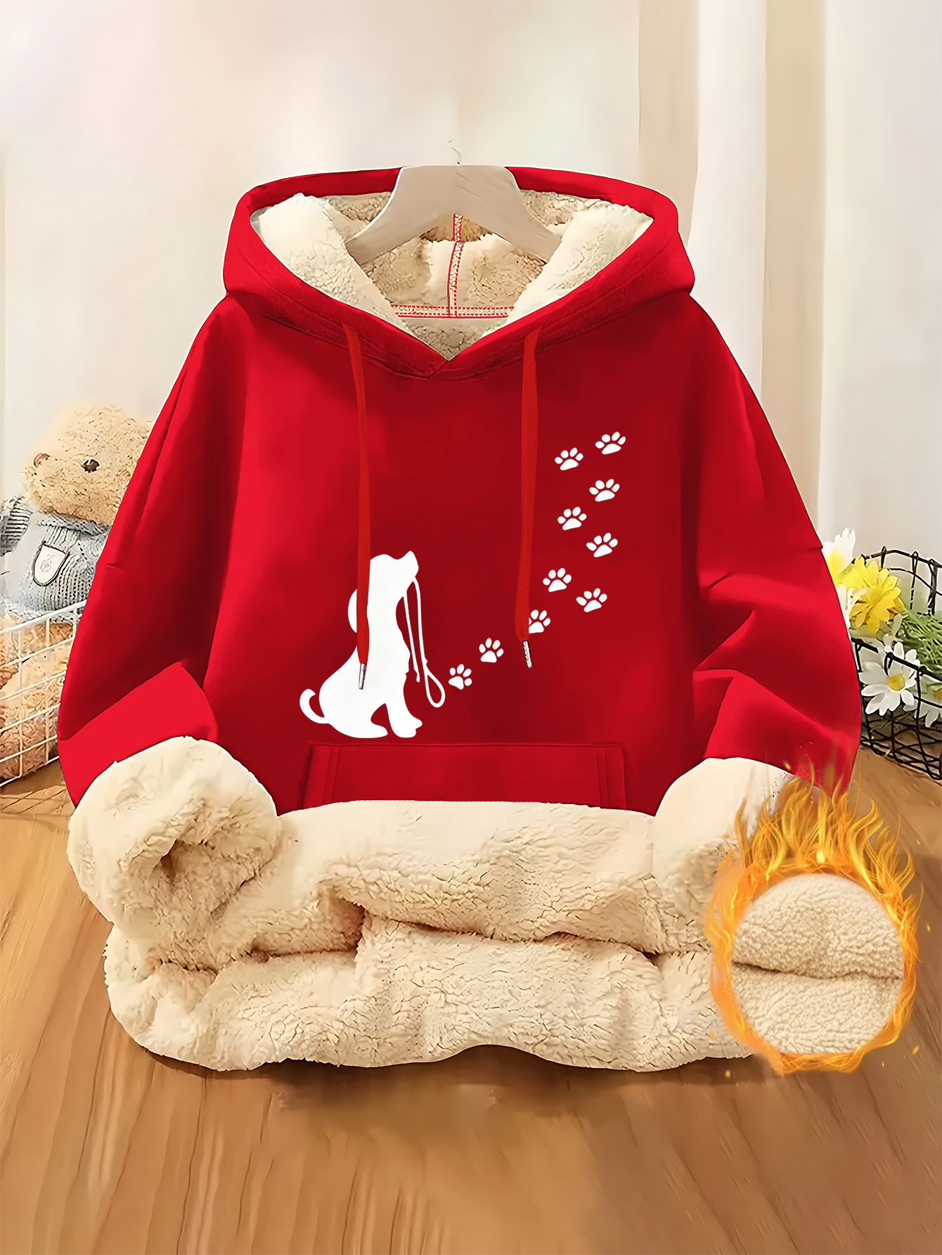 Be the first to review “Cute Pet Dog Paw Print Track Silhouette Ladies Fleece Lined Hooded Sweatshirt | Thick and Warm Fiber, Suitable for Casual Composite Fleece Warm Clothing for Autumn and Winter Seasons” Cancel reply