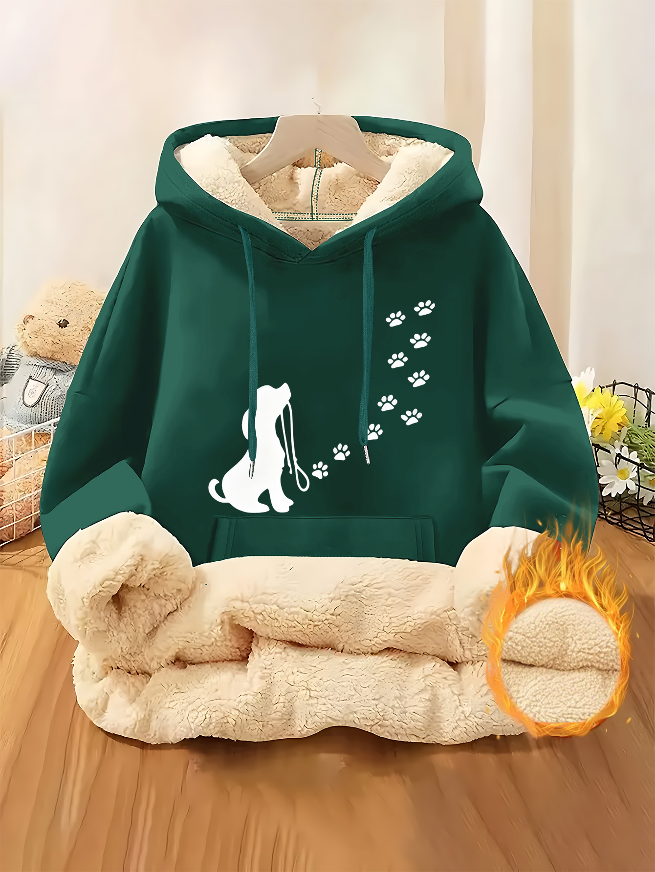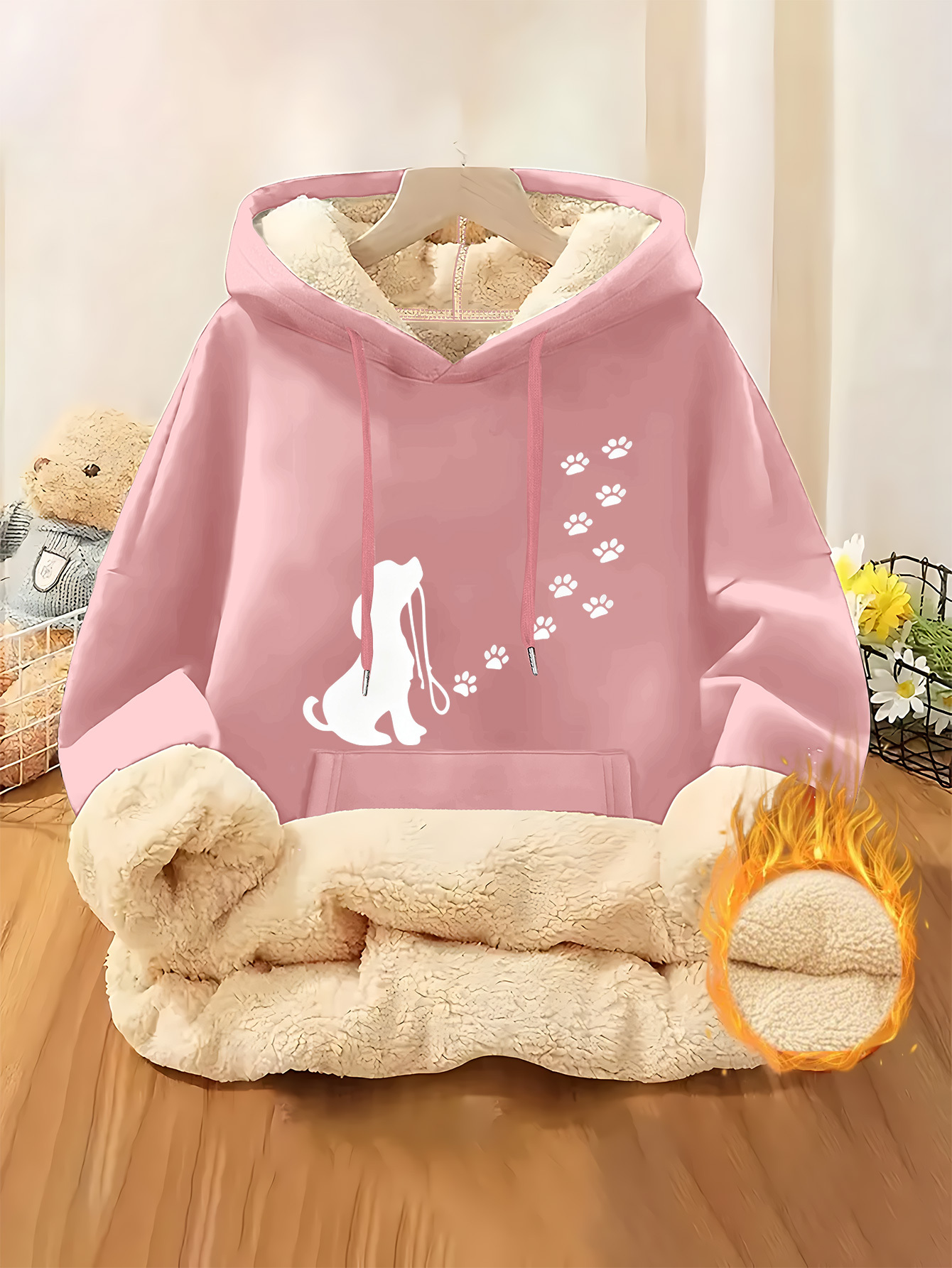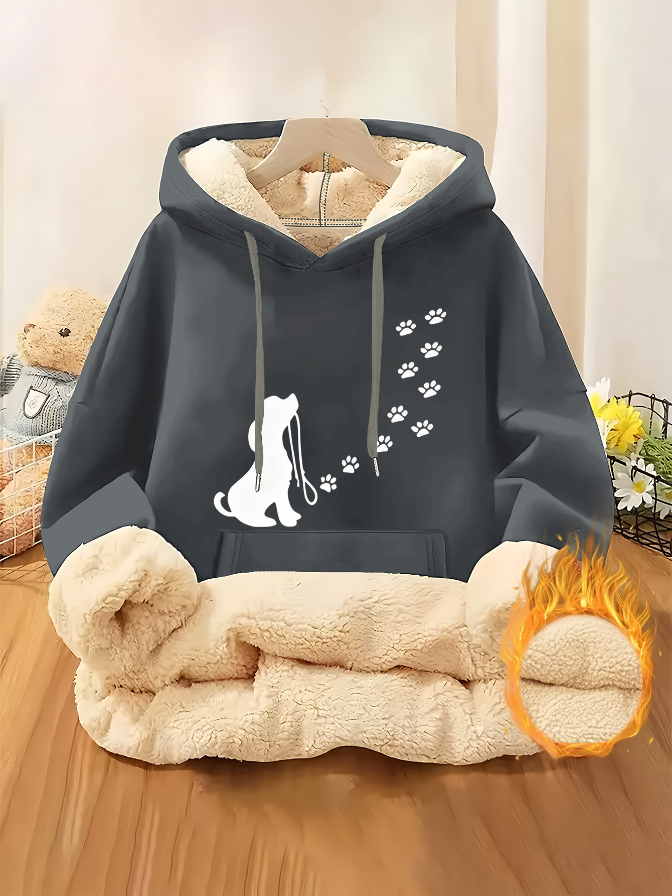 Be the first to review “Cute Pet Dog Paw Print Track Silhouette Ladies Fleece Lined Hooded Sweatshirt | Thick and Warm Fiber, Suitable for Casual Composite Fleece Warm Clothing for Autumn and Winter Seasons” Cancel reply