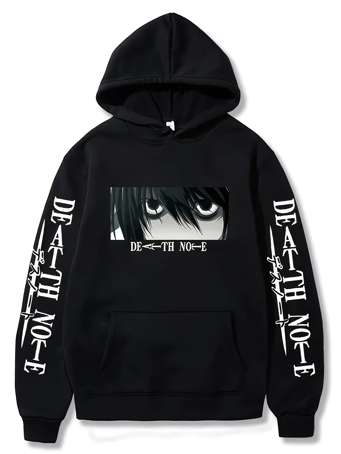 Death Note Graphic Oversized Hoodie – Unisex Streetwear Pullover with Front Pocket, Edgy Anime-Inspired Print, All-Season Comfort Fit for Men & Women