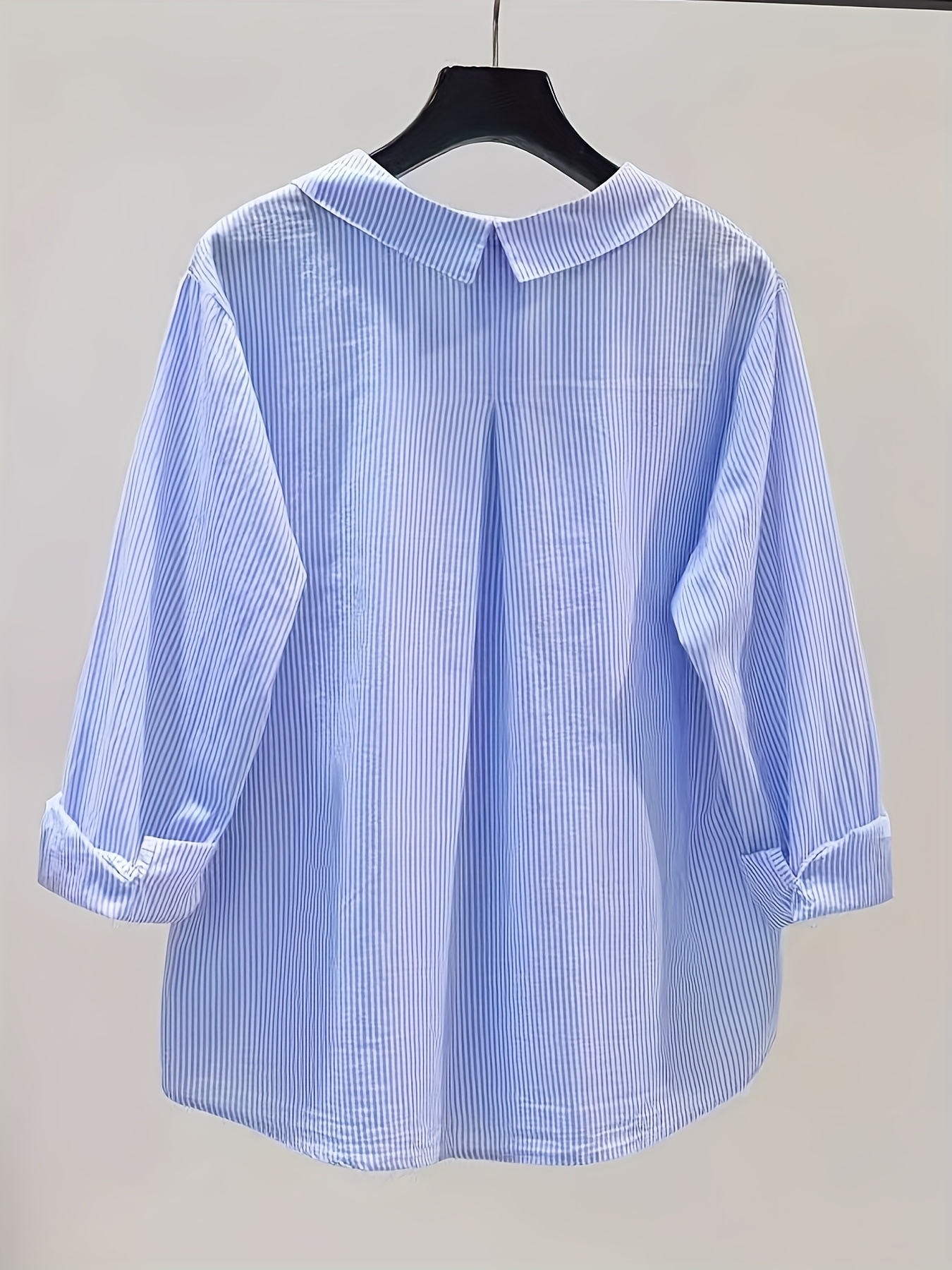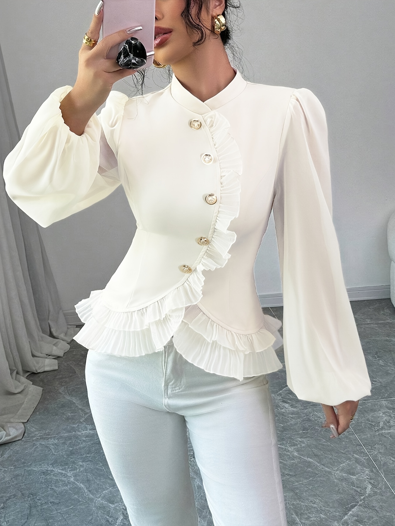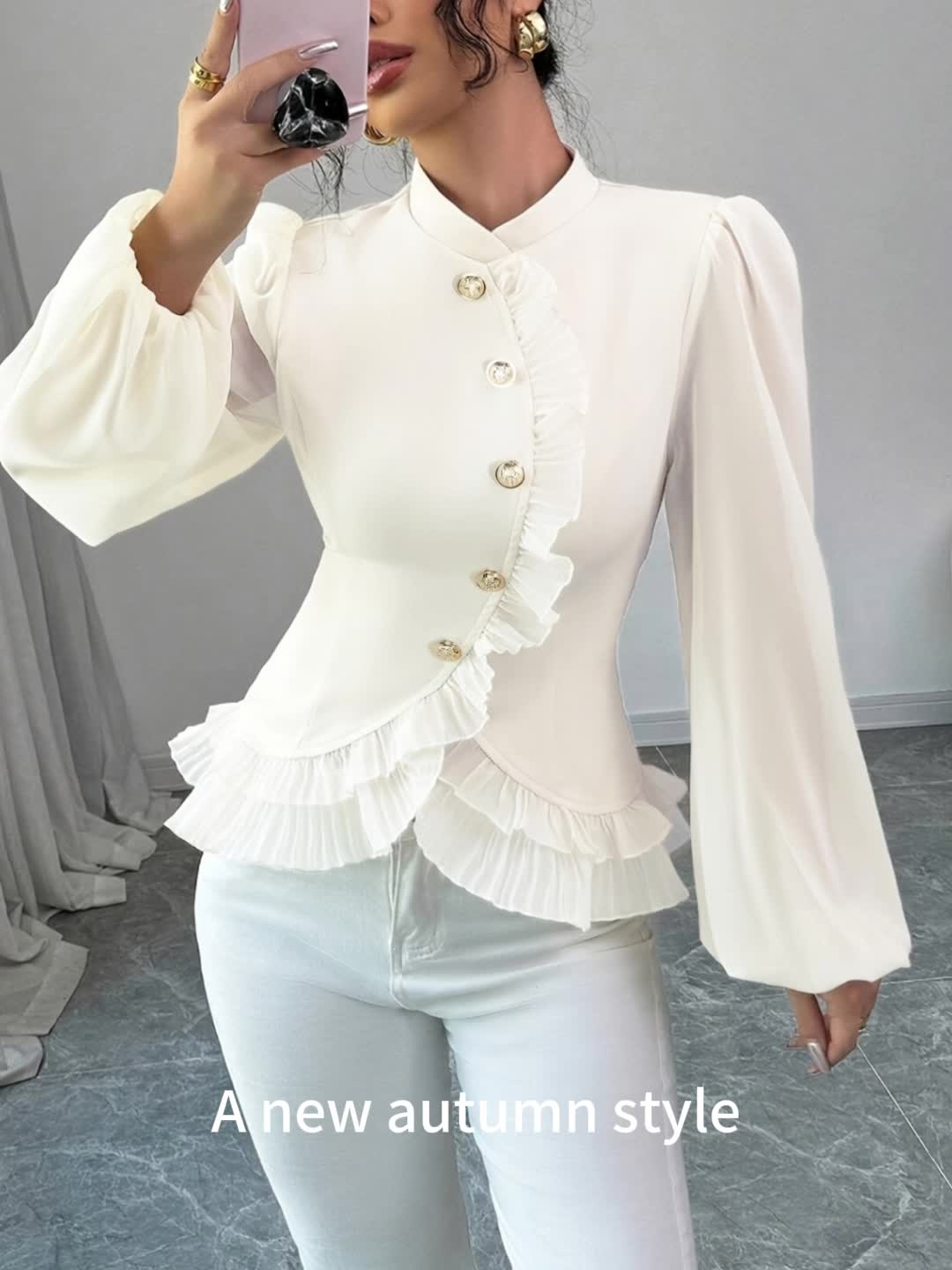Elegant Collar Button-Front Shirt – All-Season Casual & Dress Shirt with Geometric Collar, Button-Front Placket, Machine Washable Blouse for Office, Semi-Formal Wear – Year-Round Versatile Top for s