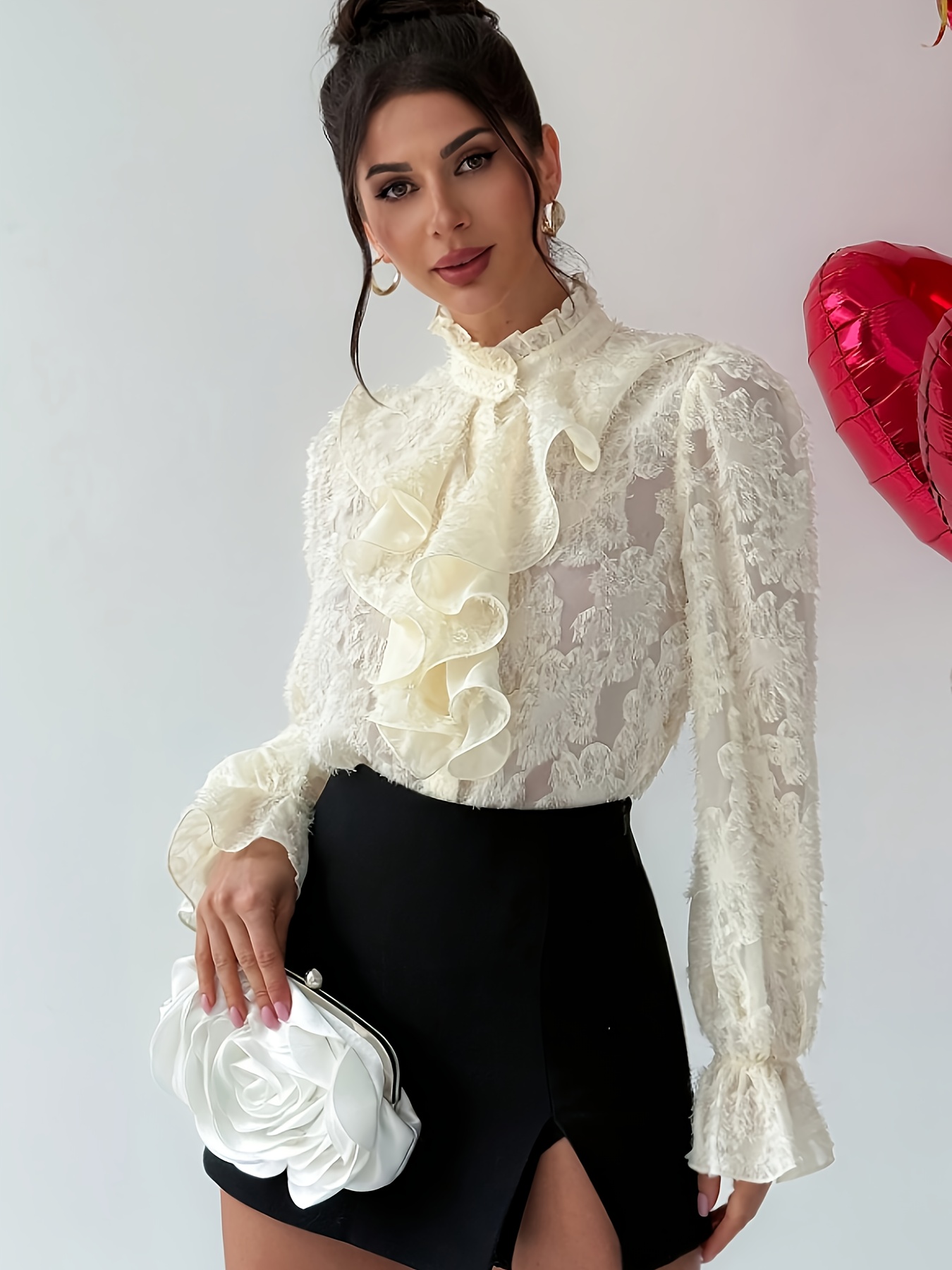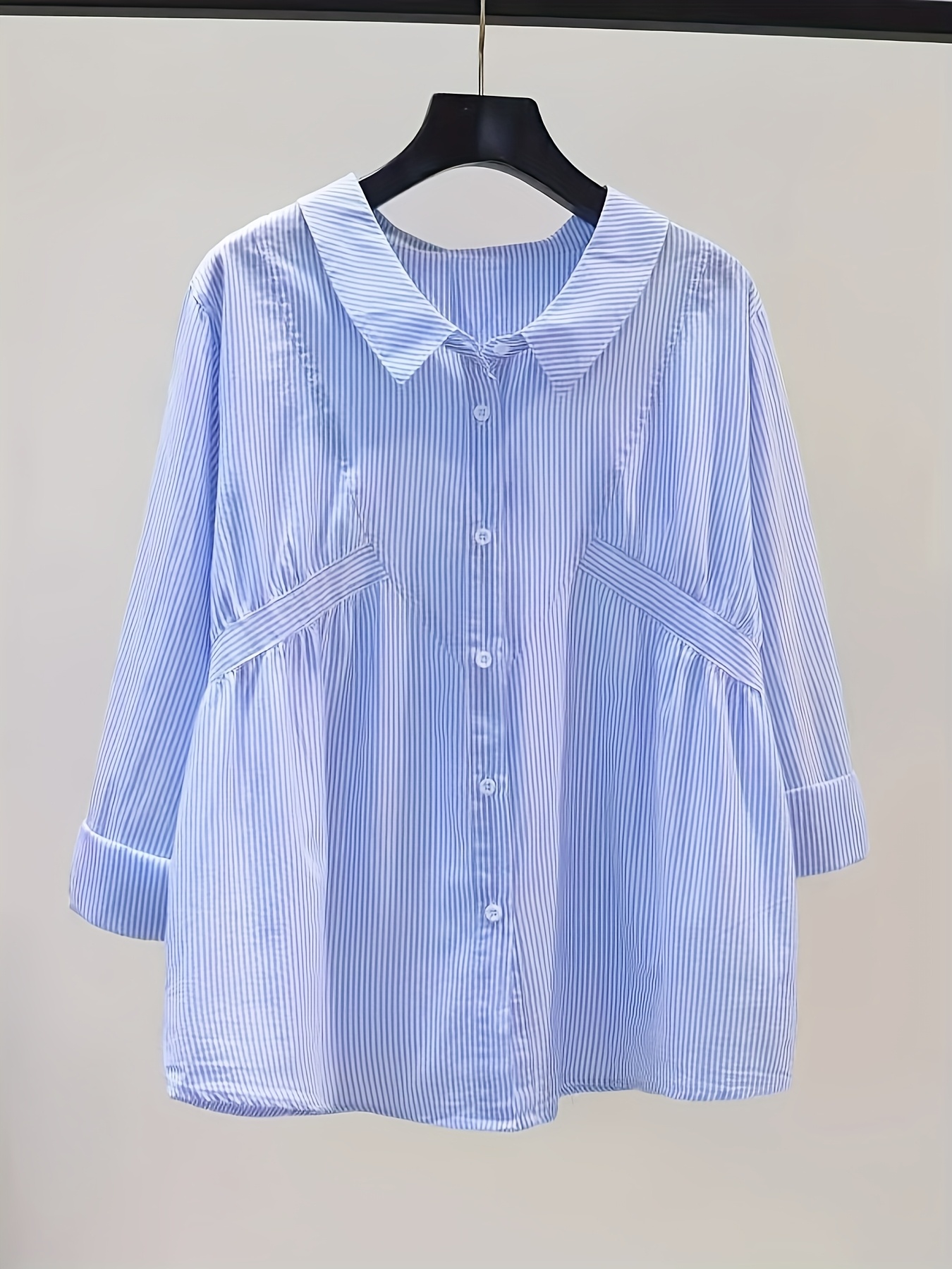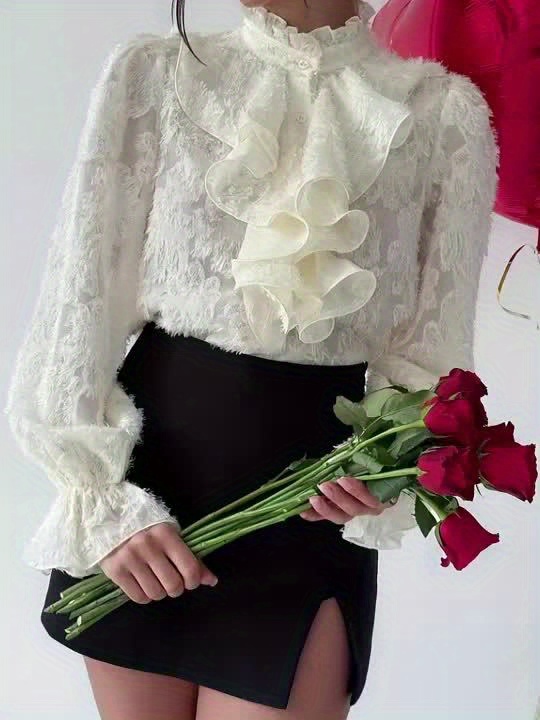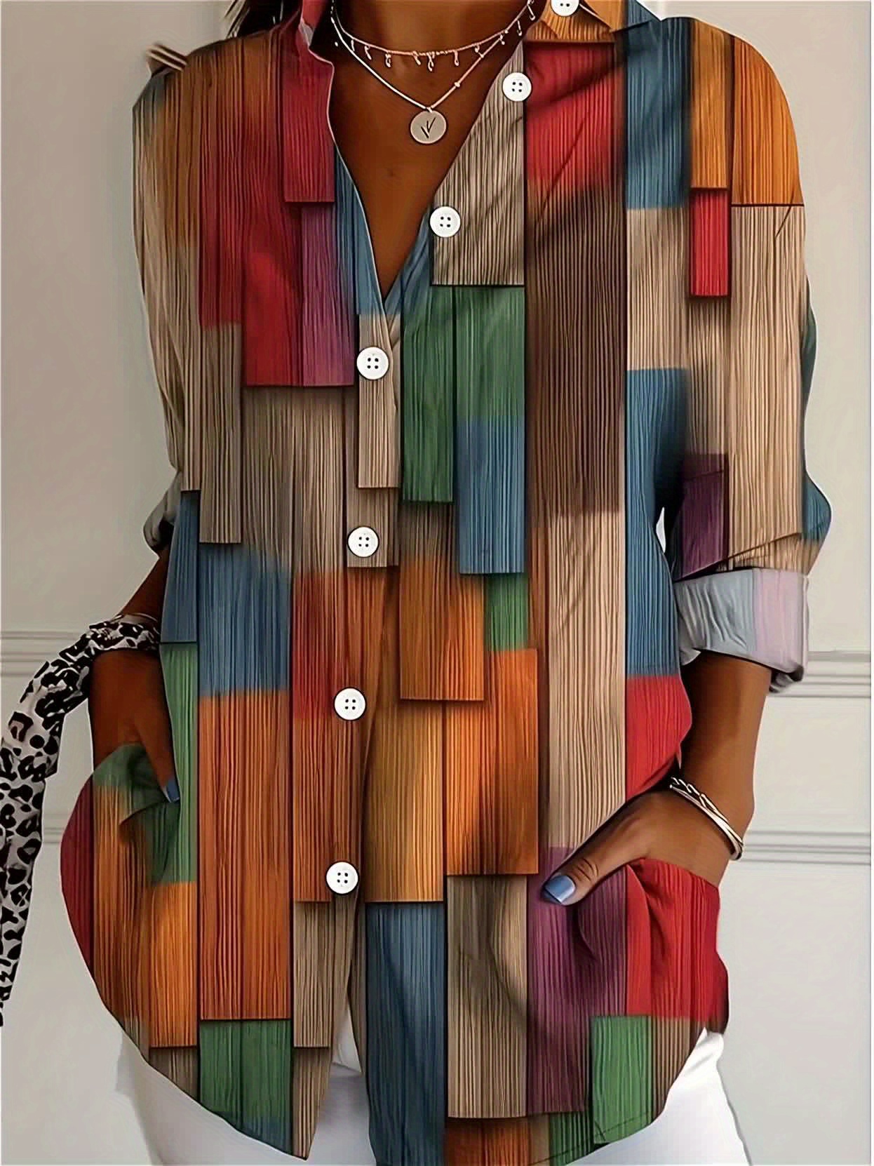 Elegant Collar Button-Front Shirt – All-Season Casual & Dress Shirt with Geometric Collar, Button-Front Placket, Machine Washable Blouse for Office, Semi-Formal Wear – Year-Round Versatile Top for s