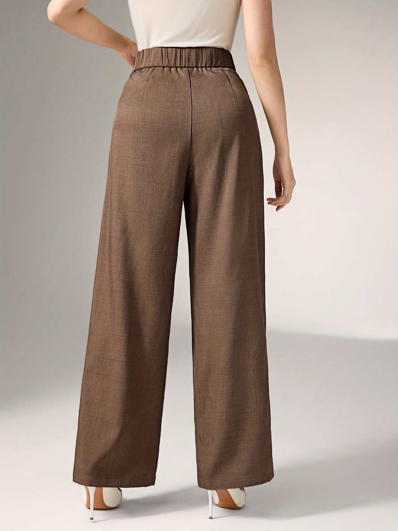 Women’s High-Waist Wide-Leg Trousers Brown Elegant Suit Pants