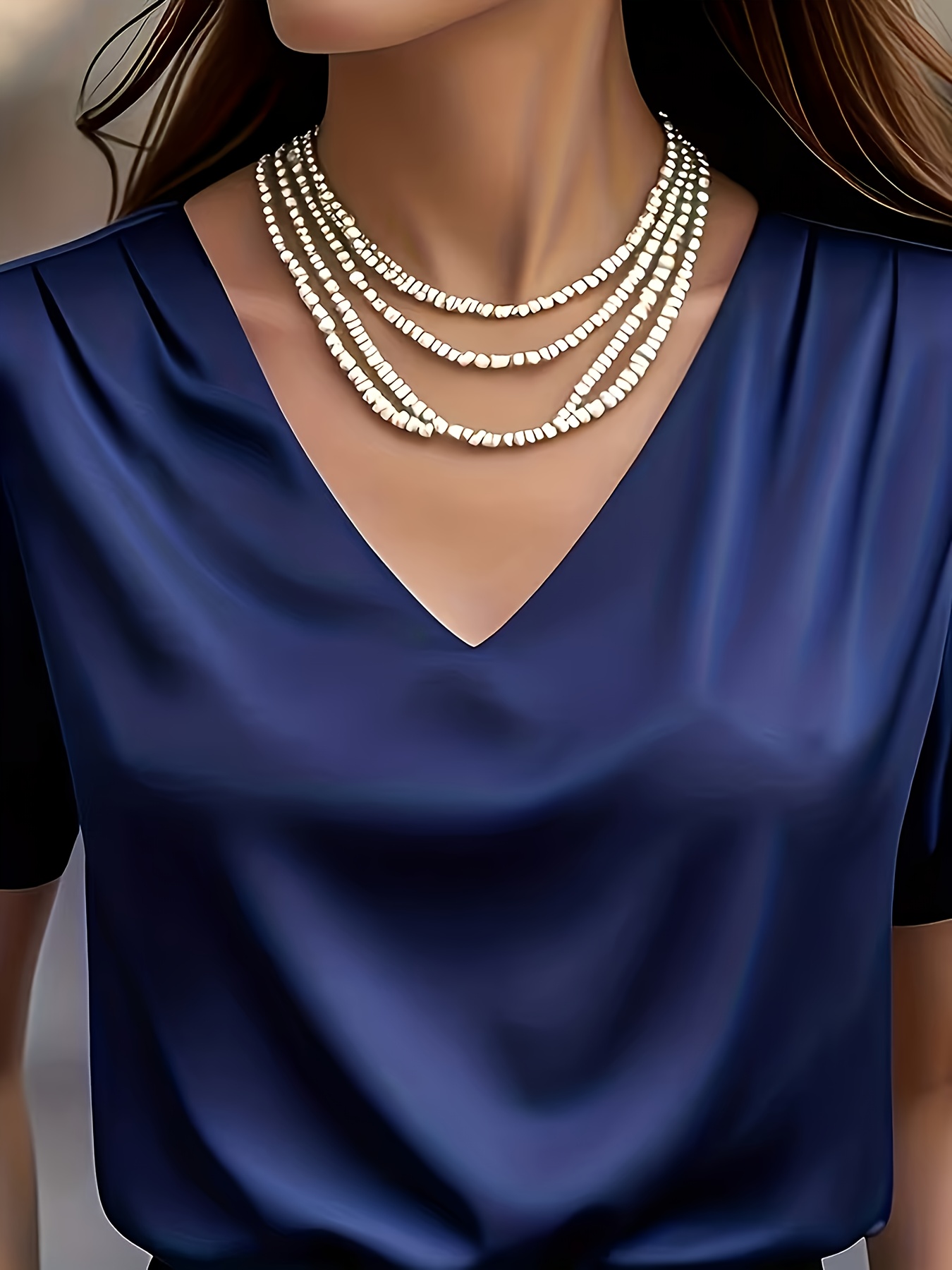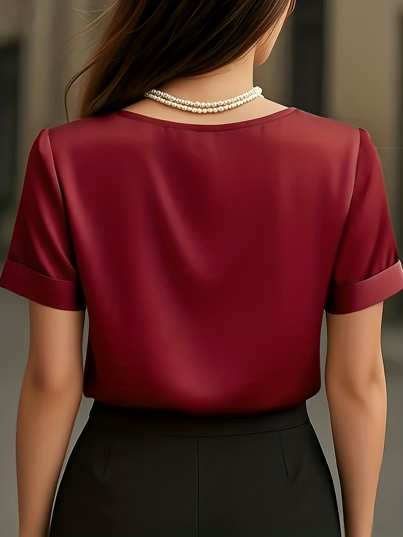 9 reviews for Elegant Satin Solid Color V-Neck Blouse | Short Sleeve, Regular Fit, Suitable for Various Occasions