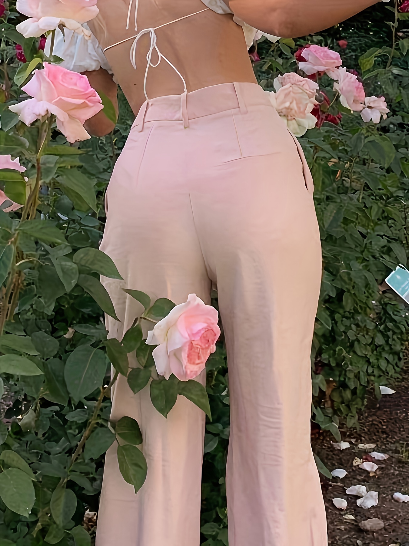 Women’s Long Casual Pants Straight Leg, Button Detail, Regular