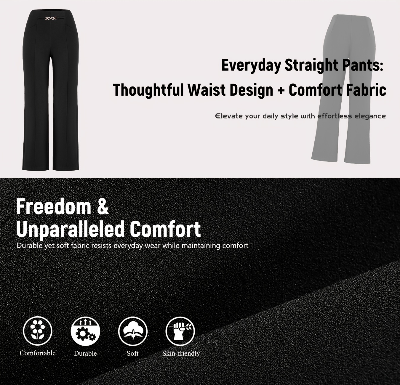 1 review for Elegant Women’S High Waist Wide Leg Pants | Metal Chain Detail, Elastic Waist, Pockets, Long Length, Solid Color, Suitable for Casual and Office Wear