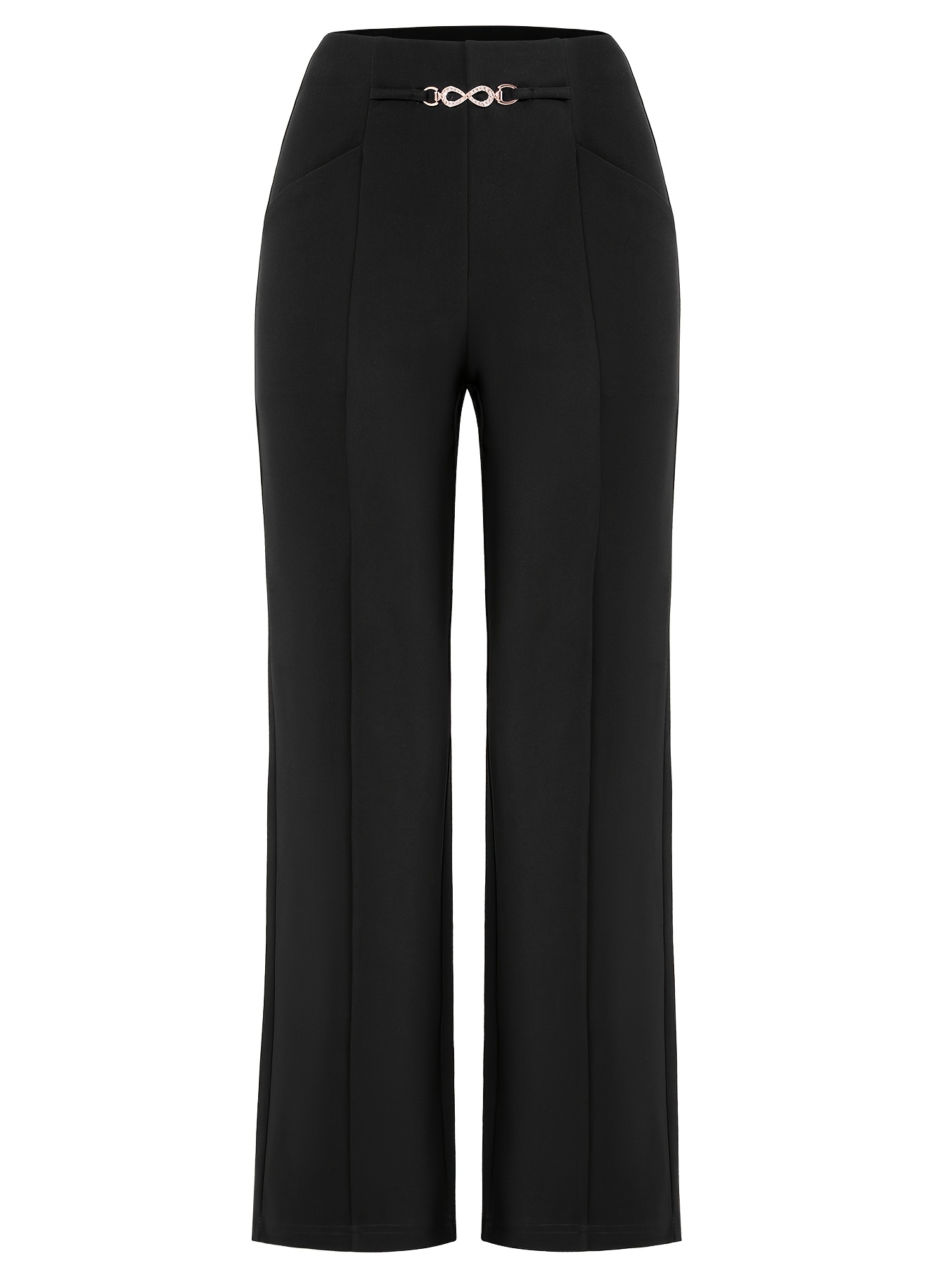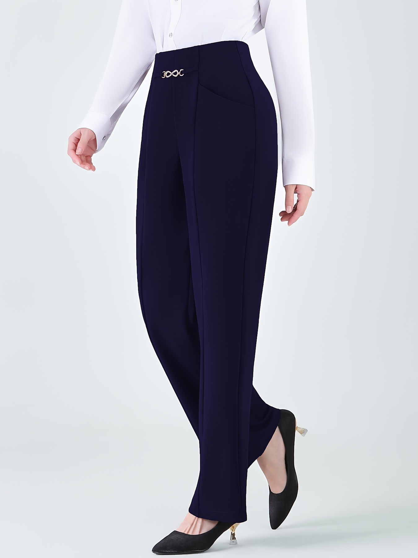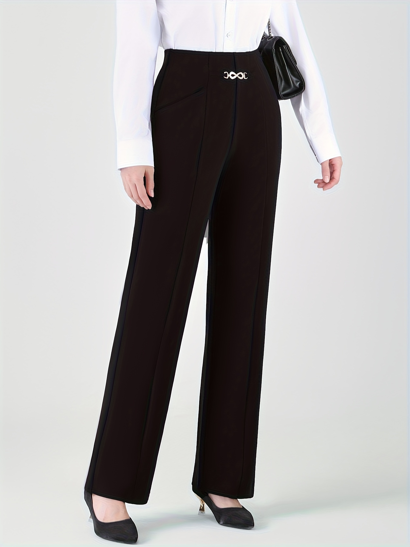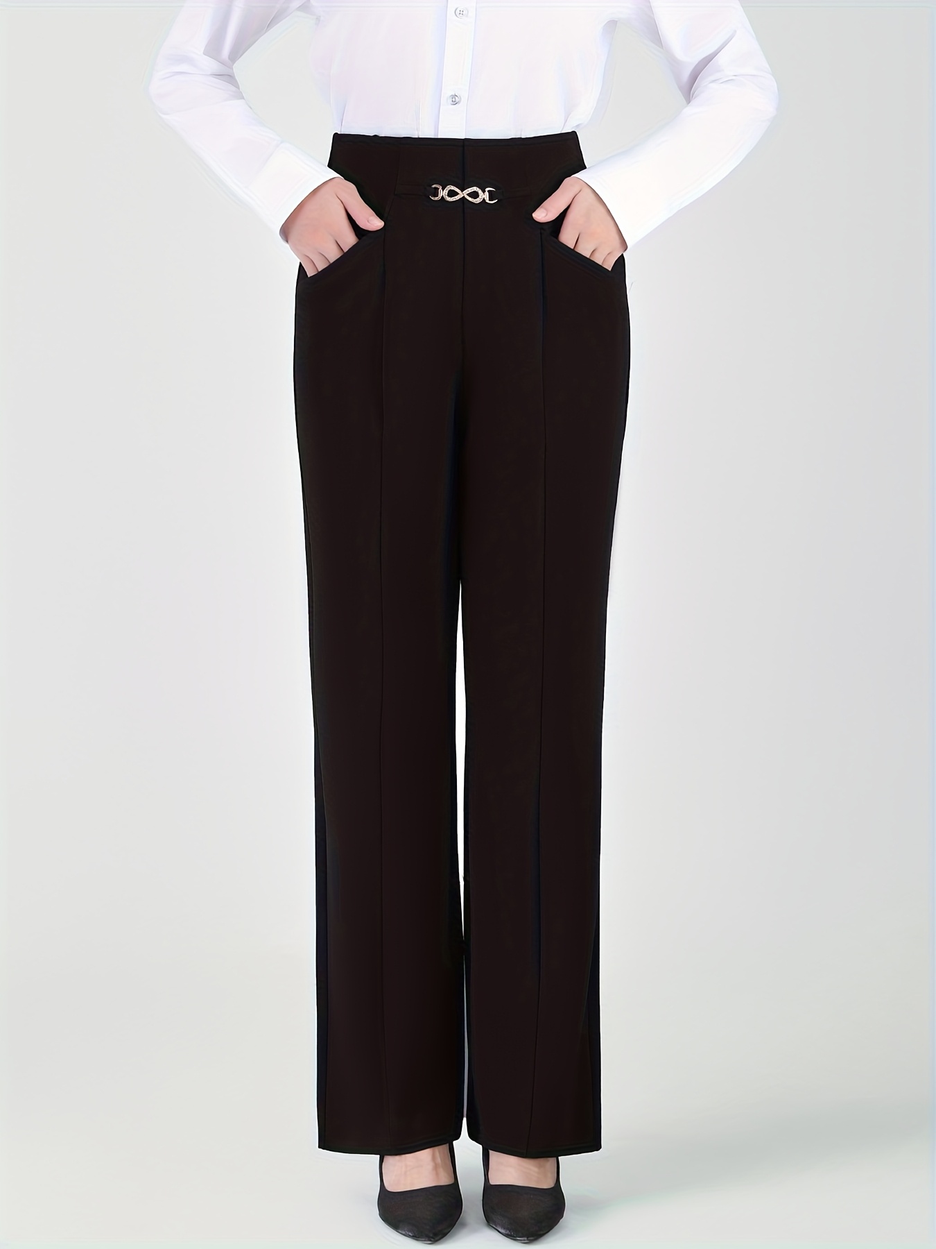 1 review for Elegant Women’S High Waist Wide Leg Pants | Metal Chain Detail, Elastic Waist, Pockets, Long Length, Solid Color, Suitable for Casual and Office Wear