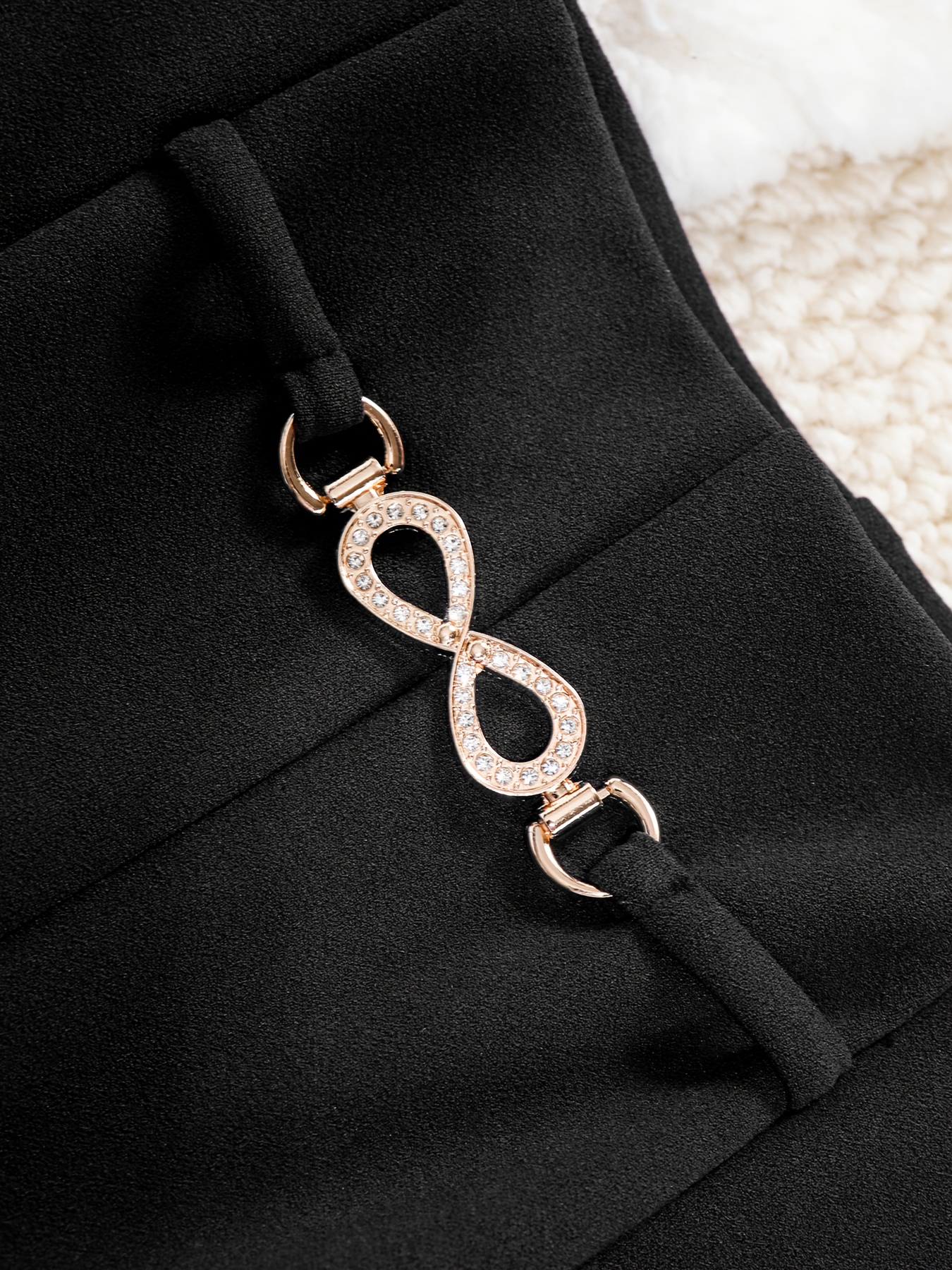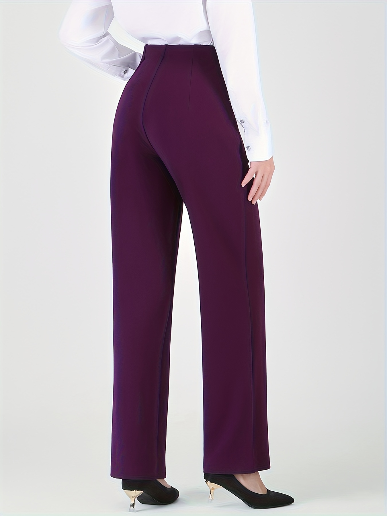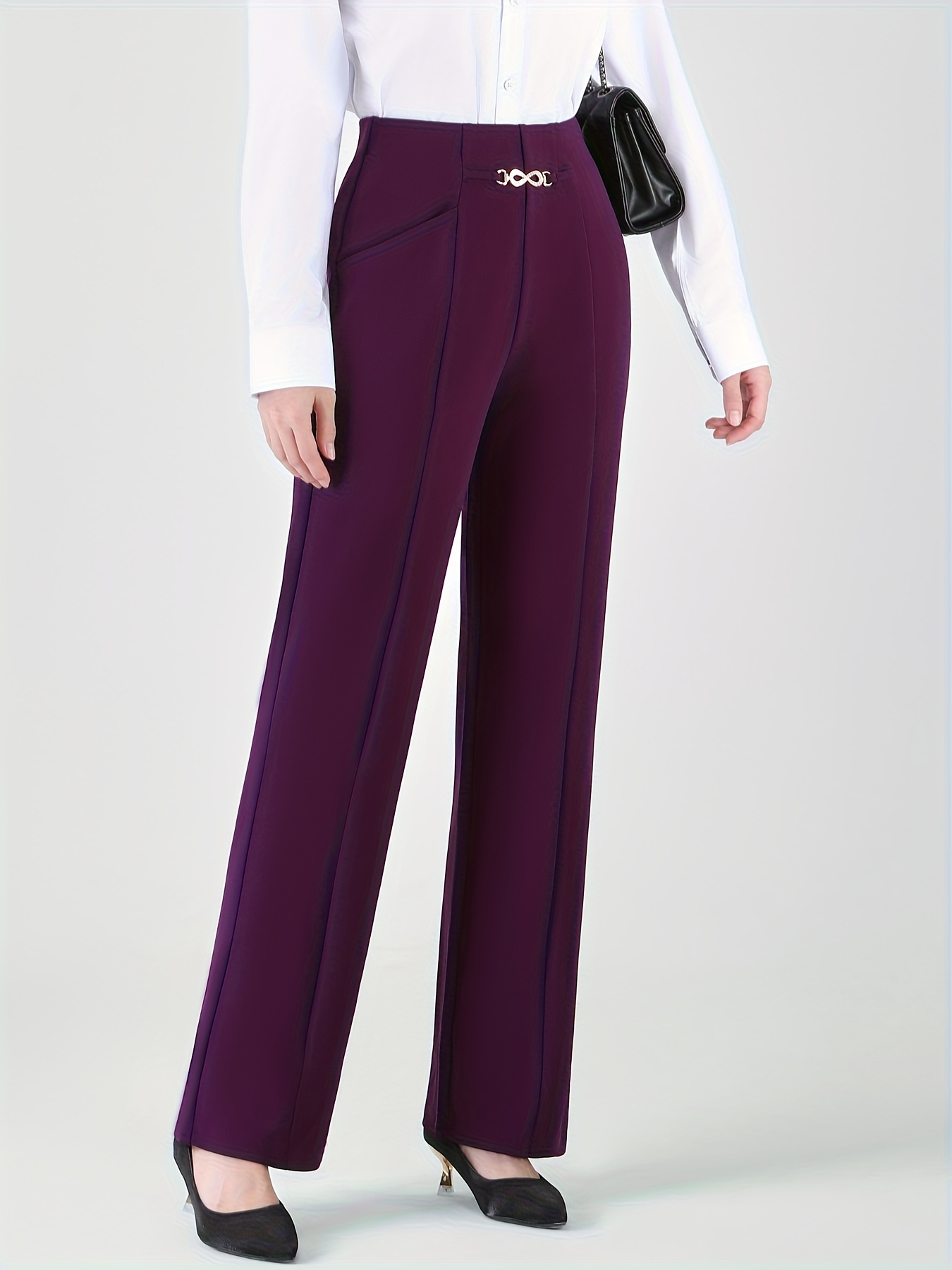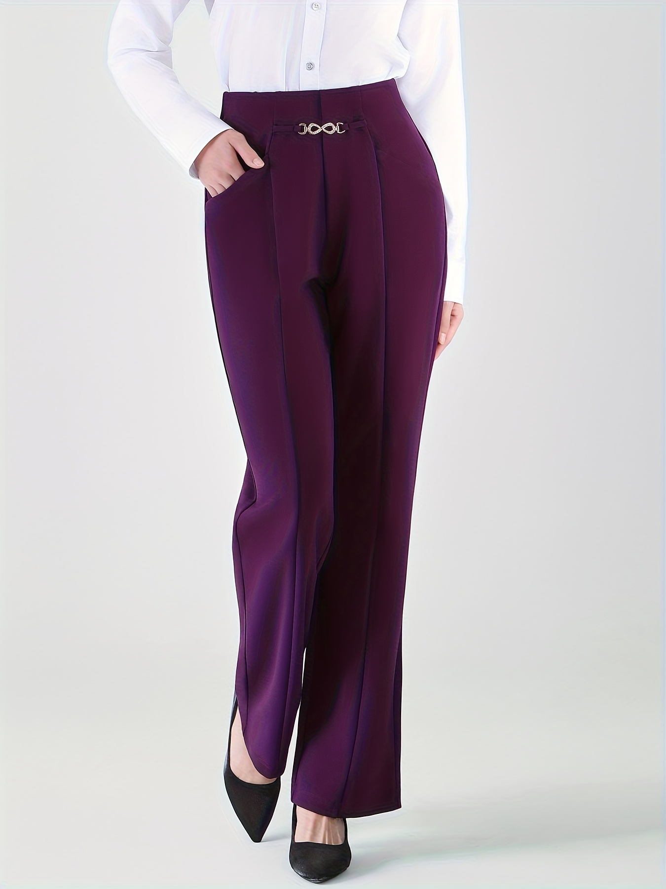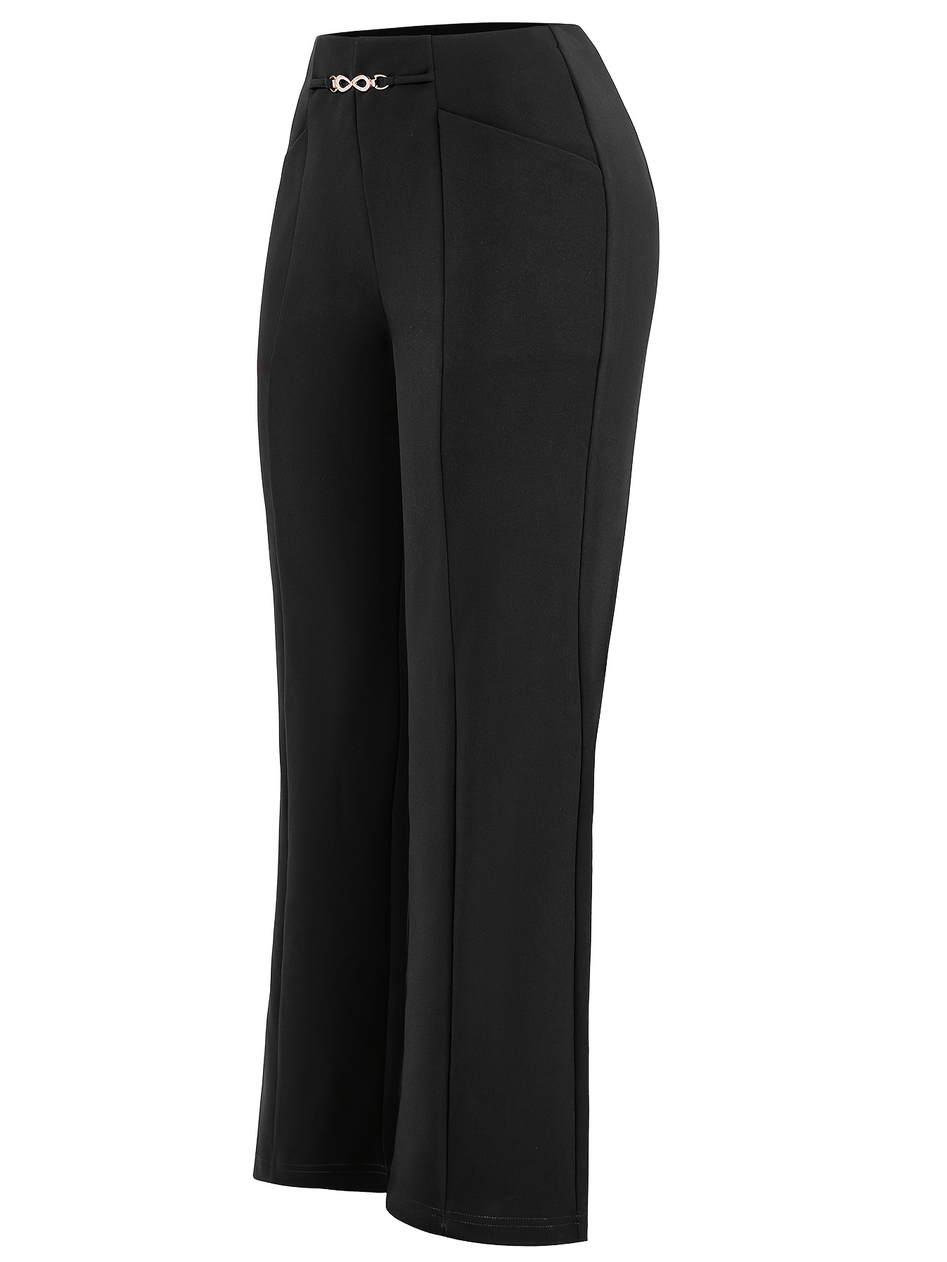 1 review for Elegant Women’S High Waist Wide Leg Pants | Metal Chain Detail, Elastic Waist, Pockets, Long Length, Solid Color, Suitable for Casual and Office Wear