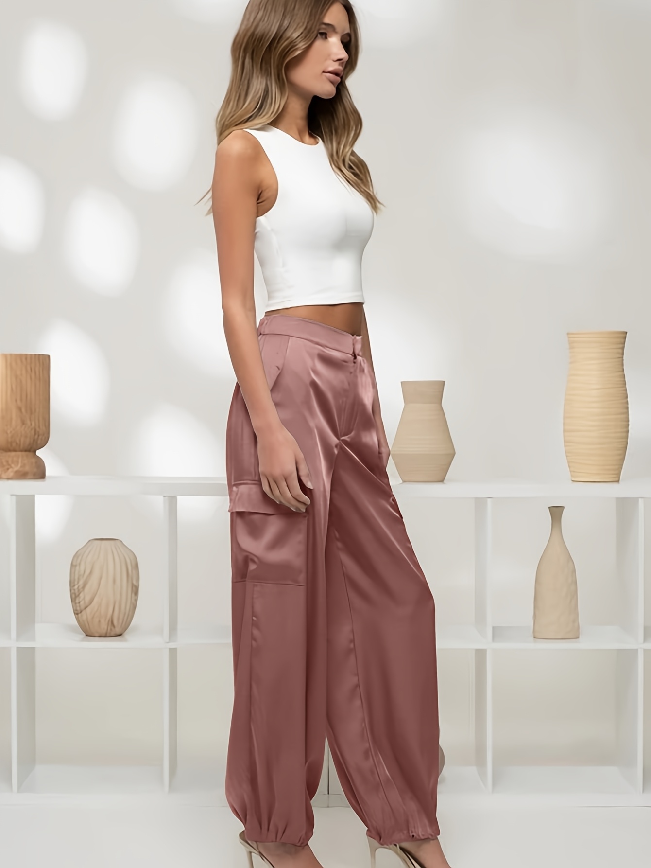 Be the first to review “Women’s Cargo Pants High-Waist Wide-Leg, Beige Ruched Ankle” Cancel reply