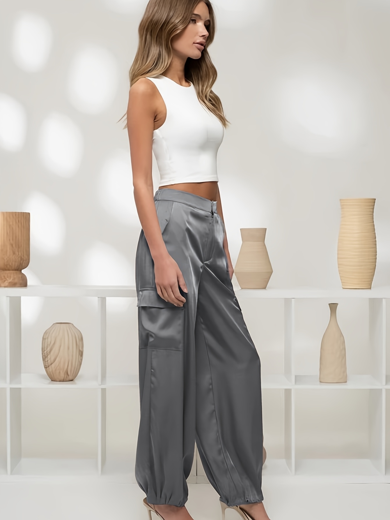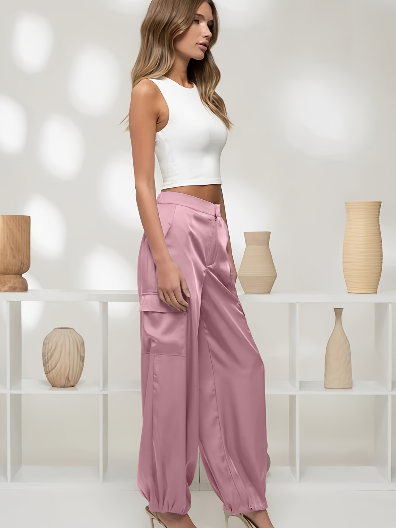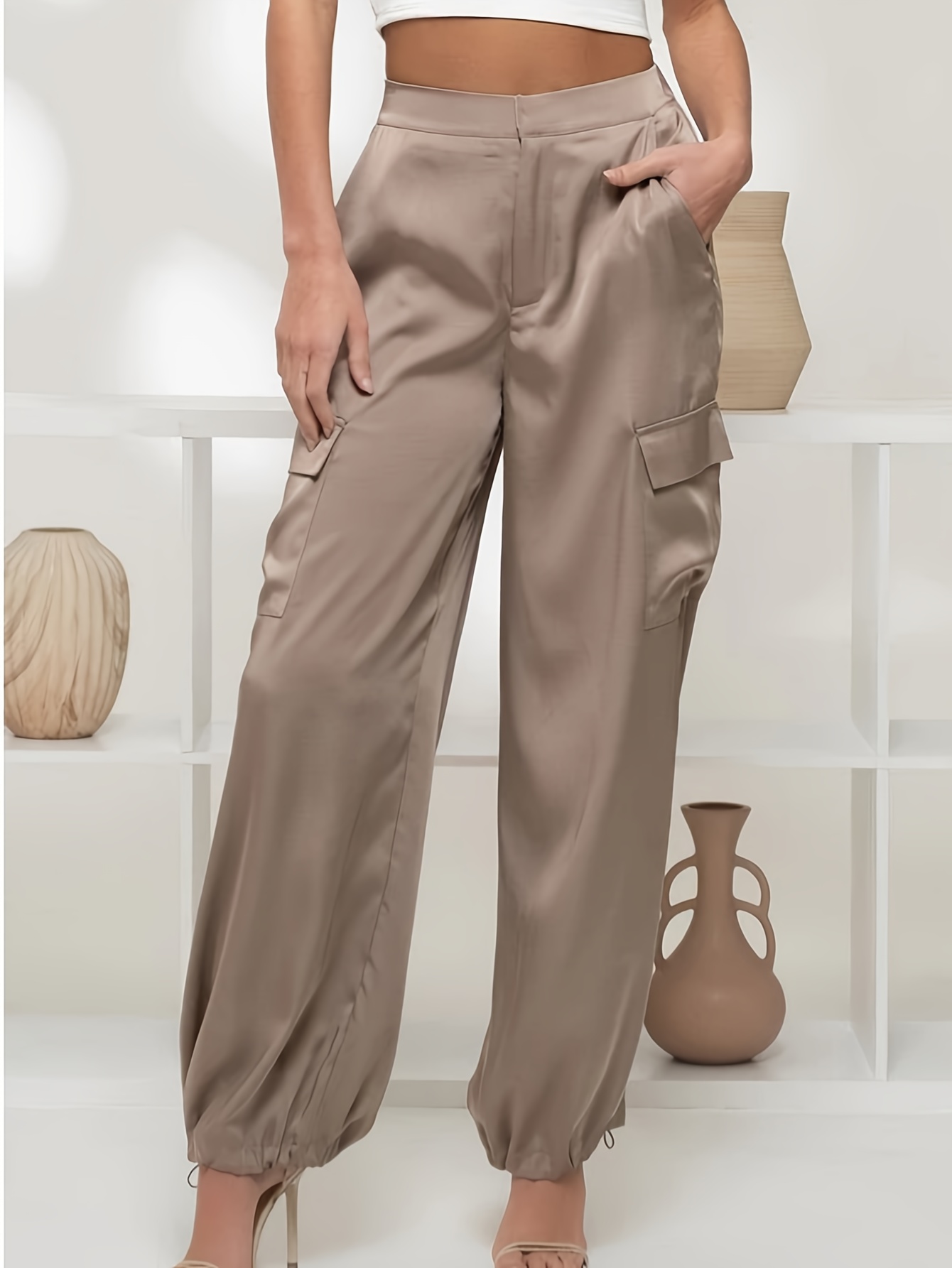 Be the first to review “Women’s Cargo Pants High-Waist Wide-Leg, Beige Ruched Ankle” Cancel reply