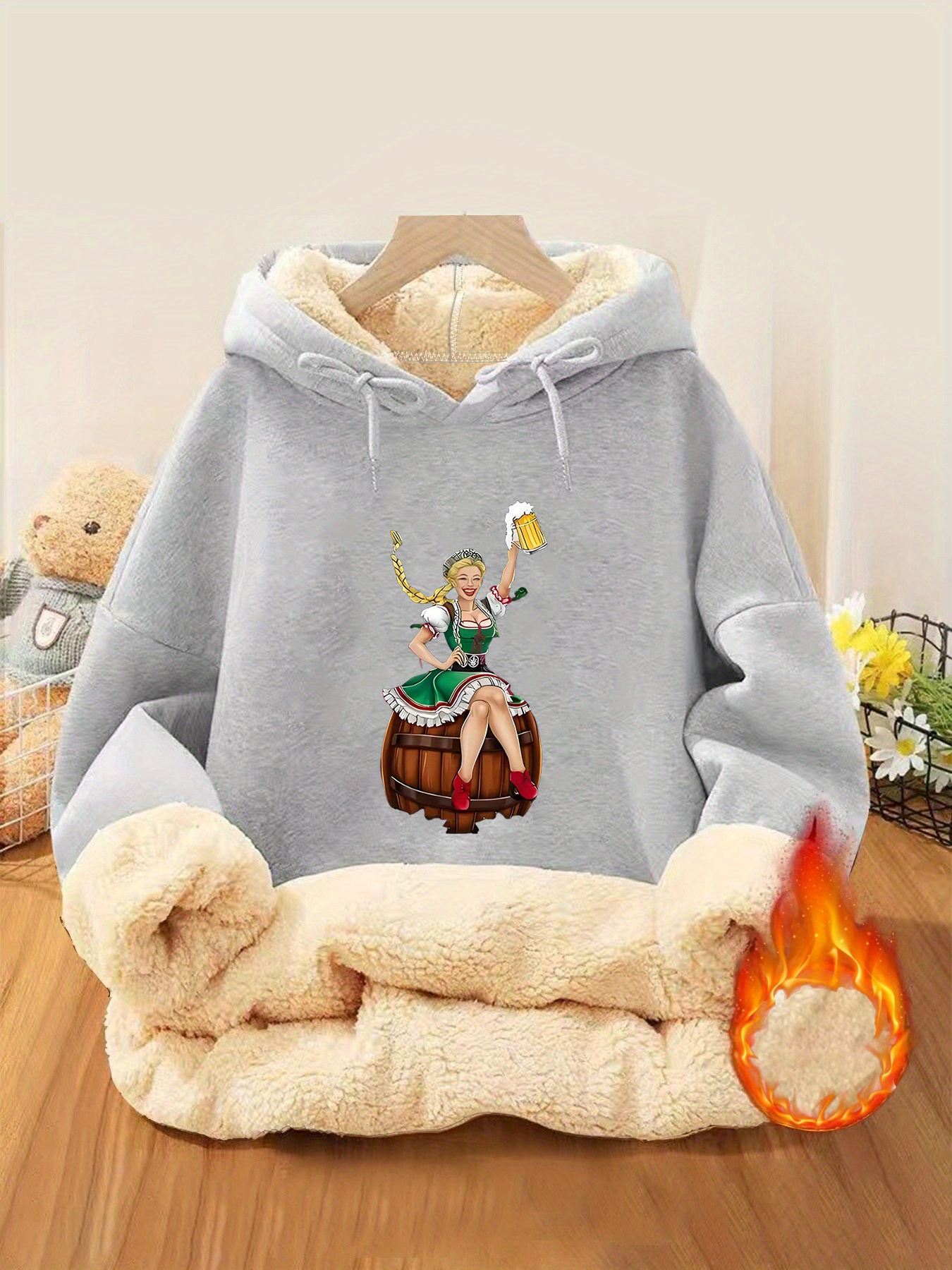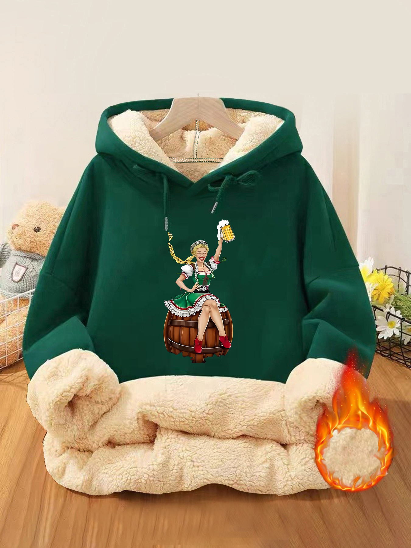 Oktoberfest Hoodie – German Beer Festival Pullover with Bavarian Woman Print, Thickened Winter Sweatshirt for Beer Festival Parties