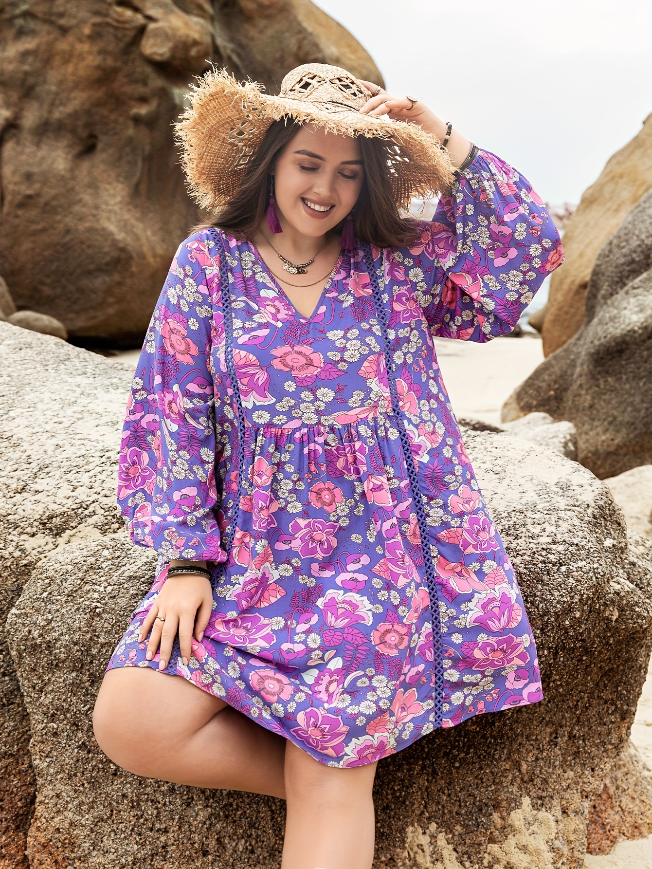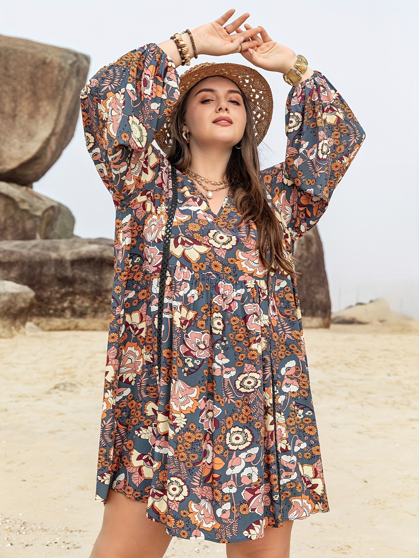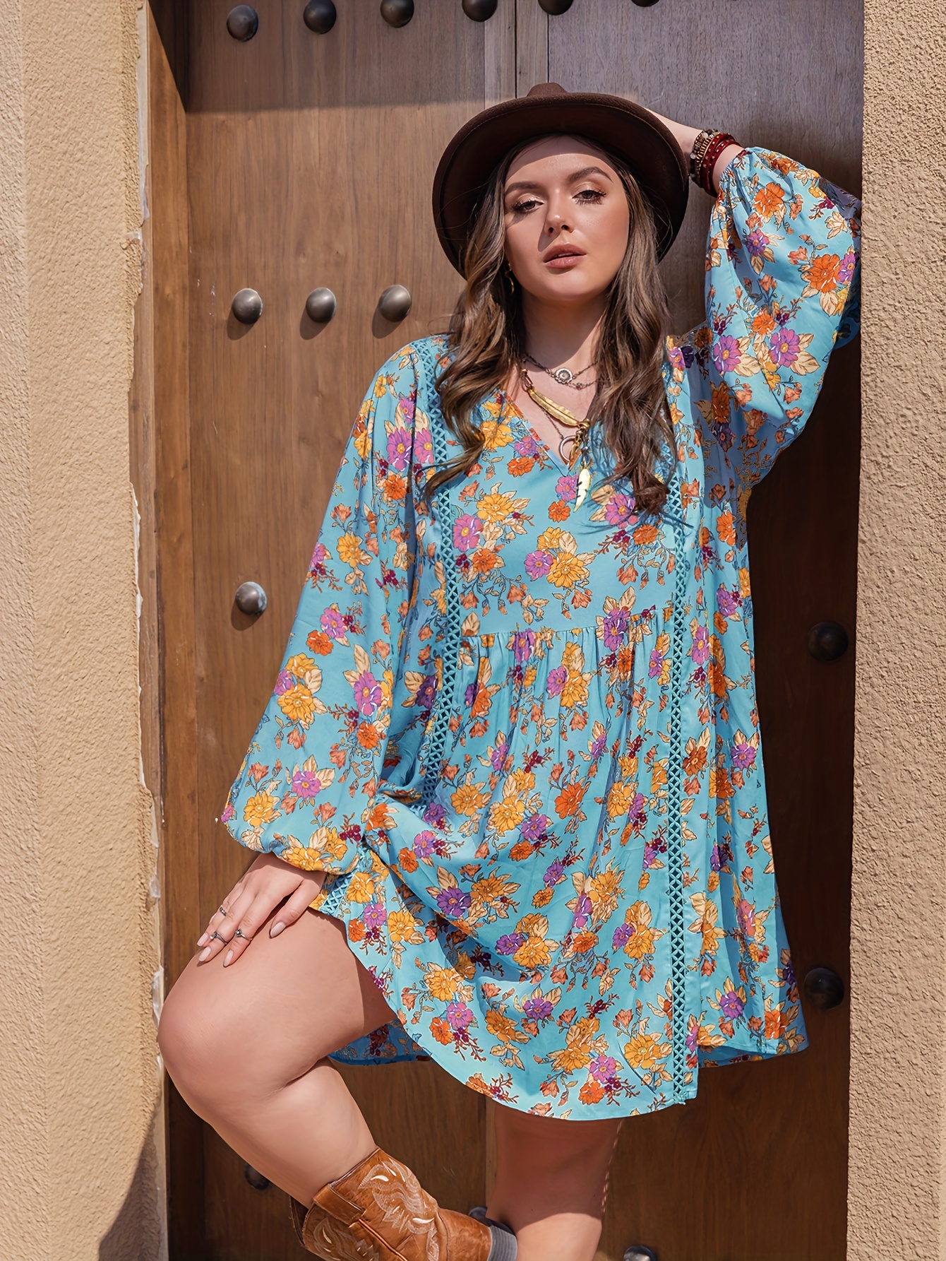 5 reviews for Plus Size, Plus Size Boho-Chic Maxi Dress with Puff Sleeves & V-Neck – A-Line Floral Print Short to Maxi Length Dress (No Waist Belt) – Machine Washable Bohemian Wedding Guest Gown, Party & Festival Dress for Short/Long Hem Settings