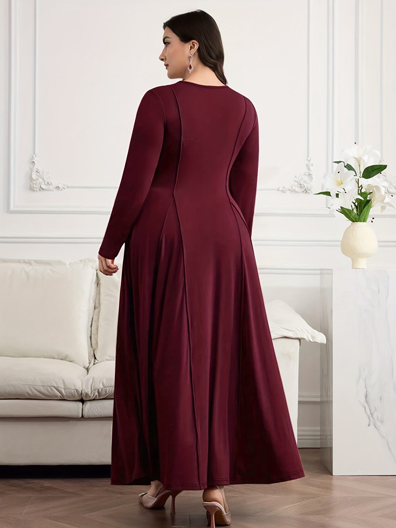 7 reviews for Plus Size – Plus Size – Plus Size – Plus Size – Plus Size – Elegant Plus Size V-Neck Long Sleeve A-Line Maxi Dress with U-Shaped Neckline & Waist-Cinching Belt – Solid Color, Medium Stretch, Perfect For Parties, Shopping, And Casual Attire