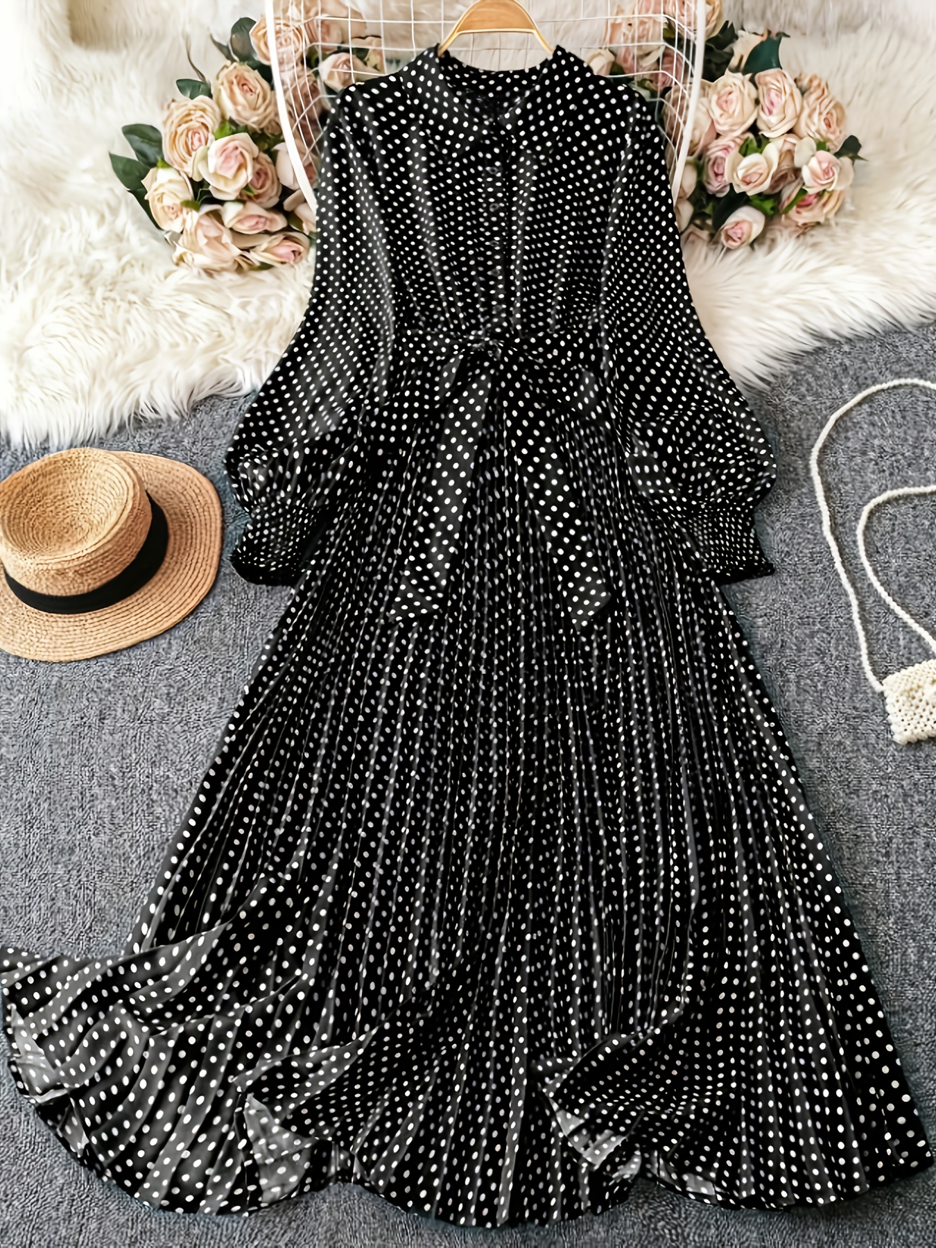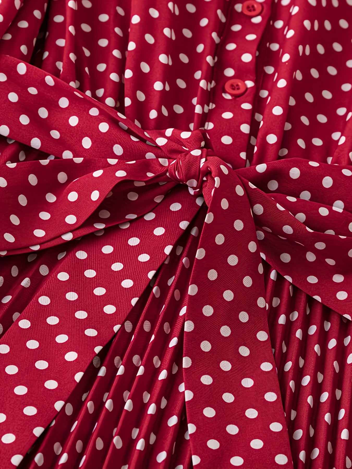 素晴らしい Plus Size – Plus Size, Women’S Elegant & Polka Dot Maxi Dress – Formal & Casual Long Dress with Adjustable Waist Belt, Flared Long Sleeves, Non-Stretchy Fabric for Parties, Office, Everyday Outfits – Plus Size Friendly, Office Attire