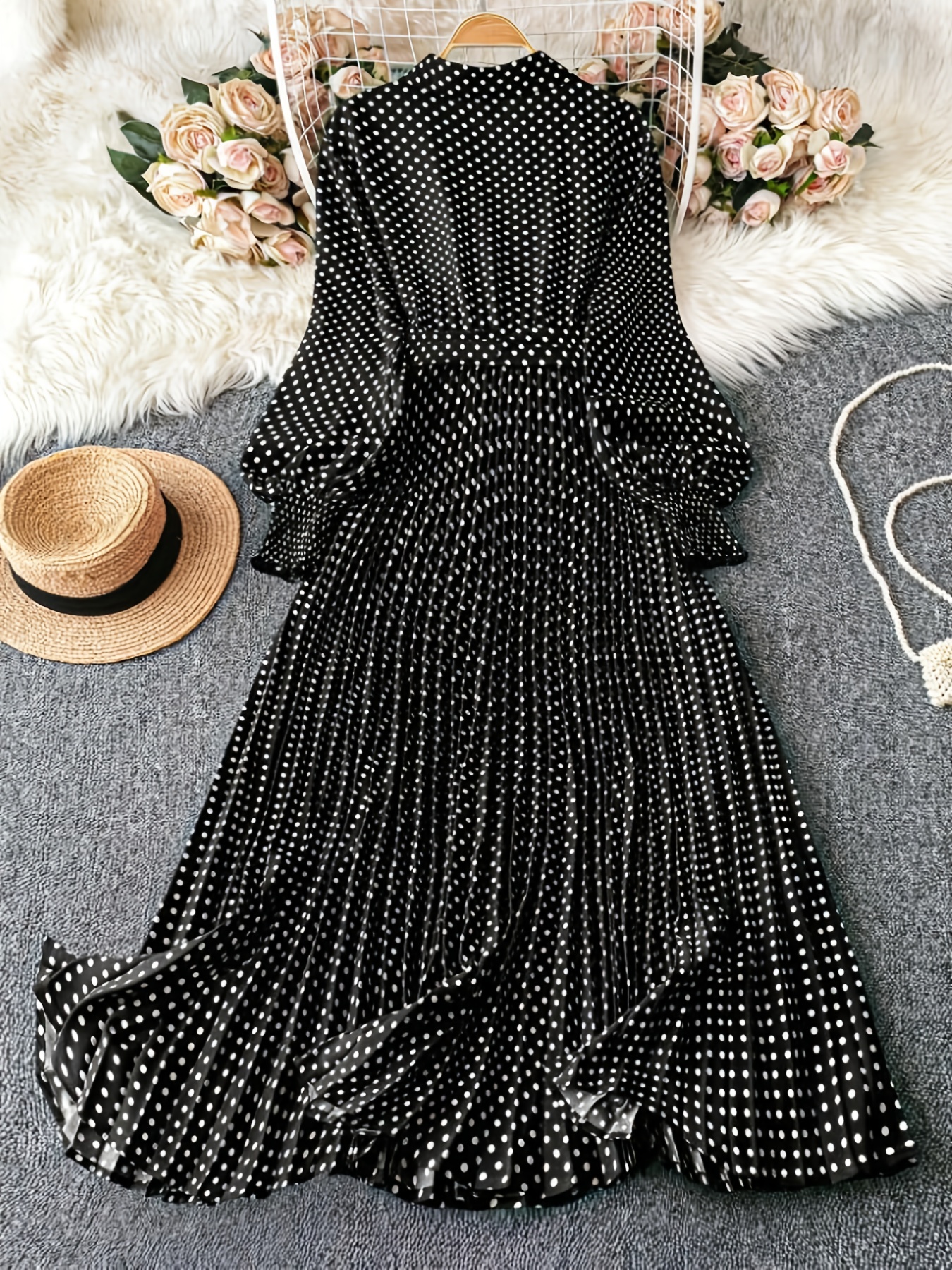 素晴らしい Plus Size – Plus Size, Women’S Elegant & Polka Dot Maxi Dress – Formal & Casual Long Dress with Adjustable Waist Belt, Flared Long Sleeves, Non-Stretchy Fabric for Parties, Office, Everyday Outfits – Plus Size Friendly, Office Attire
