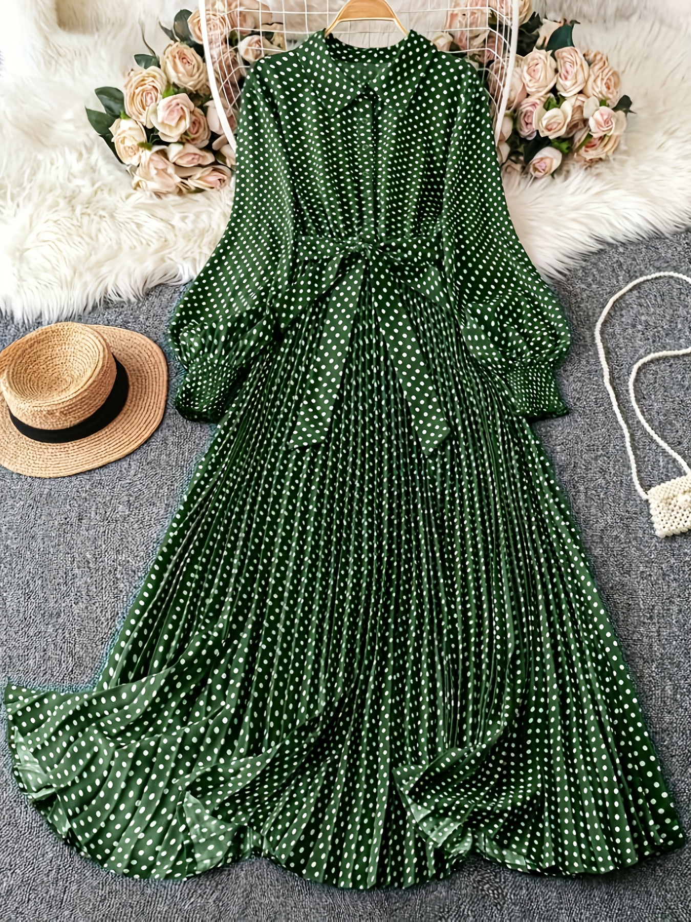 Plus Size – Plus Size, Women’S Elegant & Polka Dot Maxi Dress – Formal & Casual Long Dress with Adjustable Waist Belt, Flared Long Sleeves, Non-Stretchy Fabric for Parties, Office, Everyday Outfits – Plus Size Friendly, Office Attire