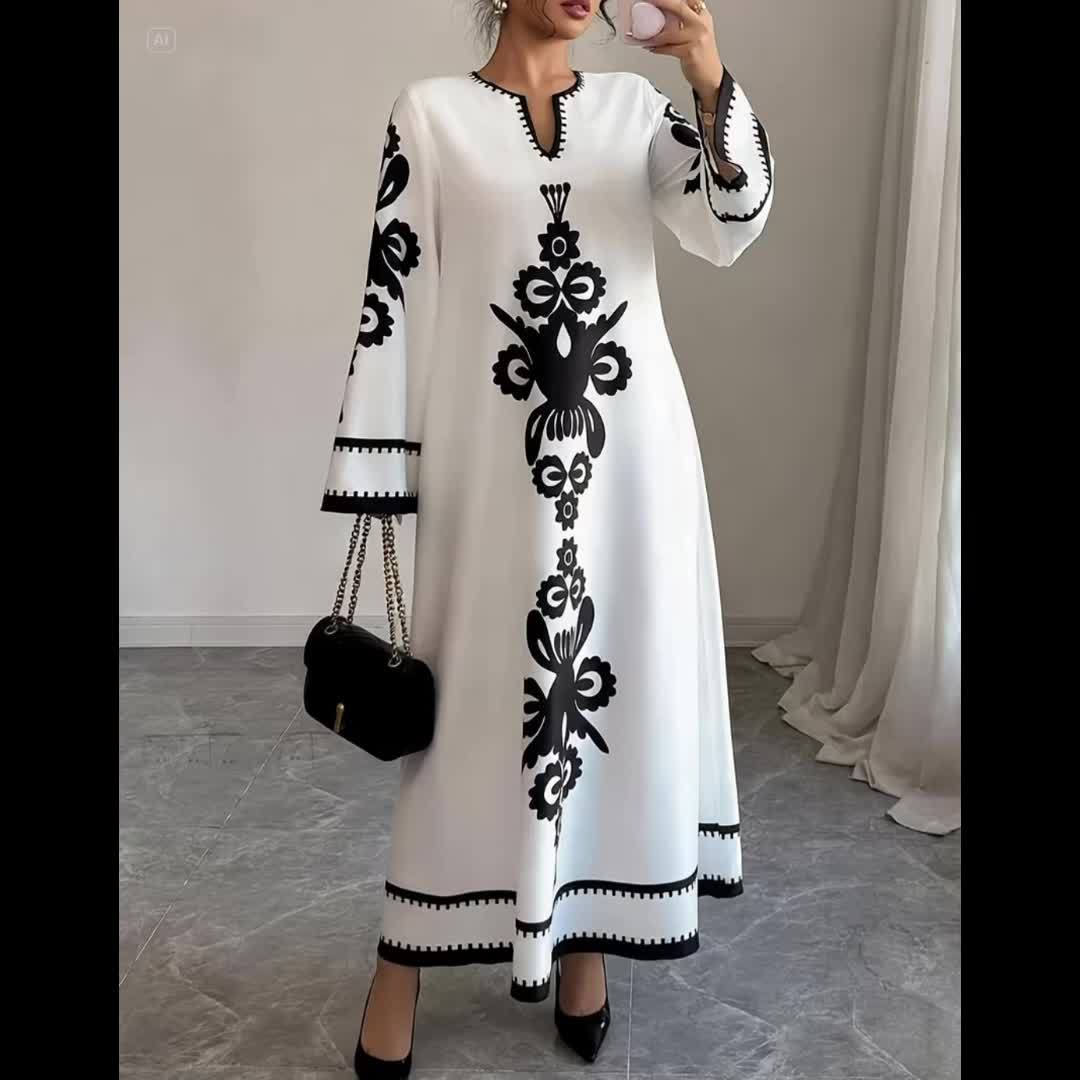 9 reviews for Plus Size, Spring-Summer Positioning Print Tie Bow V Neck Lantern Sleeve Waist-Cinching Women’s Dress with Ruffle Hem, Belted for Holidays and Casual Wear