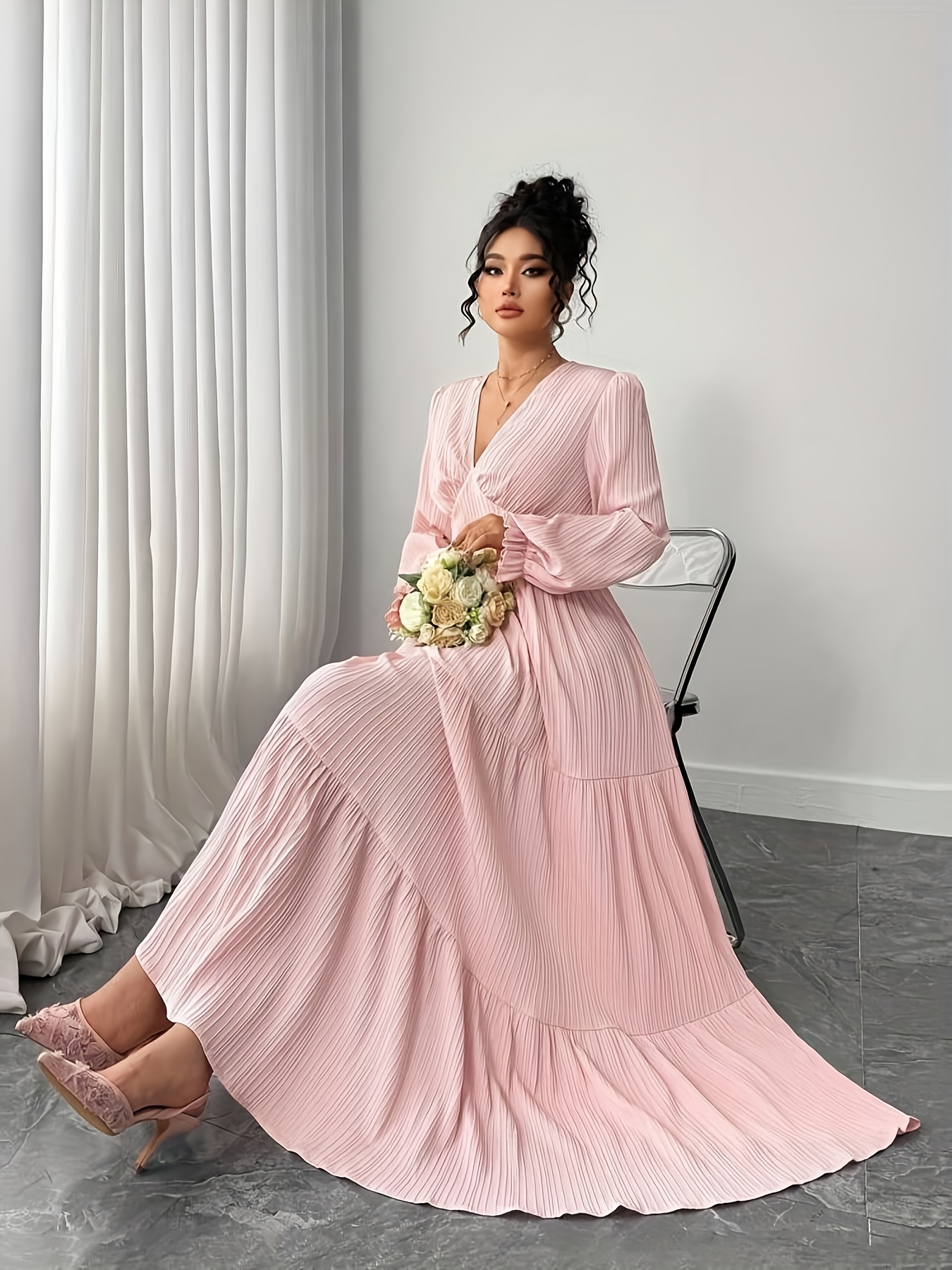 素晴らしい Plus Size, Women’s Elegant V-Neck Maxi Dress – -Length A-Line Long Sleeve Formal & Semi-Formal Dress with Wrinkle-Resistant Fabric, Machine Washable Solid Color Gown for Weddings, Parties, (Plus Size Available) – Spring/Autumn Outfit & サービス、ありがとうございます