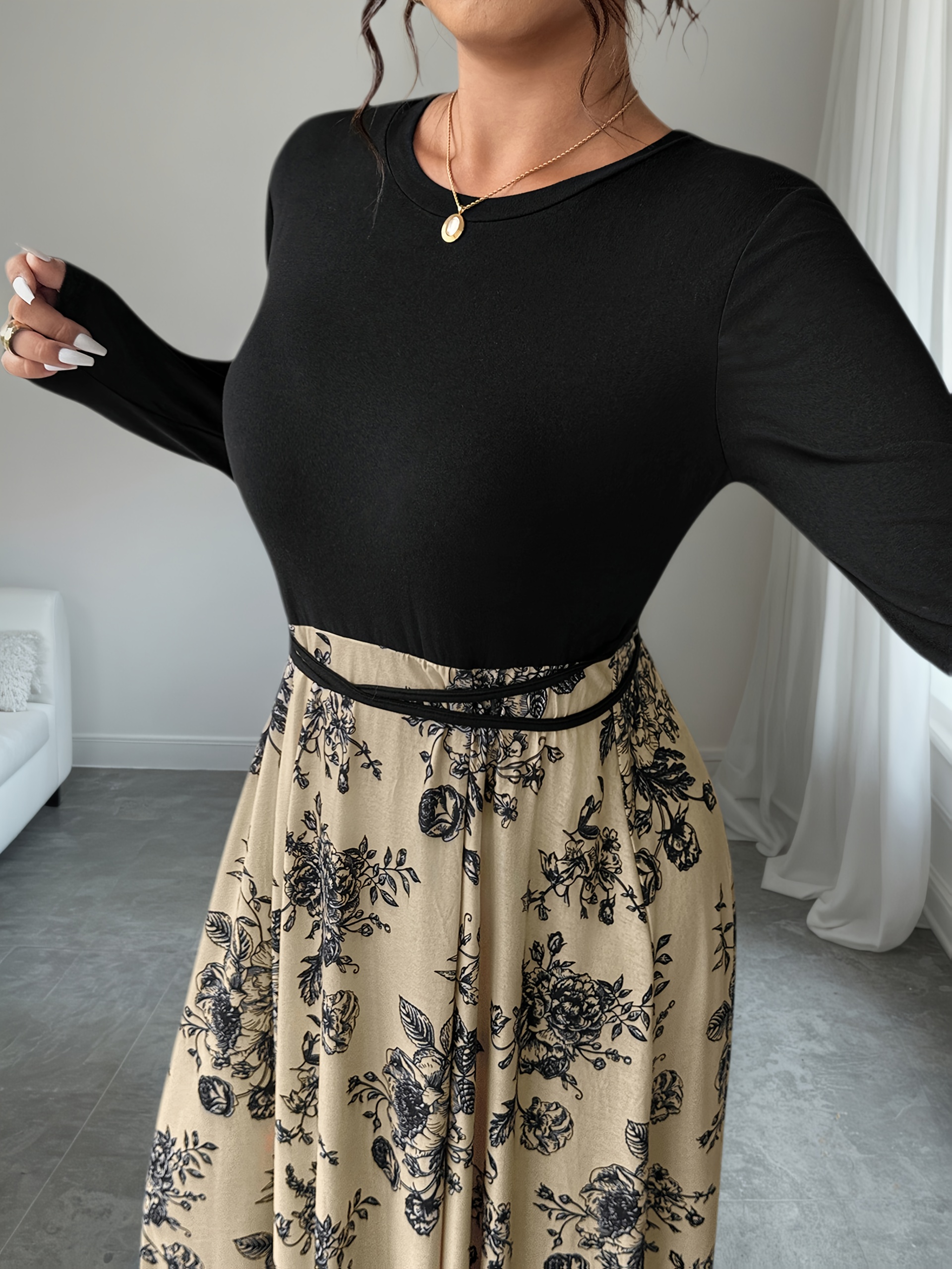 6 reviews for Plus Size, Women’s Floral print maxi dress – Beige & black Floral pattern, Tie-waist flared skirt, Machine Washable Formal & Casual Outfits for Fall/Winter Everyday Special Events, Winter Elegant Outfit, Nontransparent Material, Fall Fashion, Quality Stitching, Plus Size Women