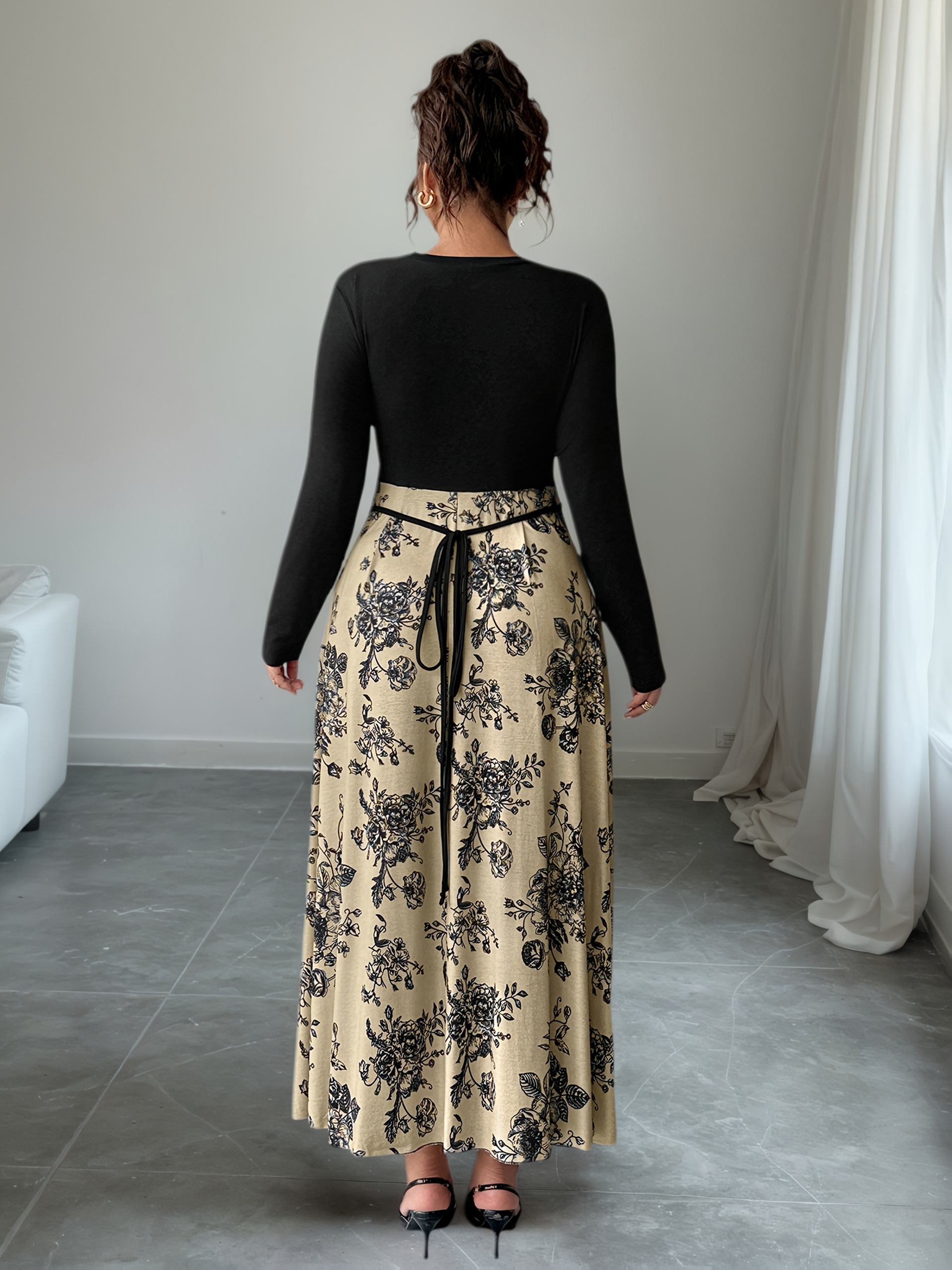 6 reviews for Plus Size, Women’s Floral print maxi dress – Beige & black Floral pattern, Tie-waist flared skirt, Machine Washable Formal & Casual Outfits for Fall/Winter Everyday Special Events, Winter Elegant Outfit, Nontransparent Material, Fall Fashion, Quality Stitching, Plus Size Women