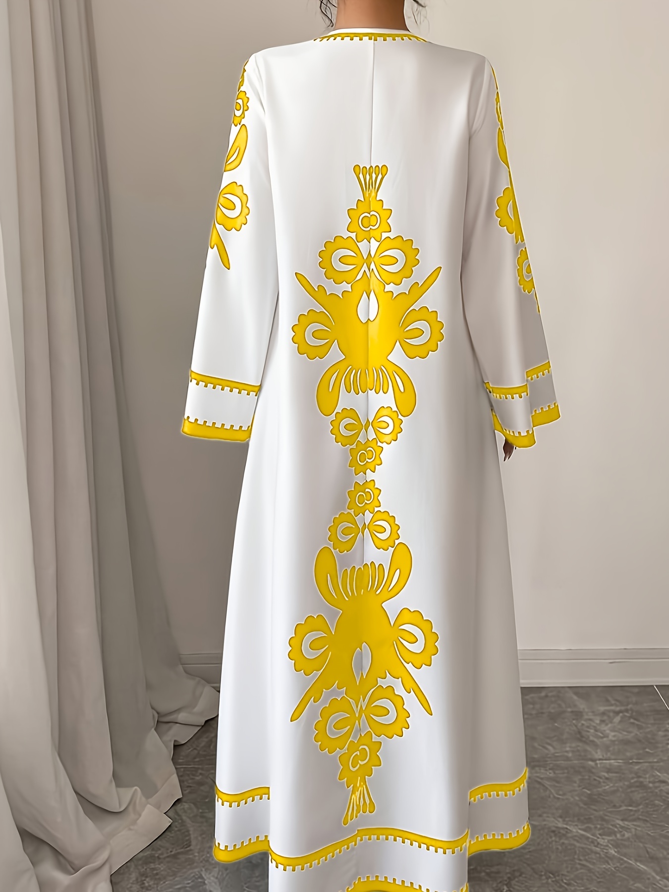 これは今までで一番!私が持っていたPlus Size – Women’S Plus Size V-Neck Long Sleeve Dress with Floral Print – Casual Loose Fit, Black & White Design, Perfect for Spring/Summer, Casual Summer Dress | Vneck Dress | Nonstretch Fabric