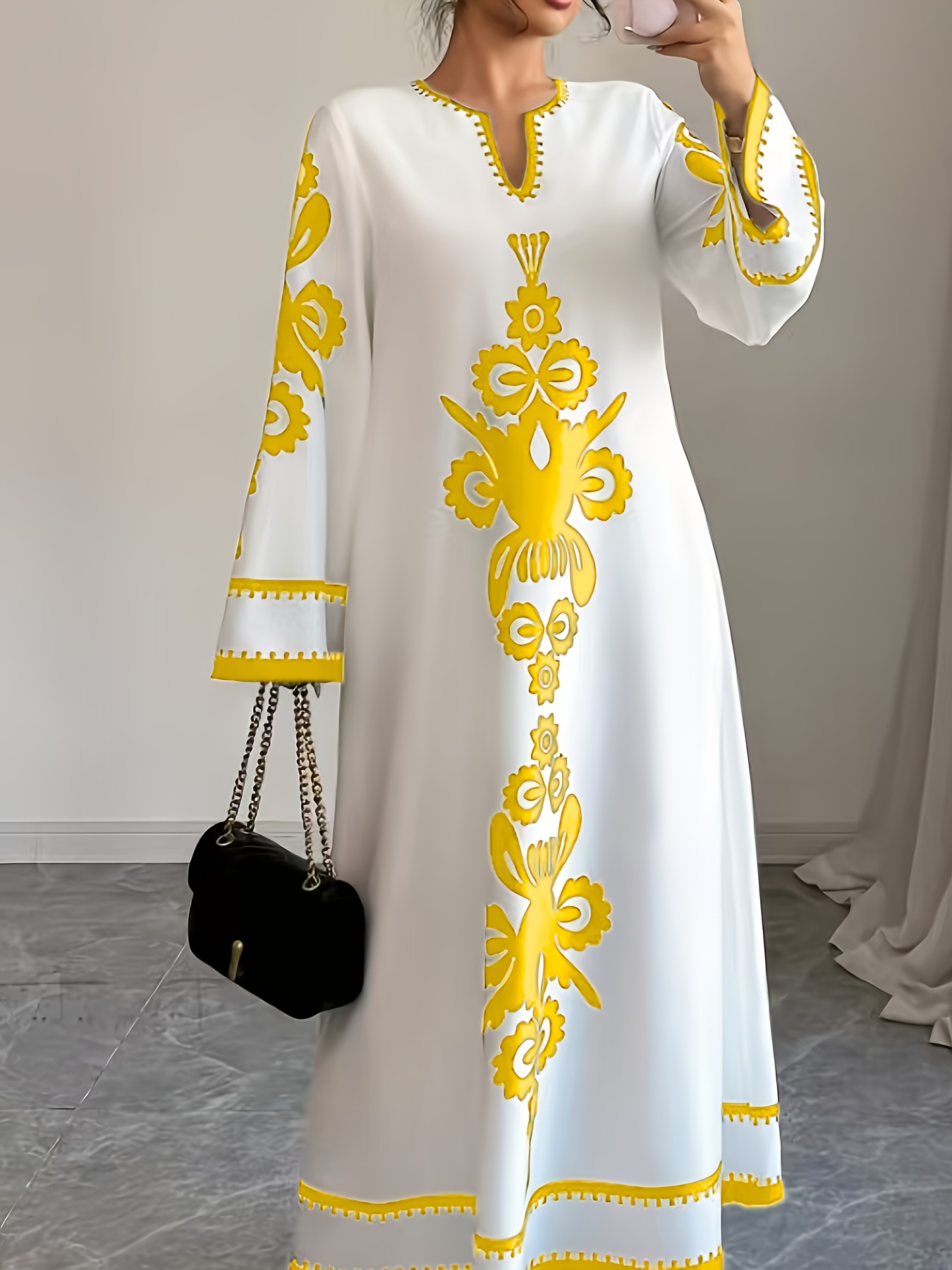 これは今までで一番!私が持っていたPlus Size – Women’S Plus Size V-Neck Long Sleeve Dress with Floral Print – Casual Loose Fit, Black & White Design, Perfect for Spring/Summer, Casual Summer Dress | Vneck Dress | Nonstretch Fabric