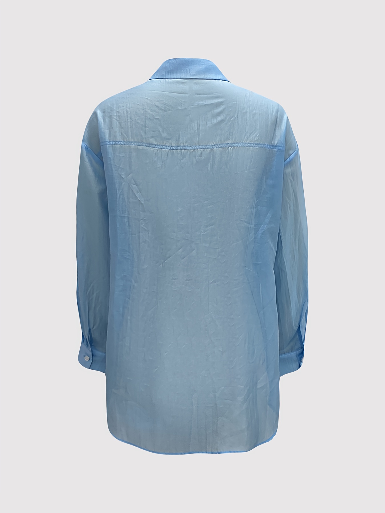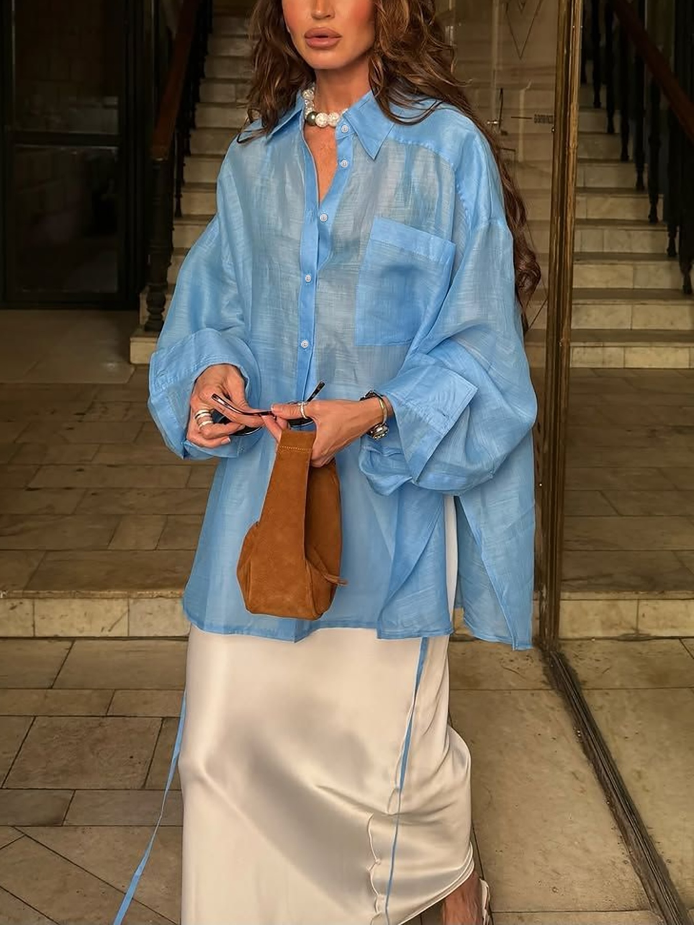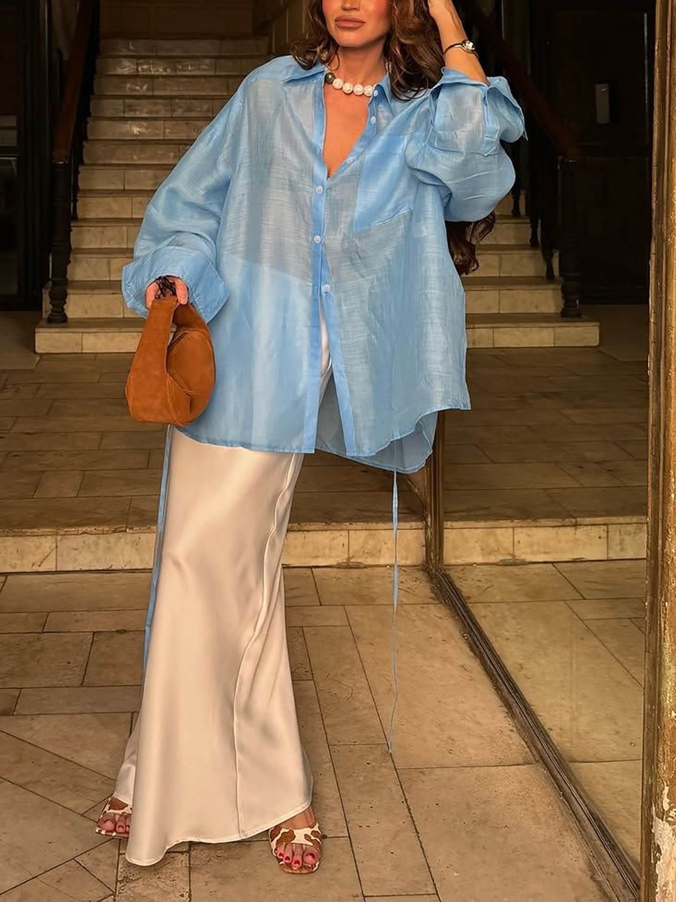 7 reviews for Solid Color Button-Front Long Sleeve Turn- Collar Casual Shirt, Fashion Side Tie Long Sleeve Blouse for Women