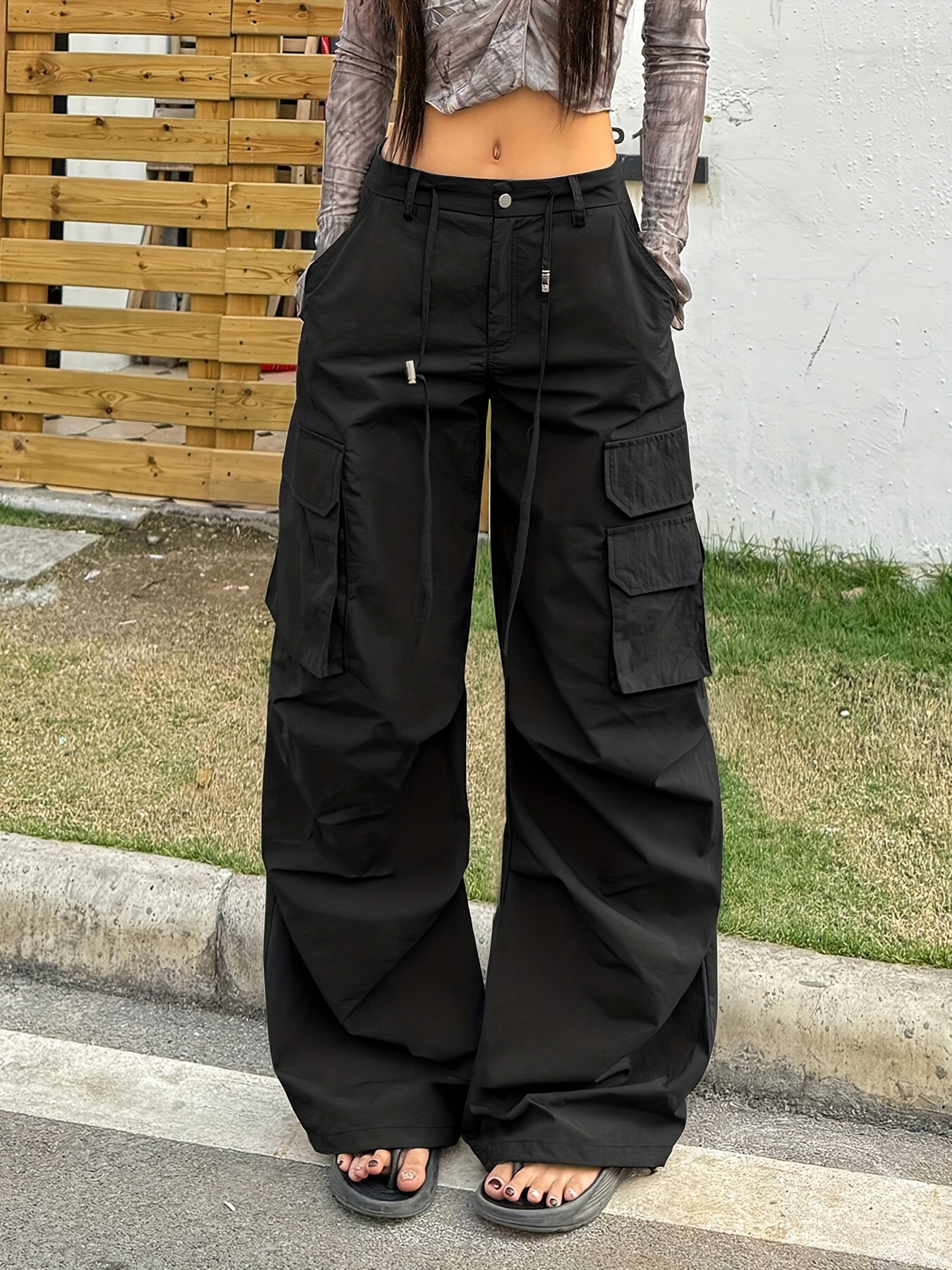 Streetwear Trendy Women’s Pants – All-Season – Multi-Pocket Workwear Style – Drawstring Adjustable Design for Daily Outings