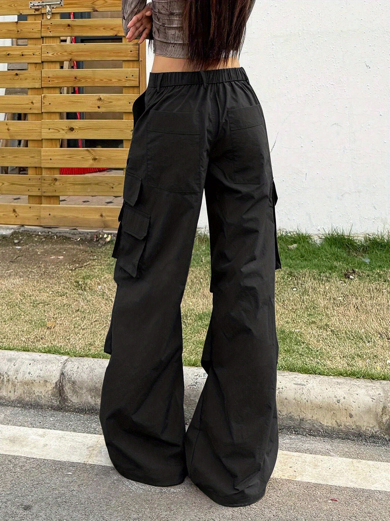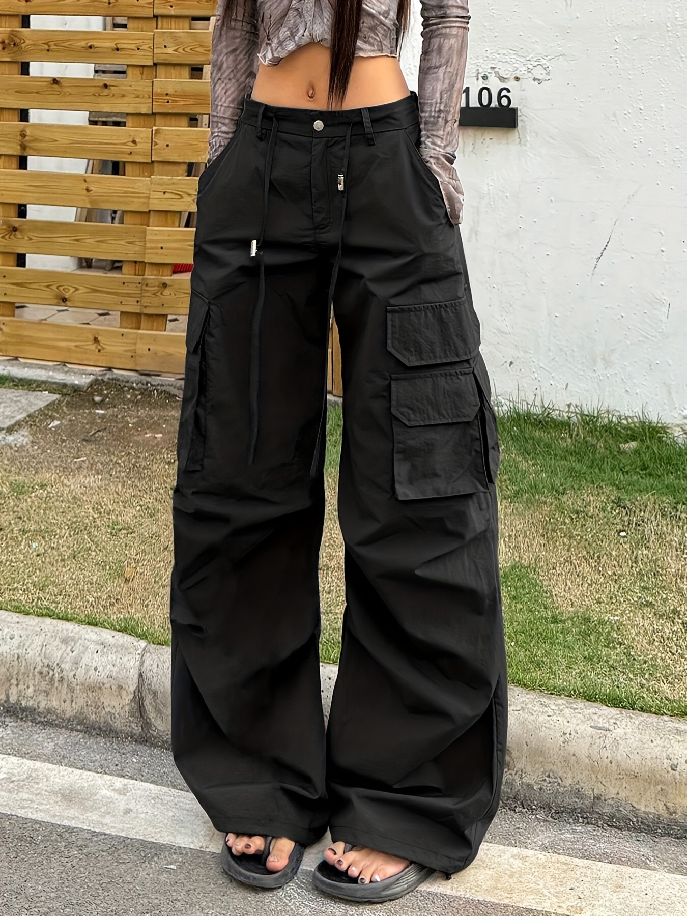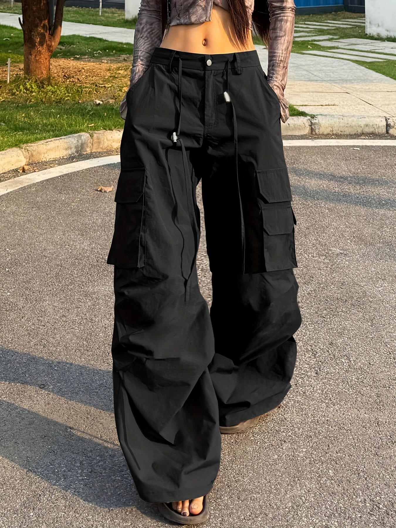 Streetwear Trendy Women’s Pants – All-Season – Multi-Pocket Workwear Style – Drawstring Adjustable Design for Daily Outings