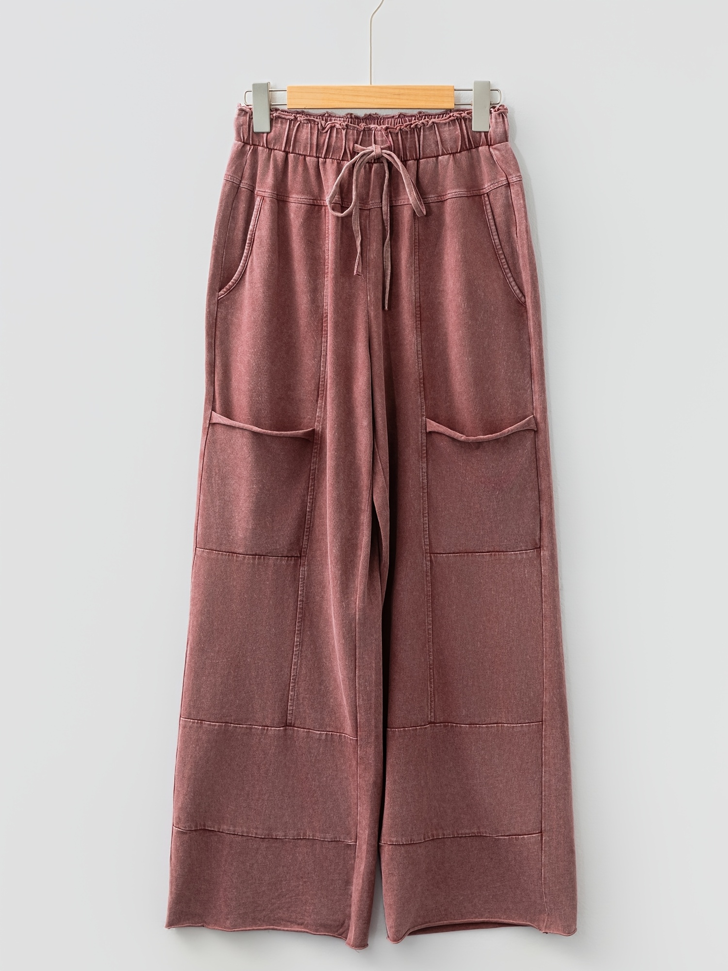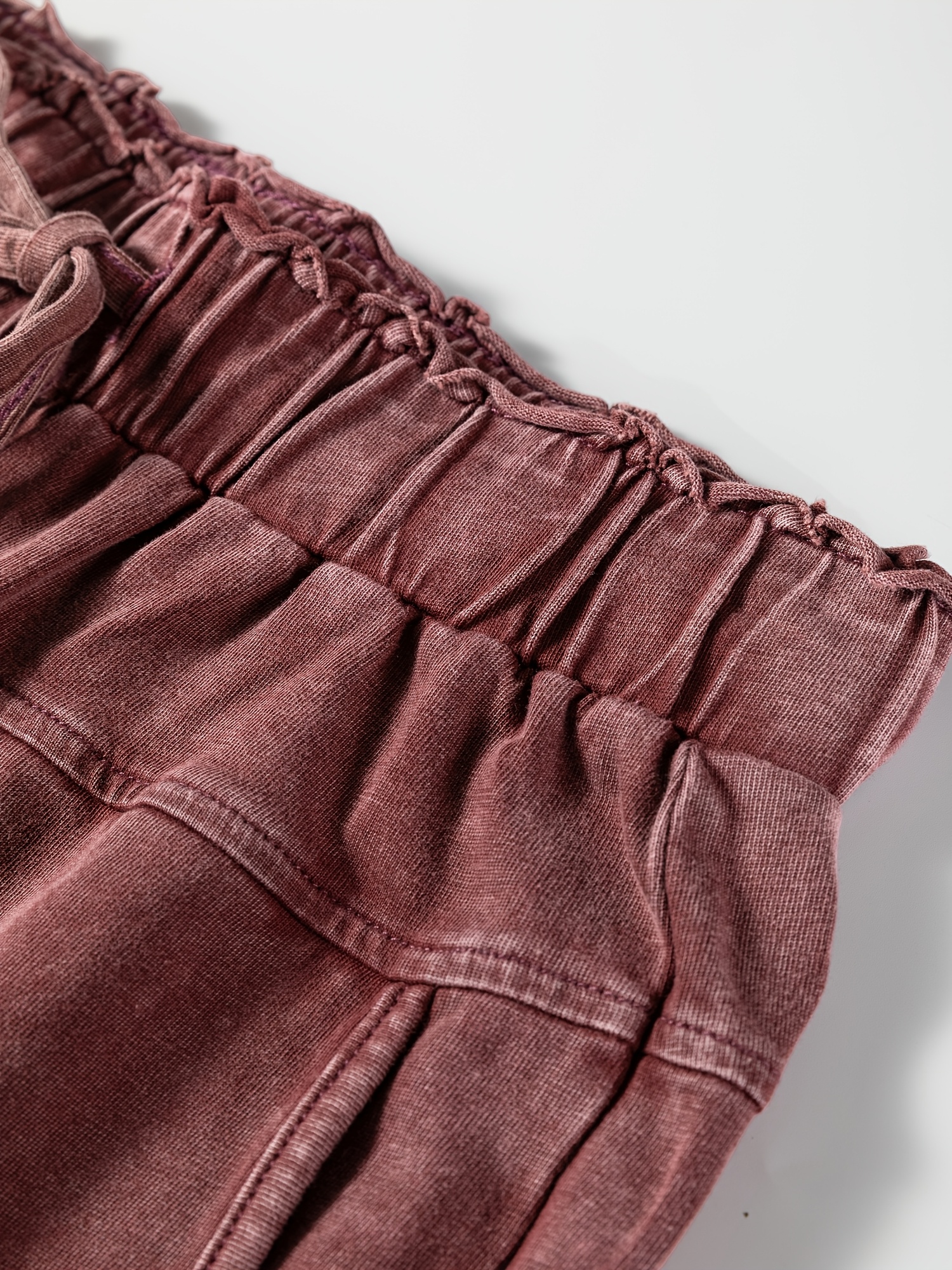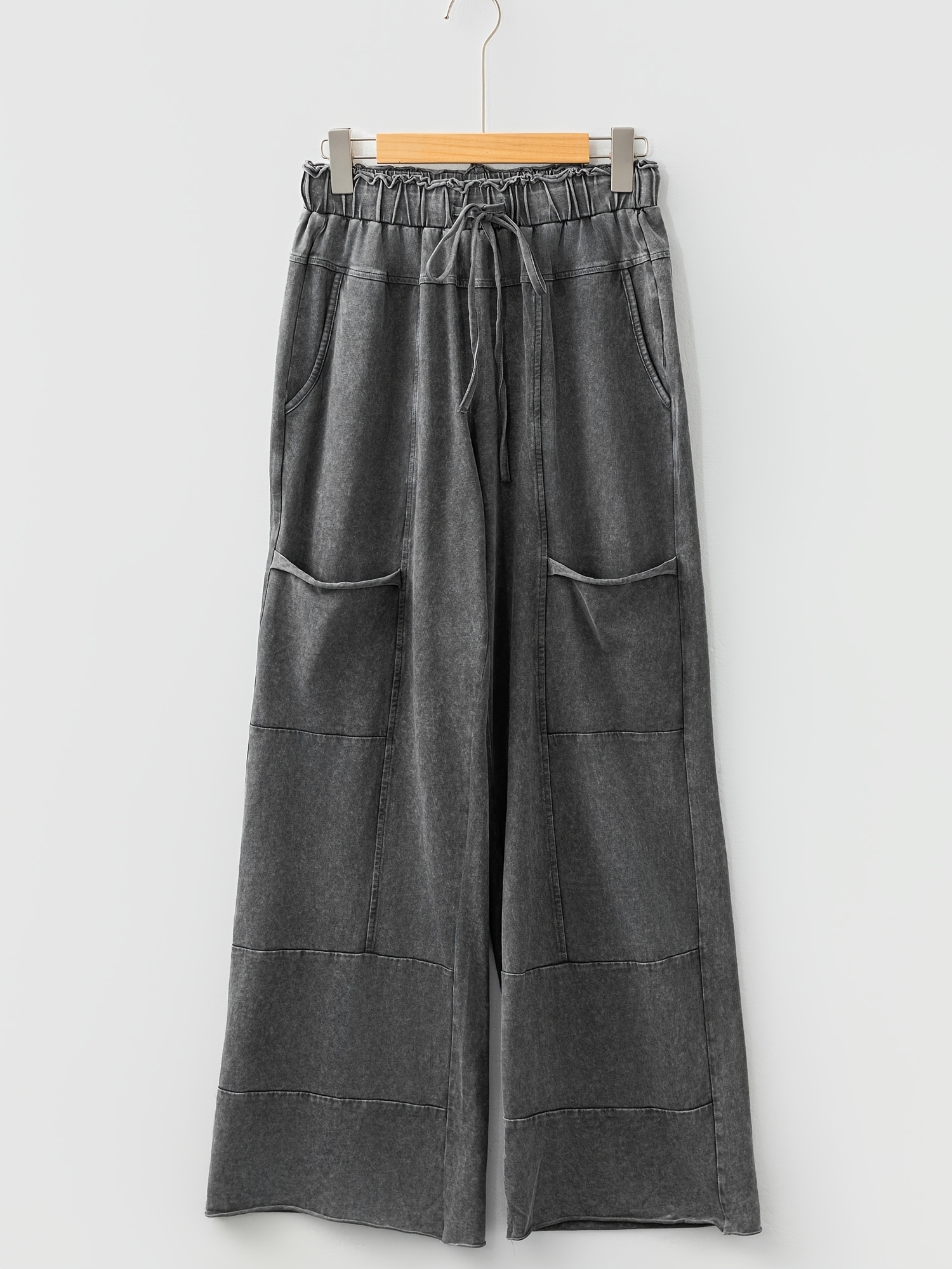 Wild Ginger Mineral Wash Lace-up High Waist Raw Hem Patched Pocket Pants