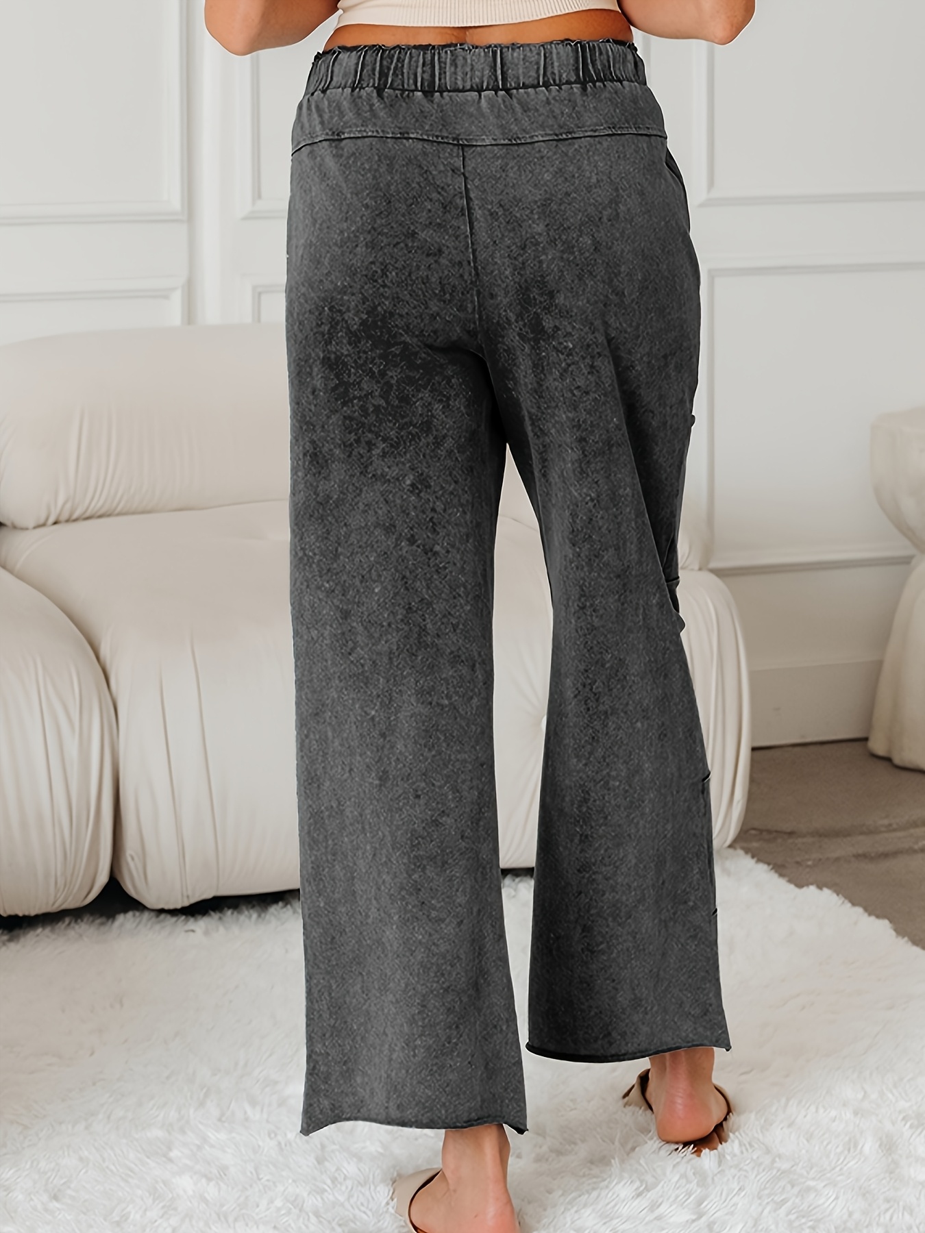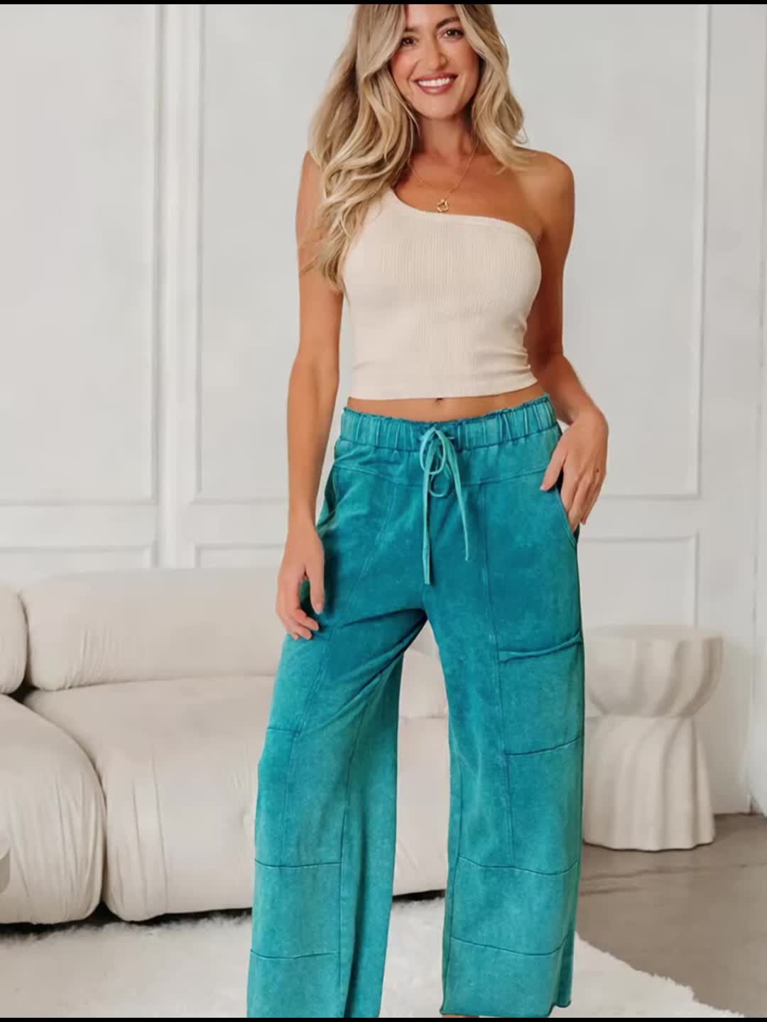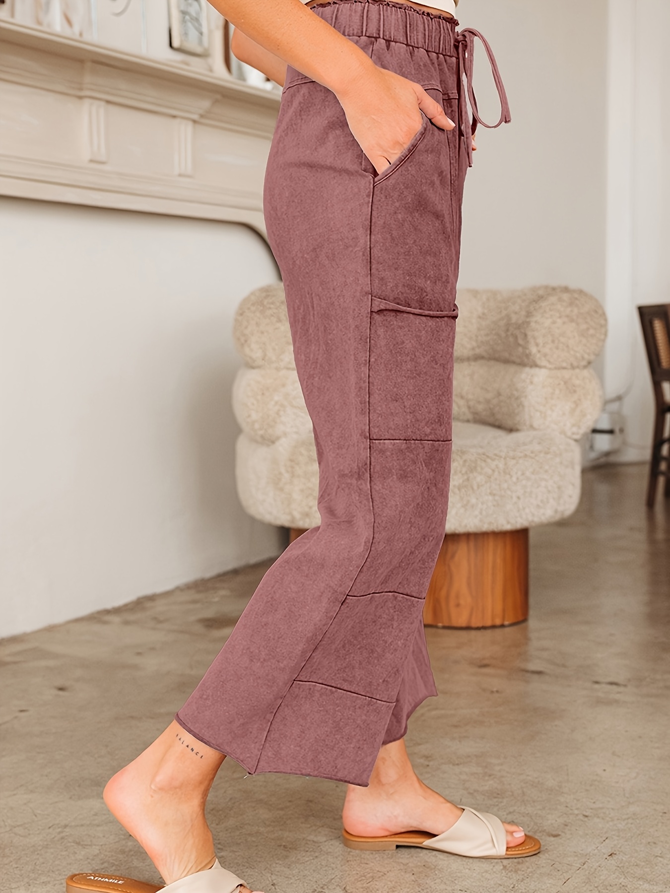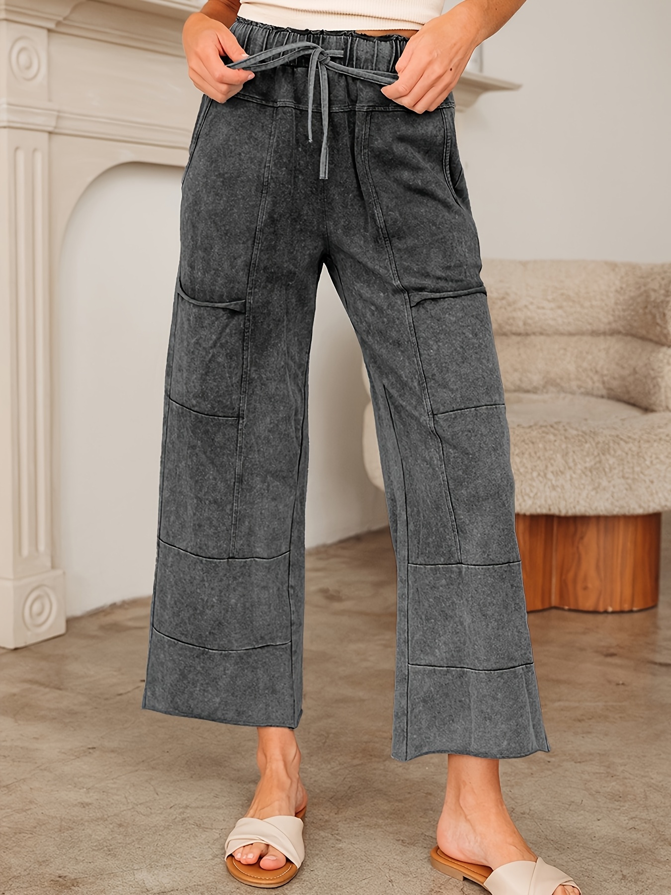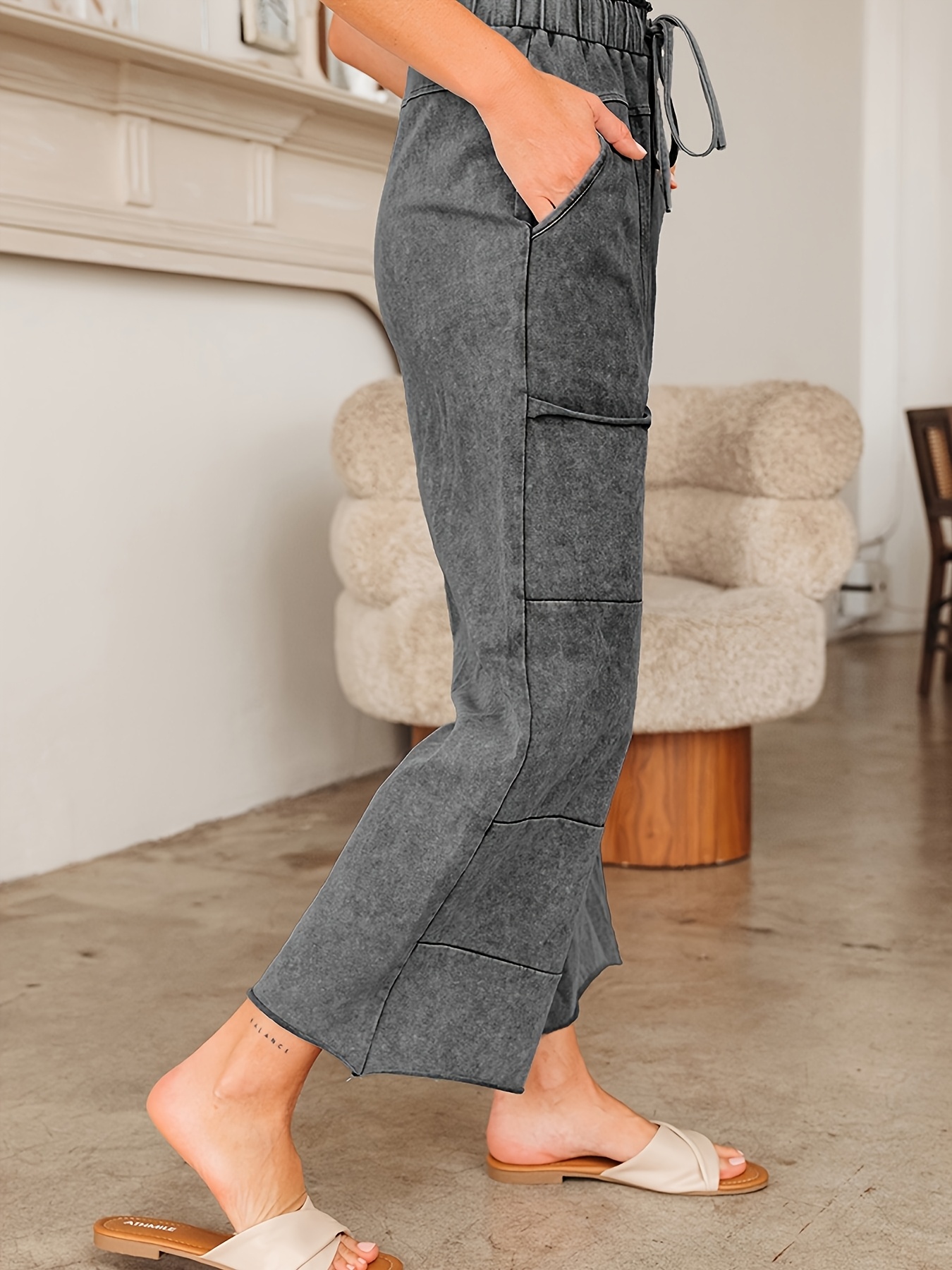 Wild Ginger Mineral Wash Lace-up High Waist Raw Hem Patched Pocket Pants