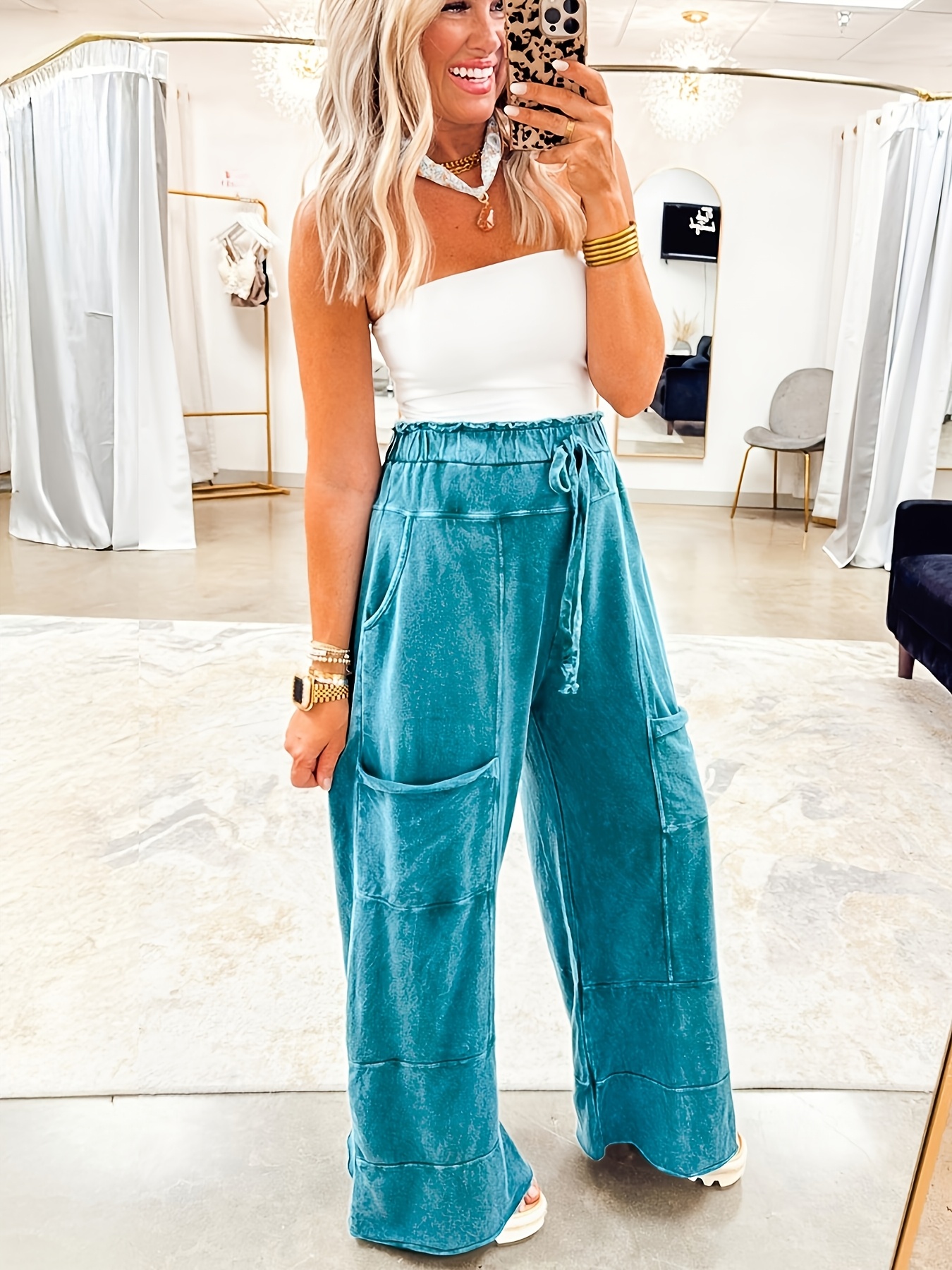 Be the first to review “Wild Ginger Mineral Wash Lace-up High Waist Raw Hem Patched Pocket Pants” Cancel reply