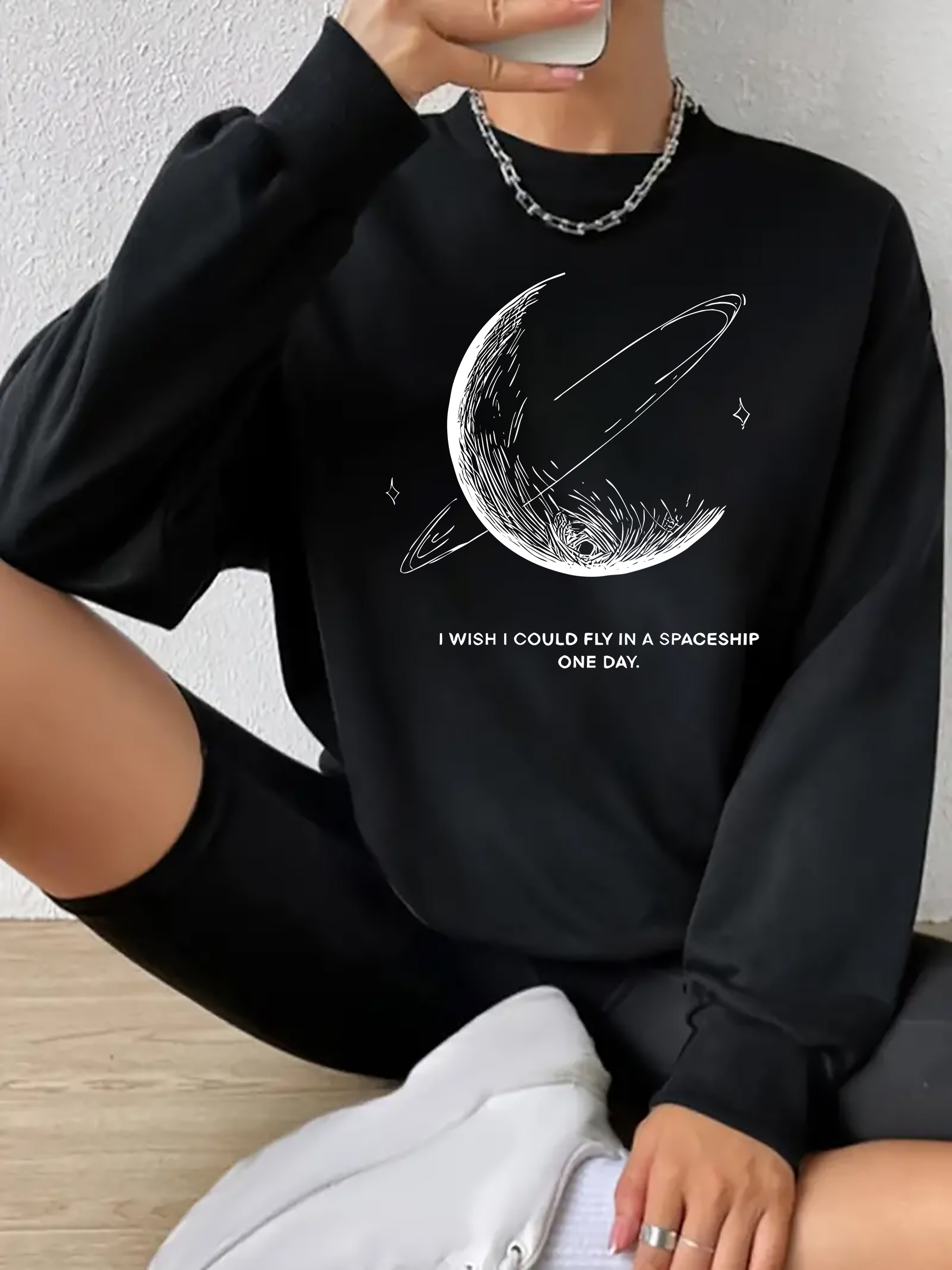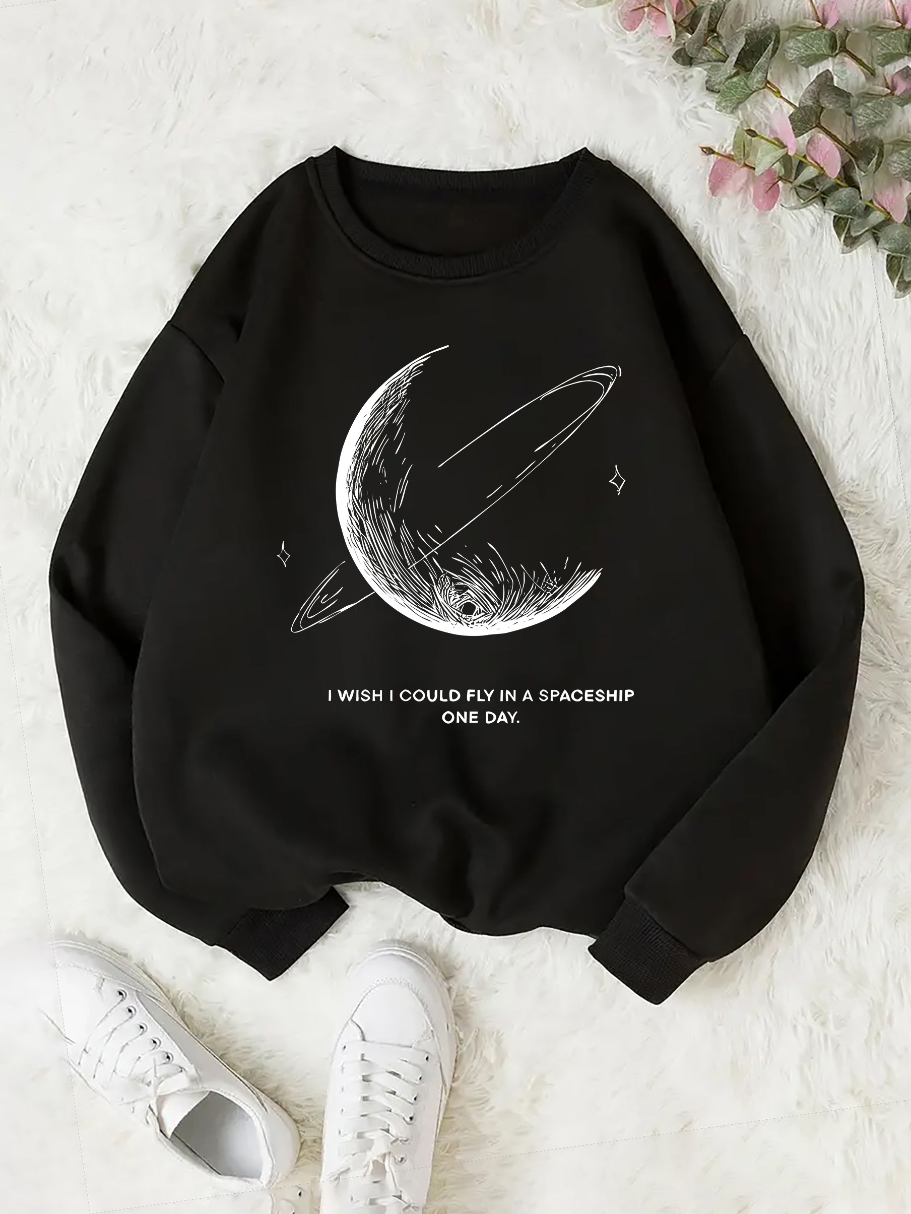 Be the first to review “Women’s Black Space Graphic Long Sleeve Round Neck Sweatshirt” Cancel reply