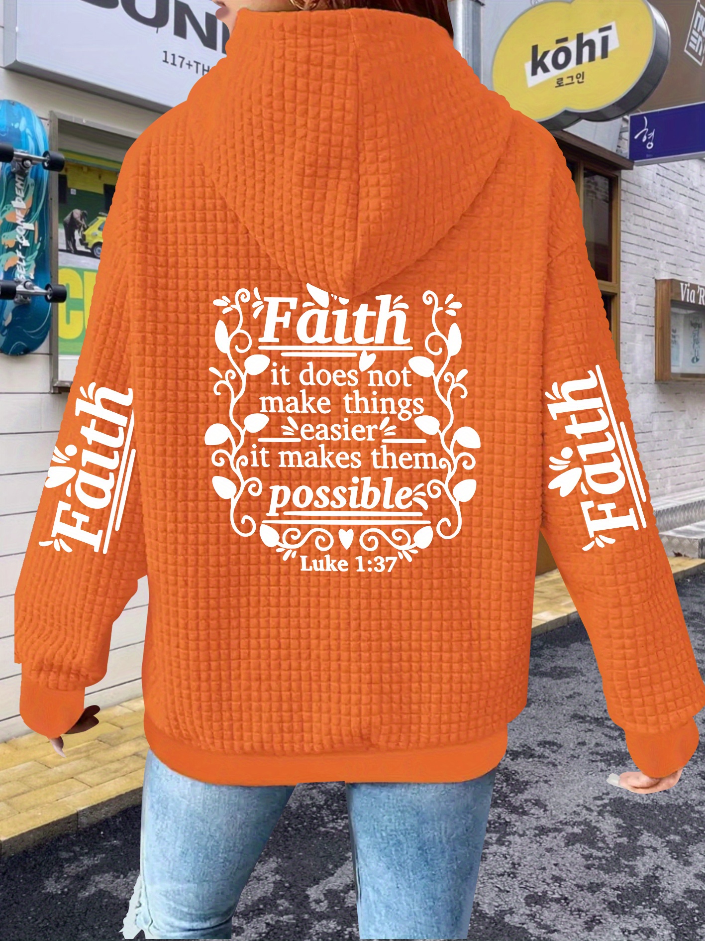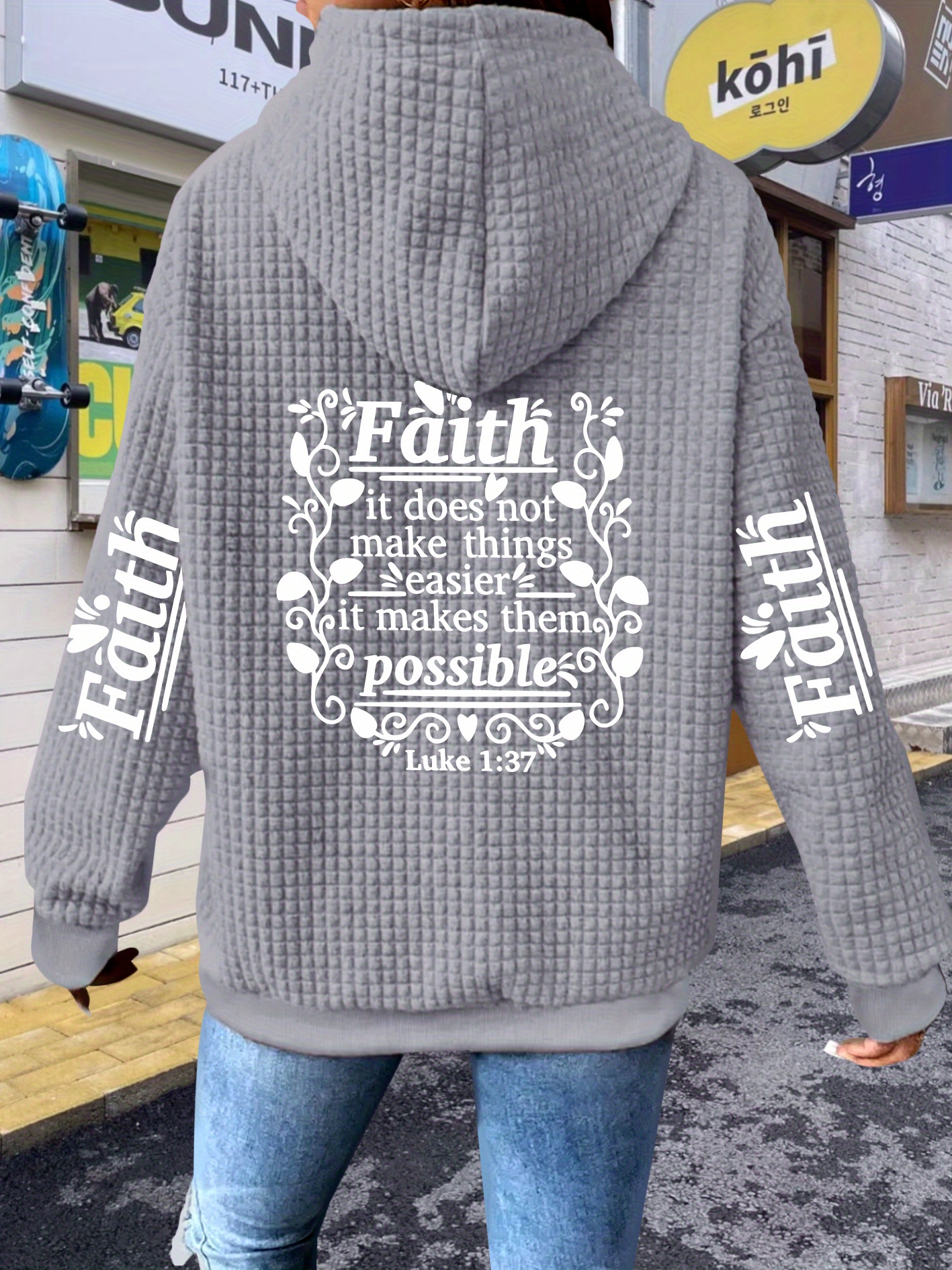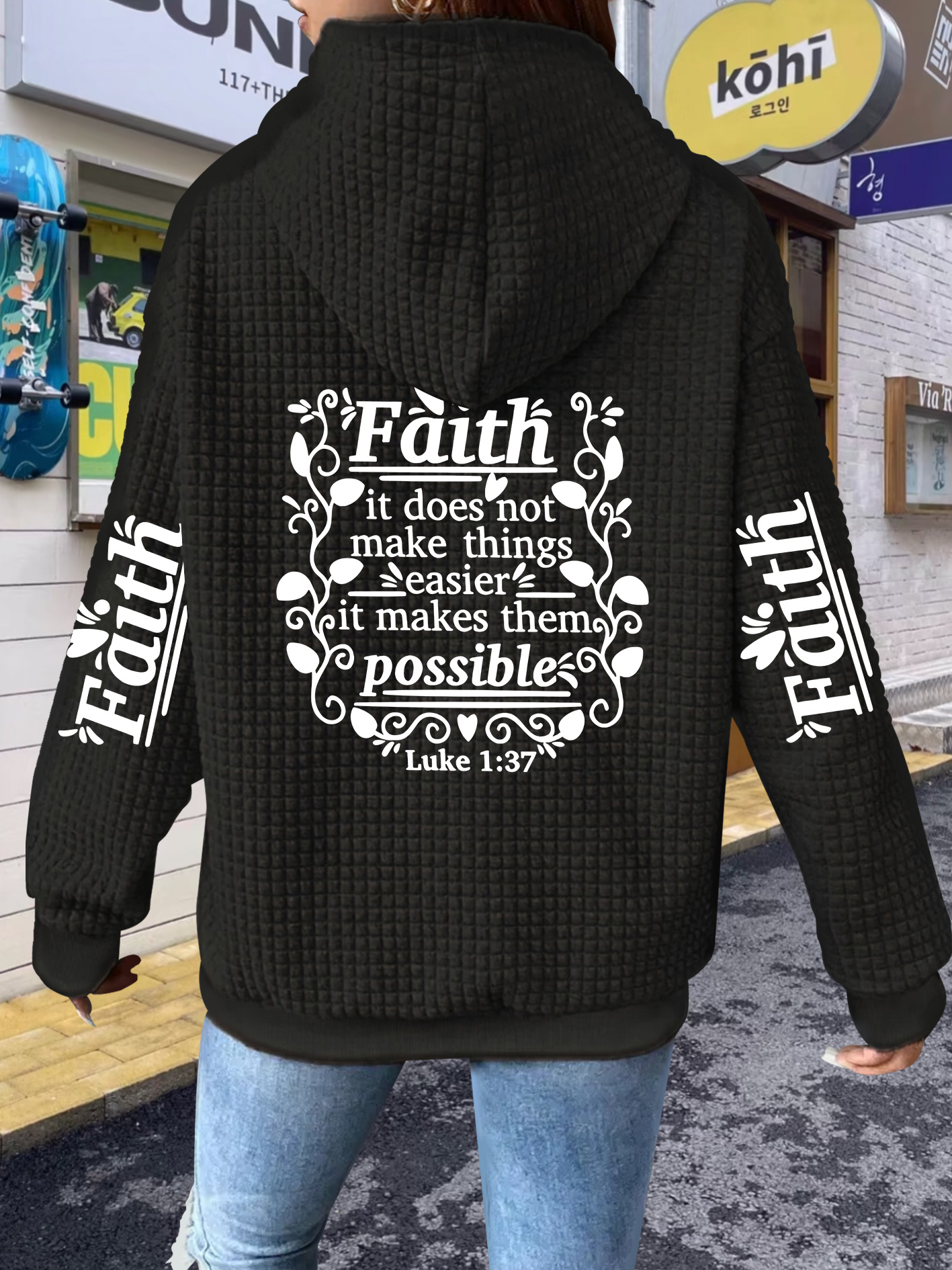 Women’S Casual Waffle Zip-Up Hoodie with Drawstring – “Faith” Print, Geometric Design, Polyester, Machine Washable, All-Season Comfort Fit, Casual Wear Hoodie | Waffle Hoodie | Zippered Hoodie