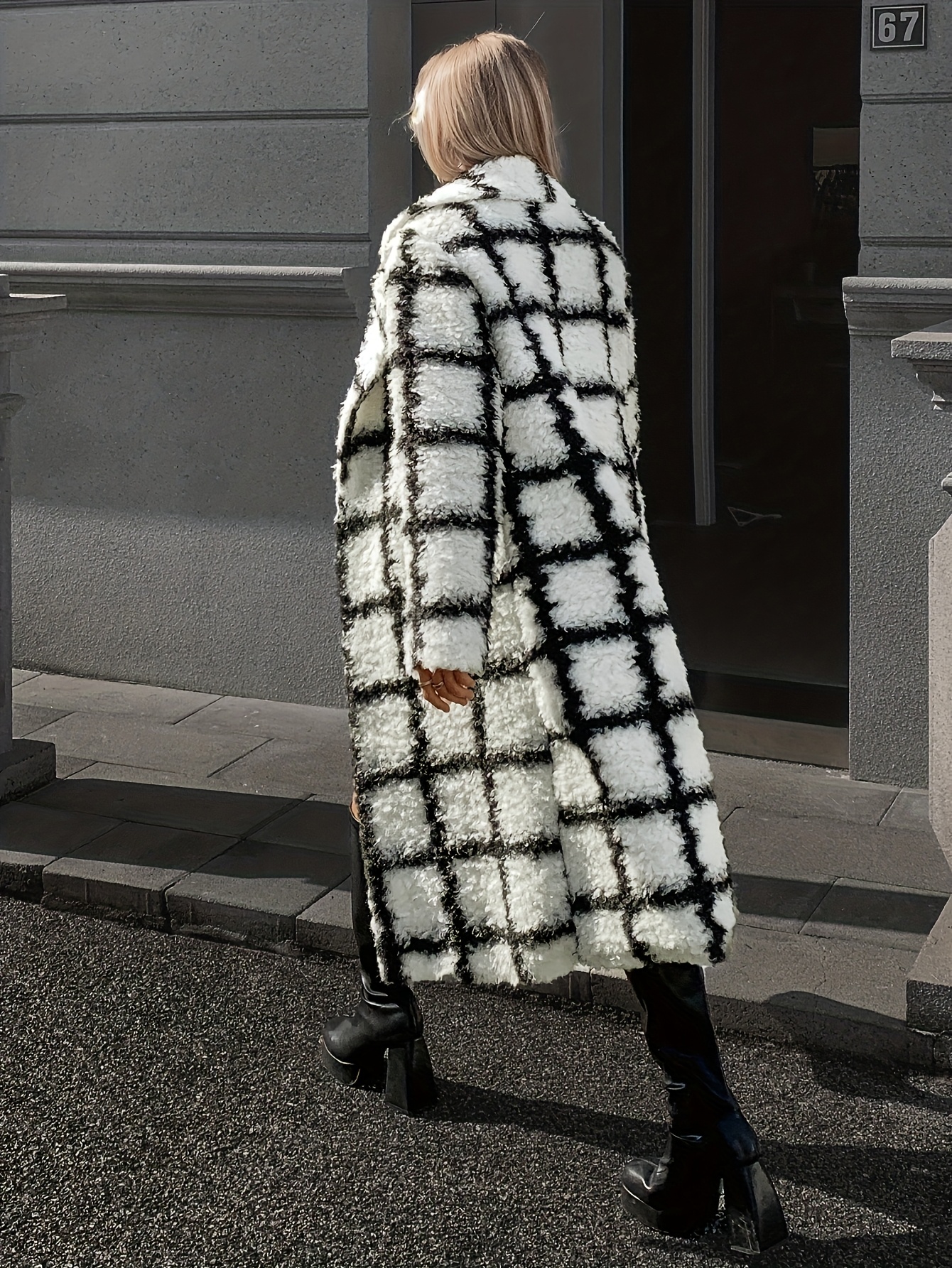 Women’s Elegant Black and White Coat – Cold Weather Jacket – Machine Washable Non-Stretch – Long Formal & Everyday Winter Outerwear for Office, Parties, Casual Outfits – YY0623018