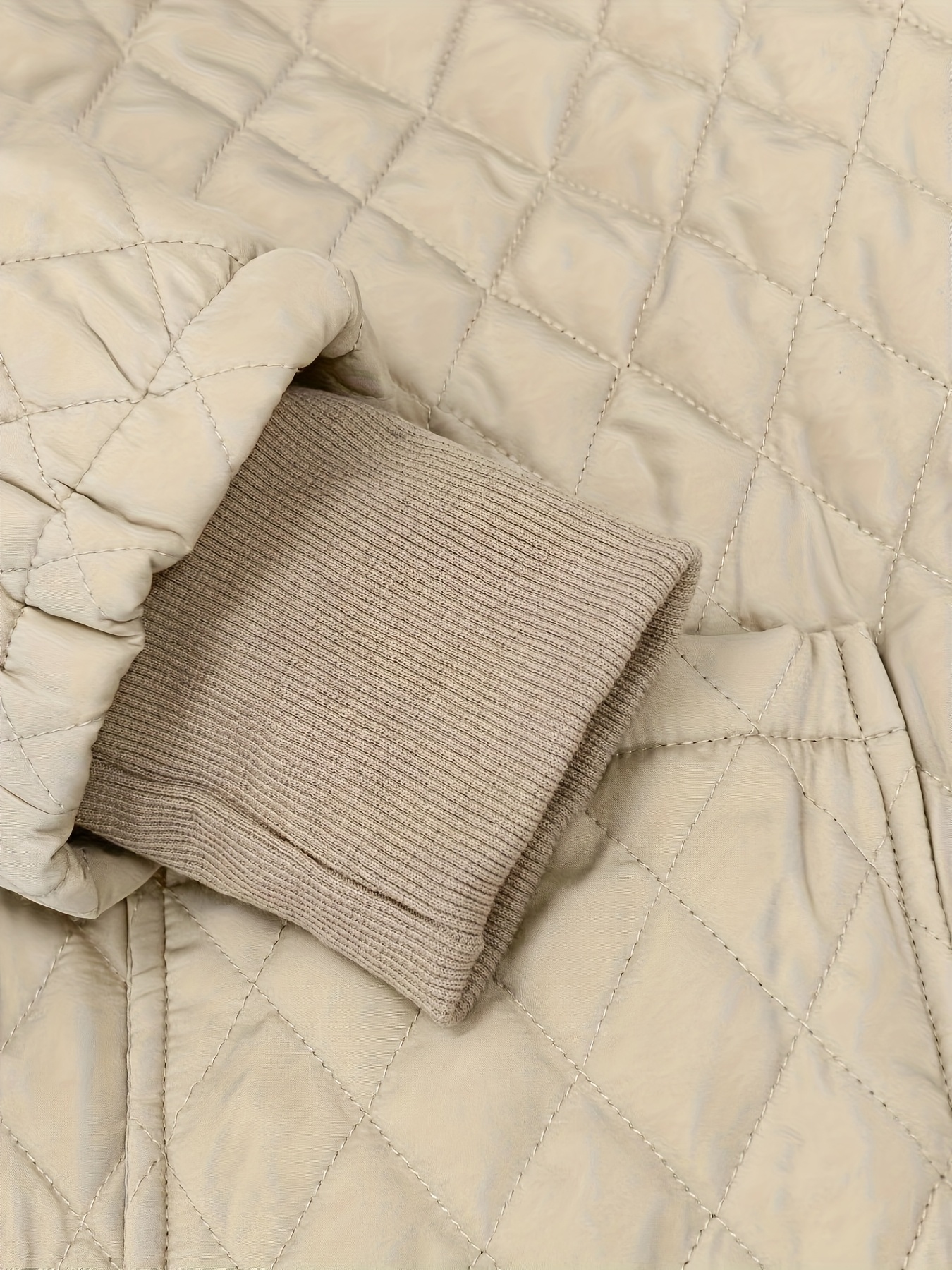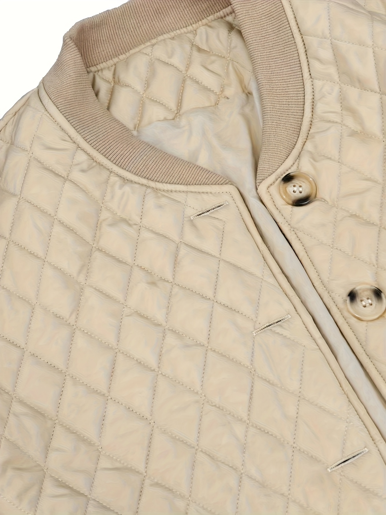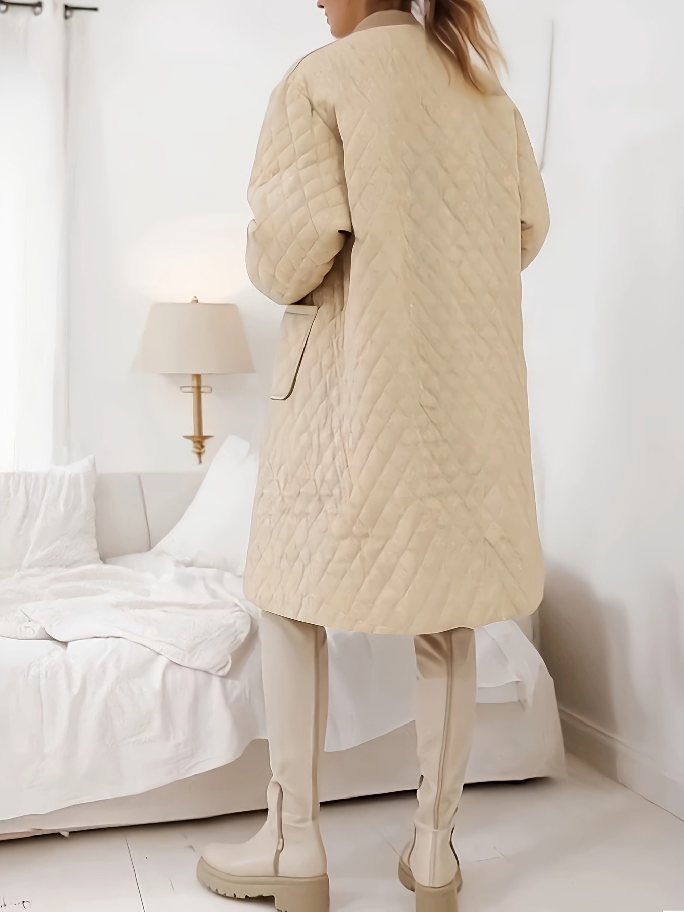 Women’S Elegant Quilted Mid-Length Jacket – Windproof, Warm, Long Sleeve with Double Pockets, Button-Up Front, Perfect for Fall & Winter, Stylish Layering Piece, Winter Jacket
