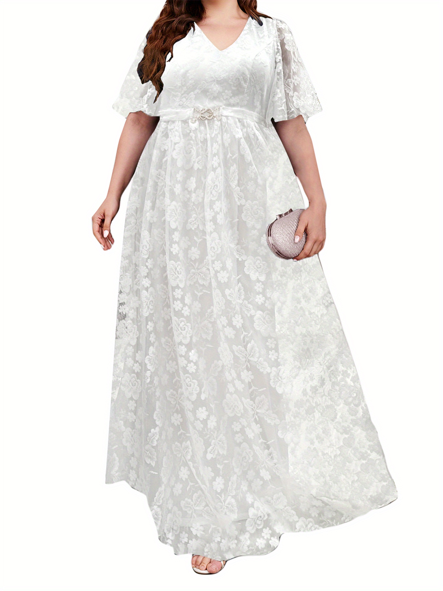 Women’s Floral Lace Long Dress Half Sleeve V-Neck Plus Size Beach Party Evening Flowy Dress 9pcs