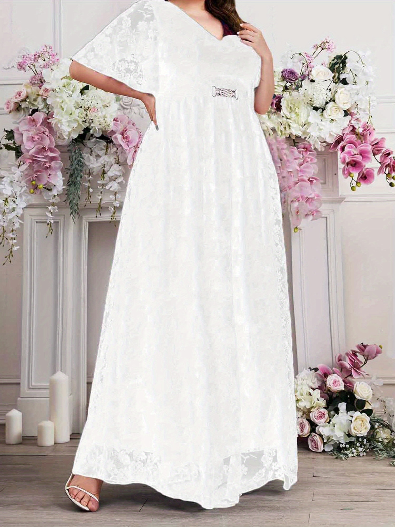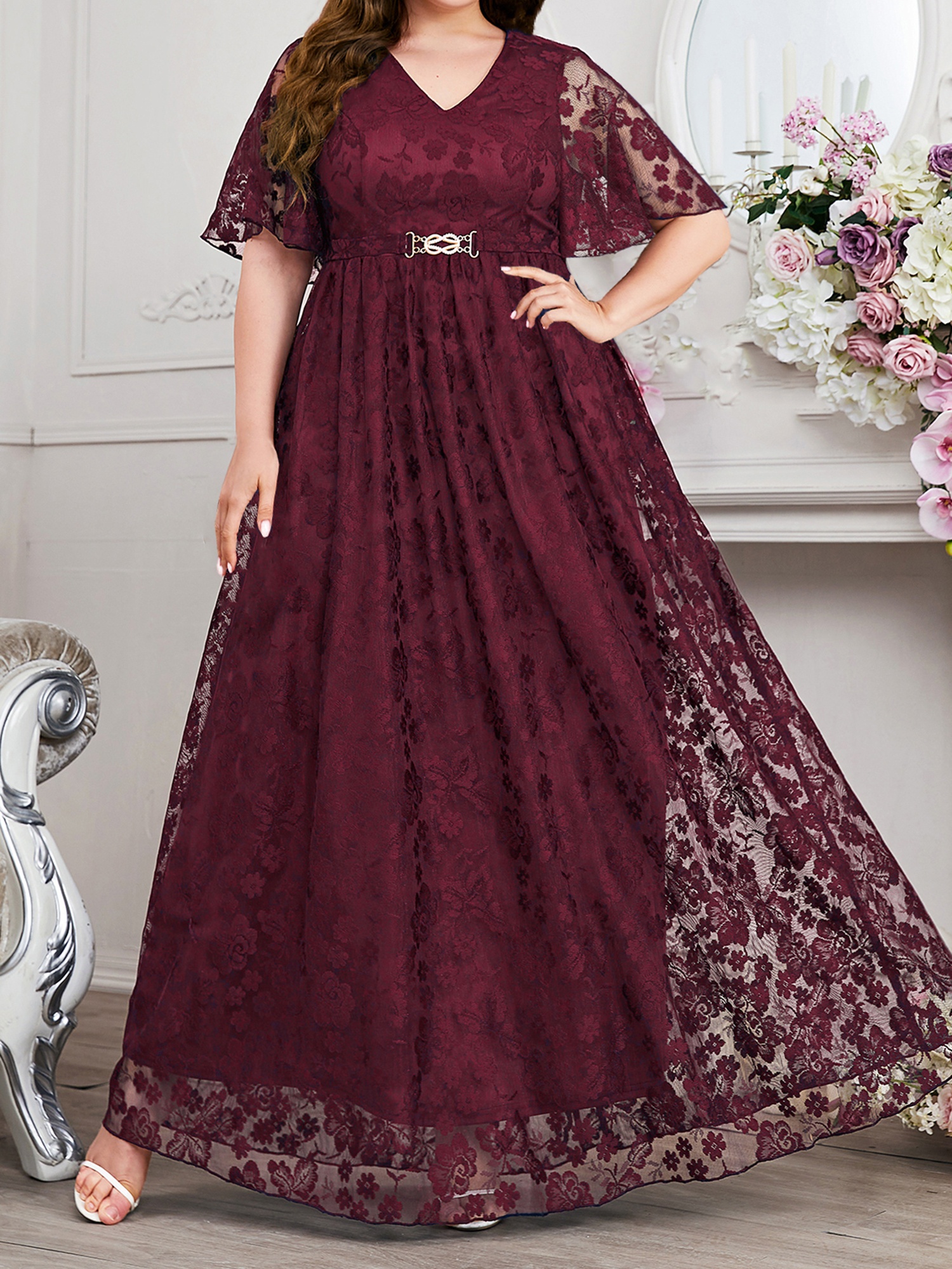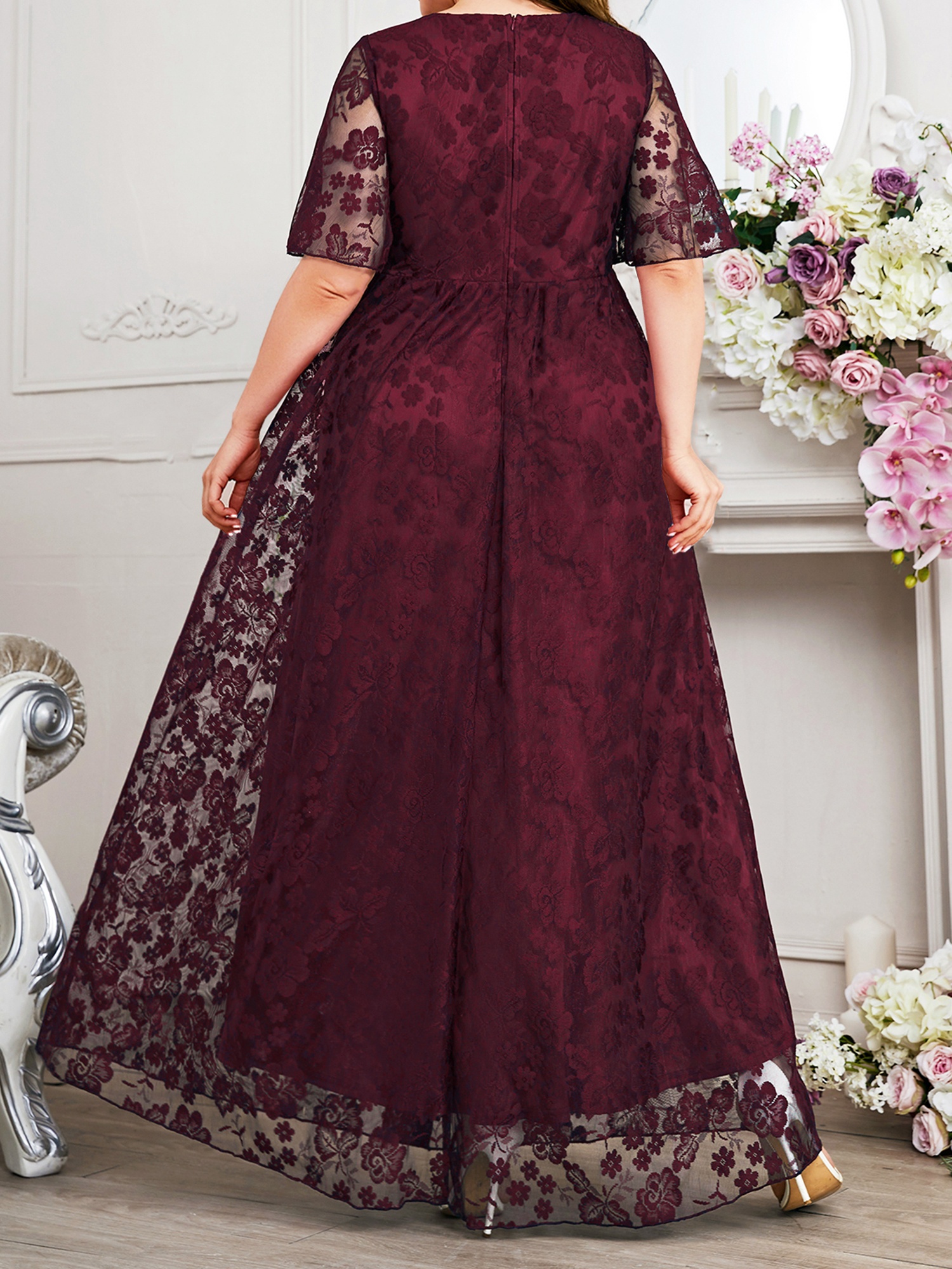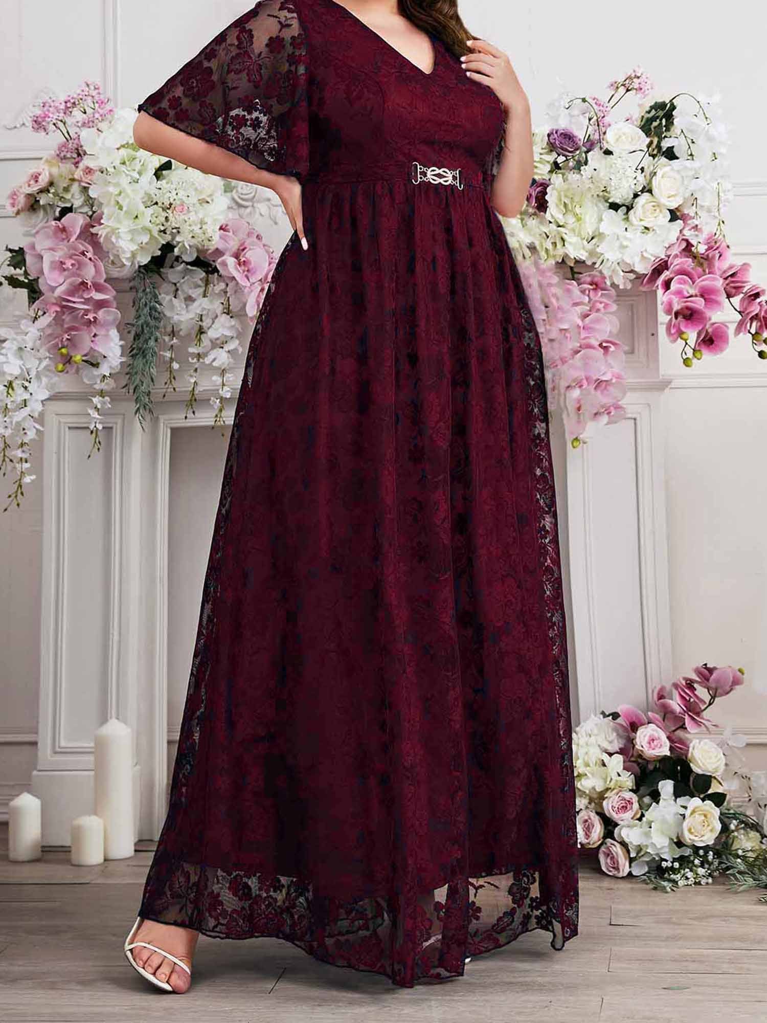 Women’s Floral Lace Long Dress Half Sleeve V-Neck Plus Size Beach Party Evening Flowy Dress 9pcs