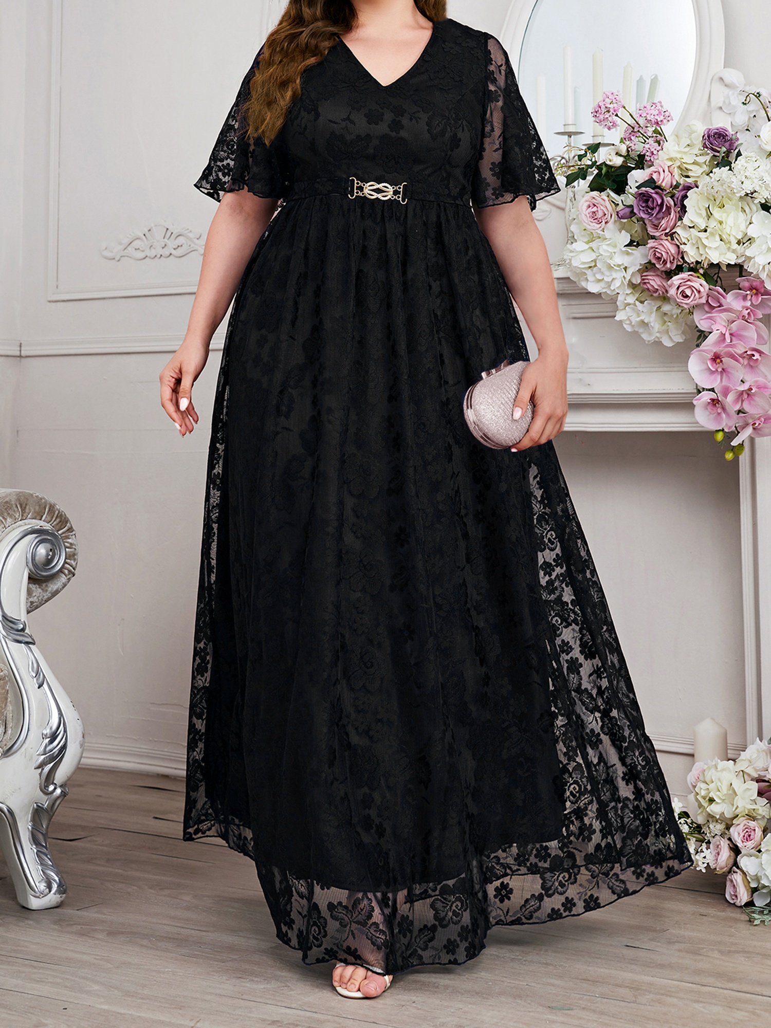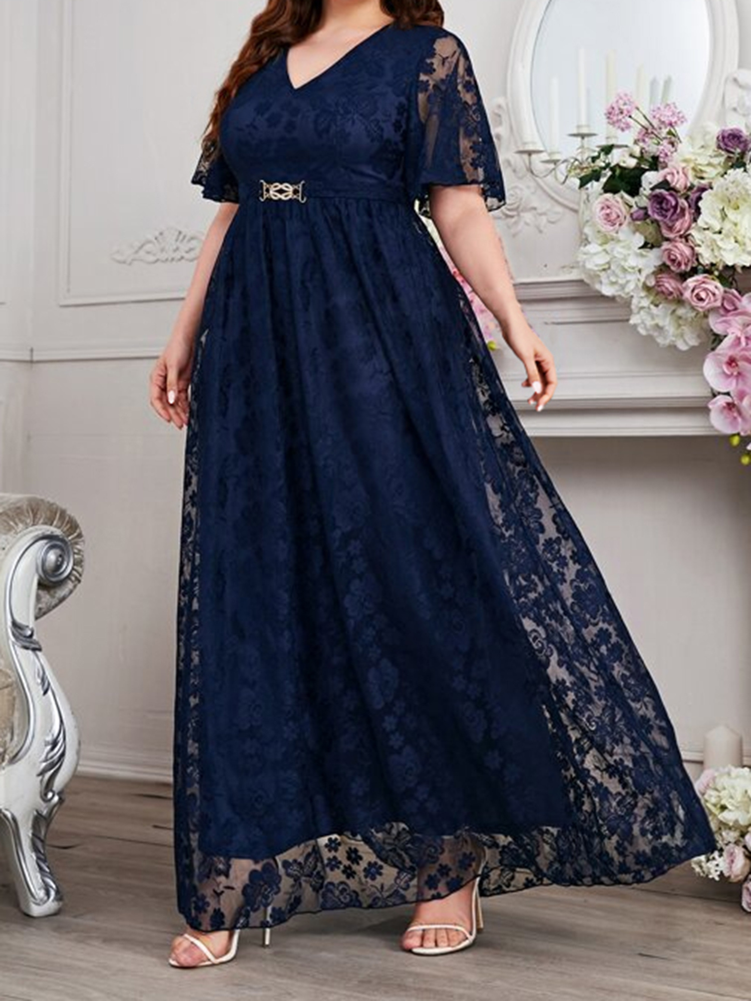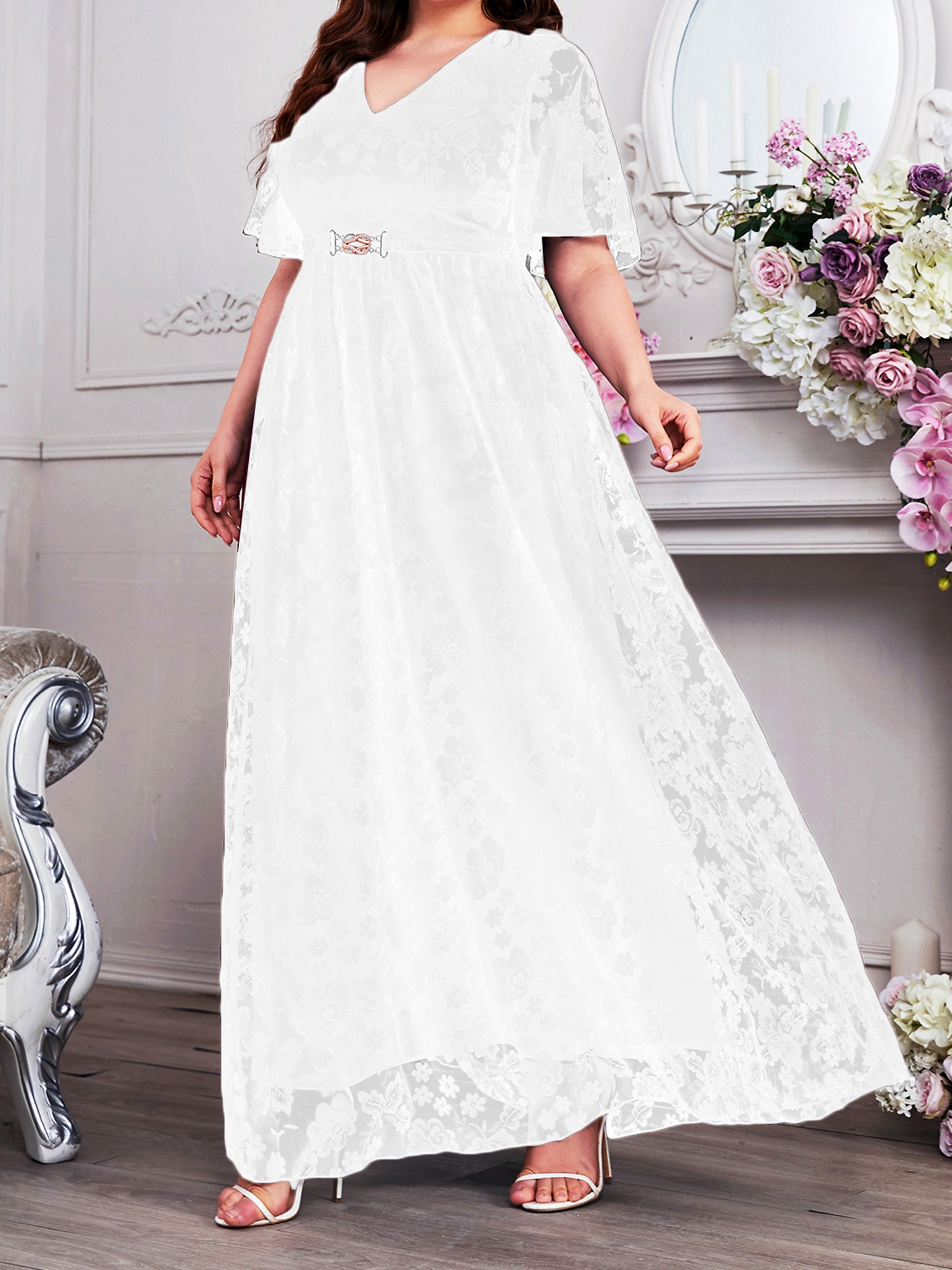 Women’s Floral Lace Long Dress Half Sleeve V-Neck Plus Size Beach Party Evening Flowy Dress 9pcs