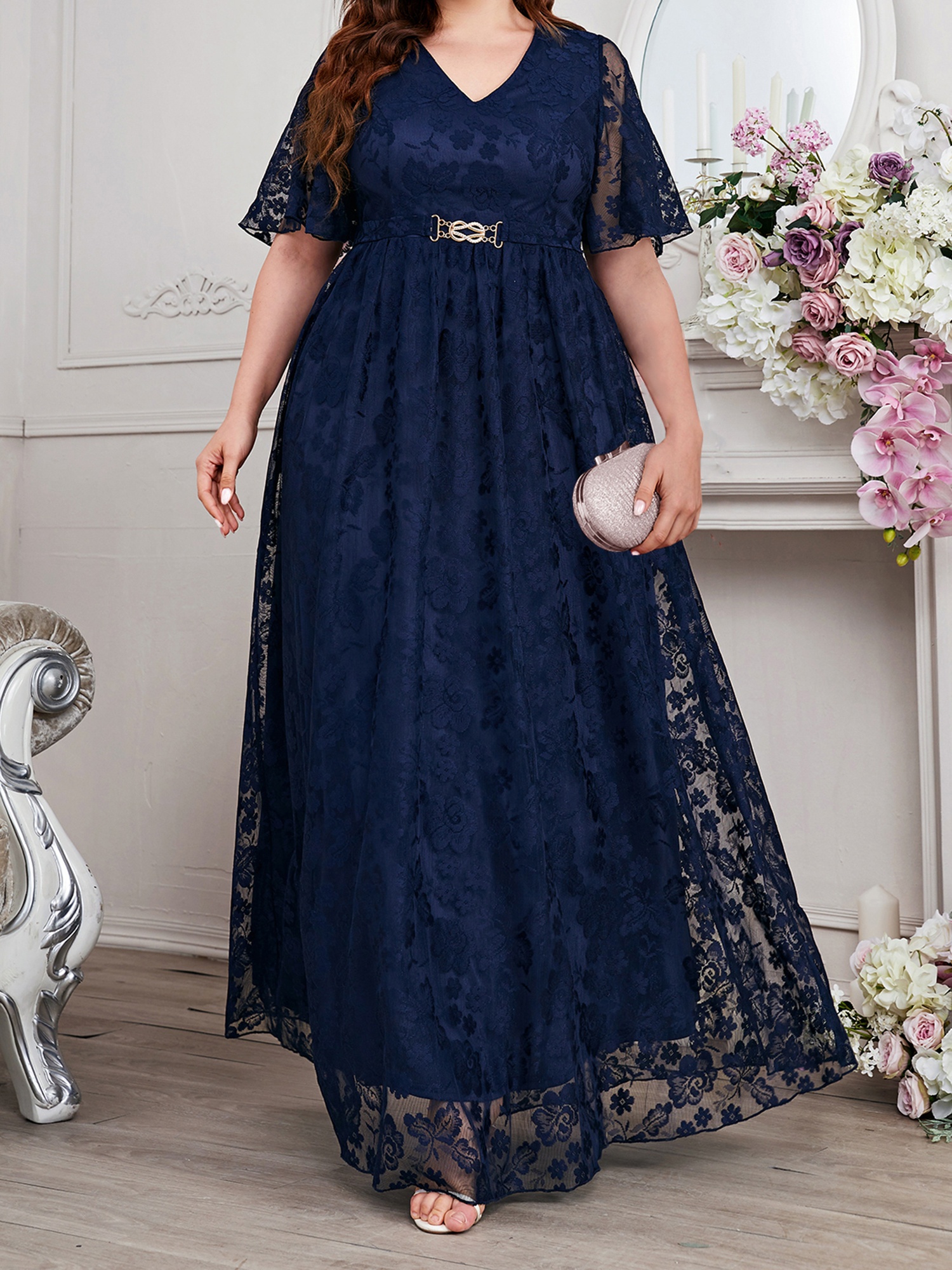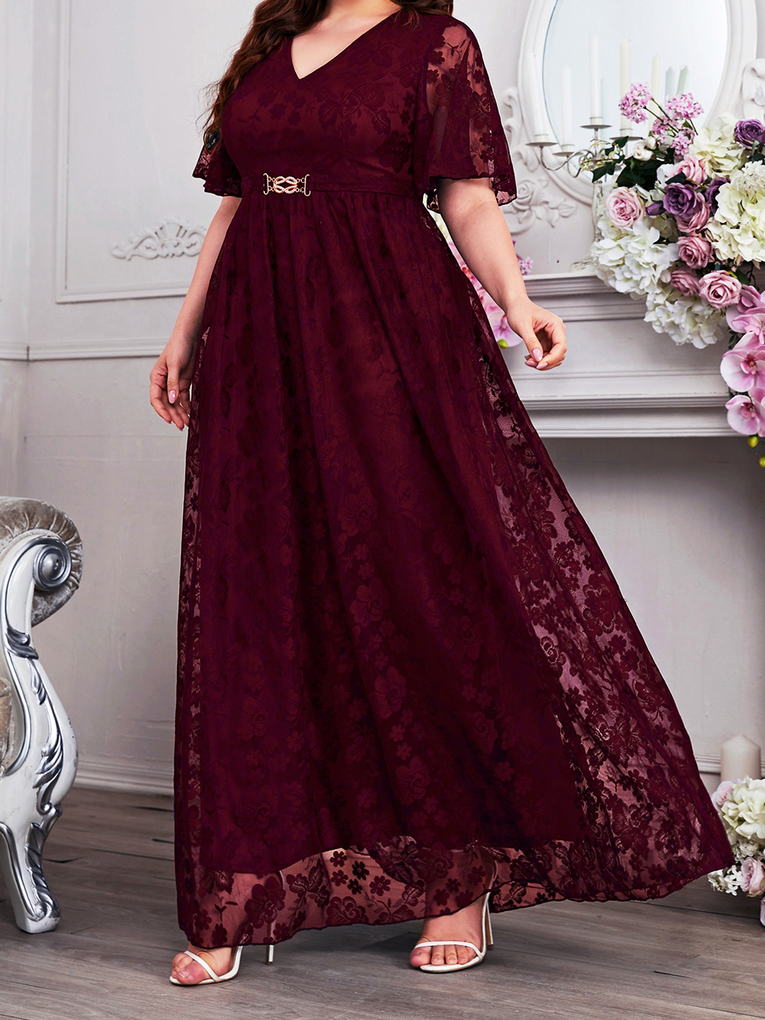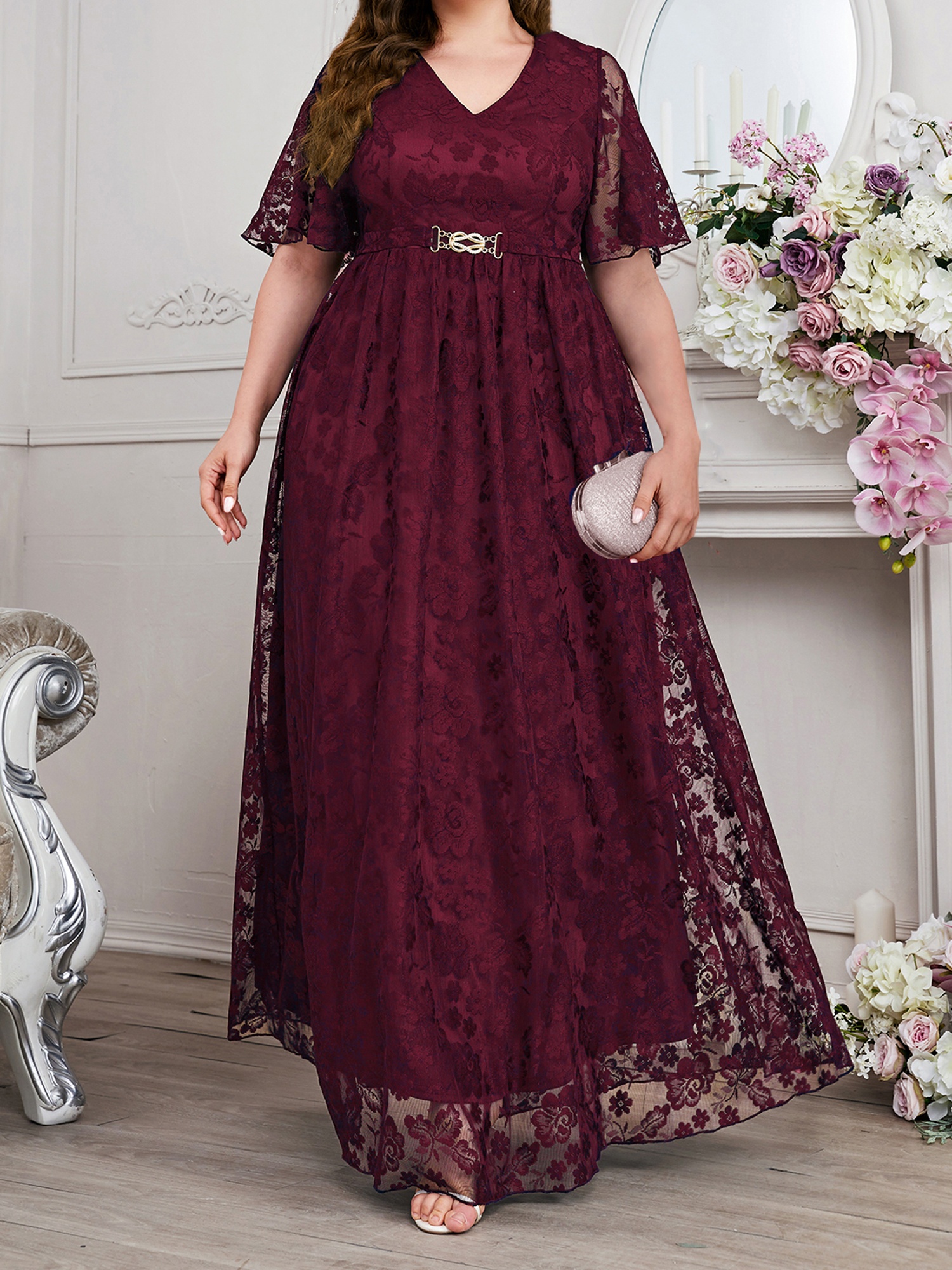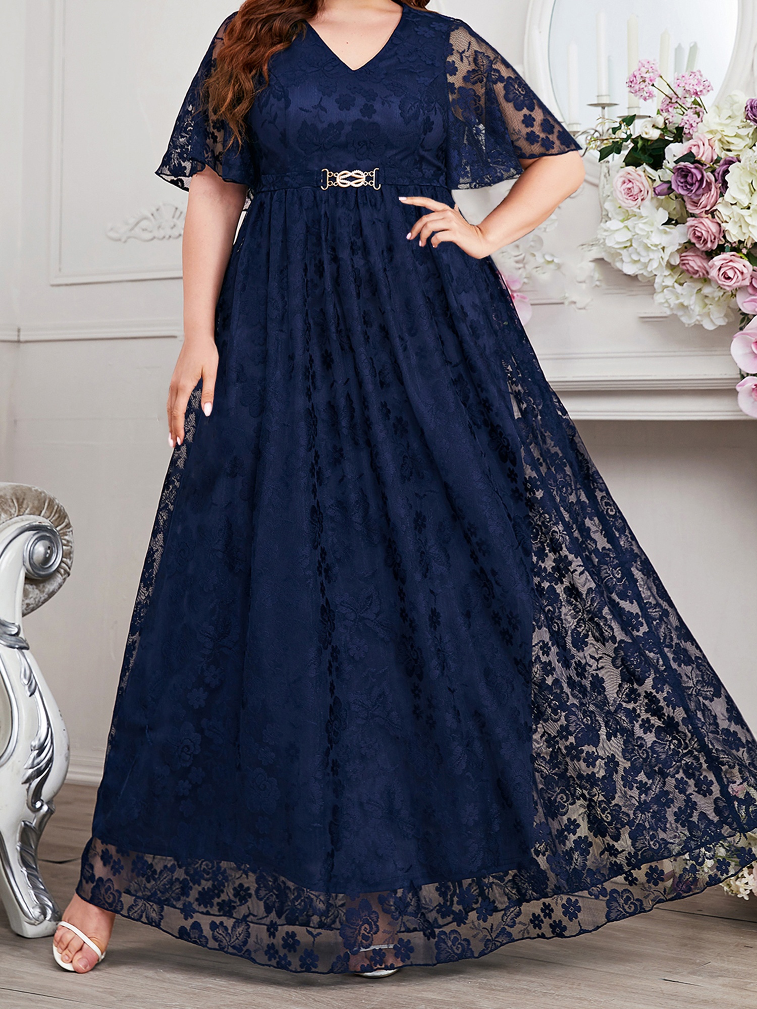 Women’s Floral Lace Long Dress Half Sleeve V-Neck Plus Size Beach Party Evening Flowy Dress 9pcs