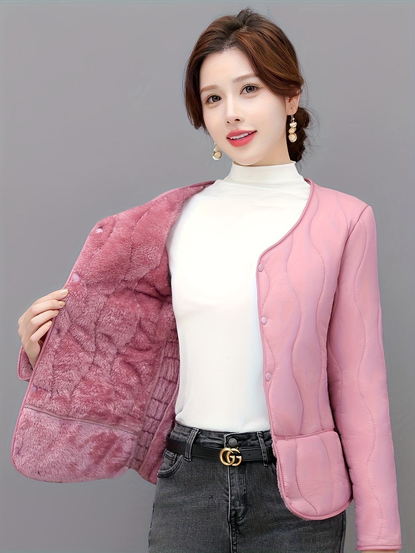 とてもいいです Women’S Lightweight Fleece-Lined Winter Jacket – Cozy Long Sleeve Button-Up Coat with Flap Pockets, Solid Color, Warm & Stylish for Fall/Winter, Perfect for Casual or Chic Outfits, Winter Coats-推奨100%