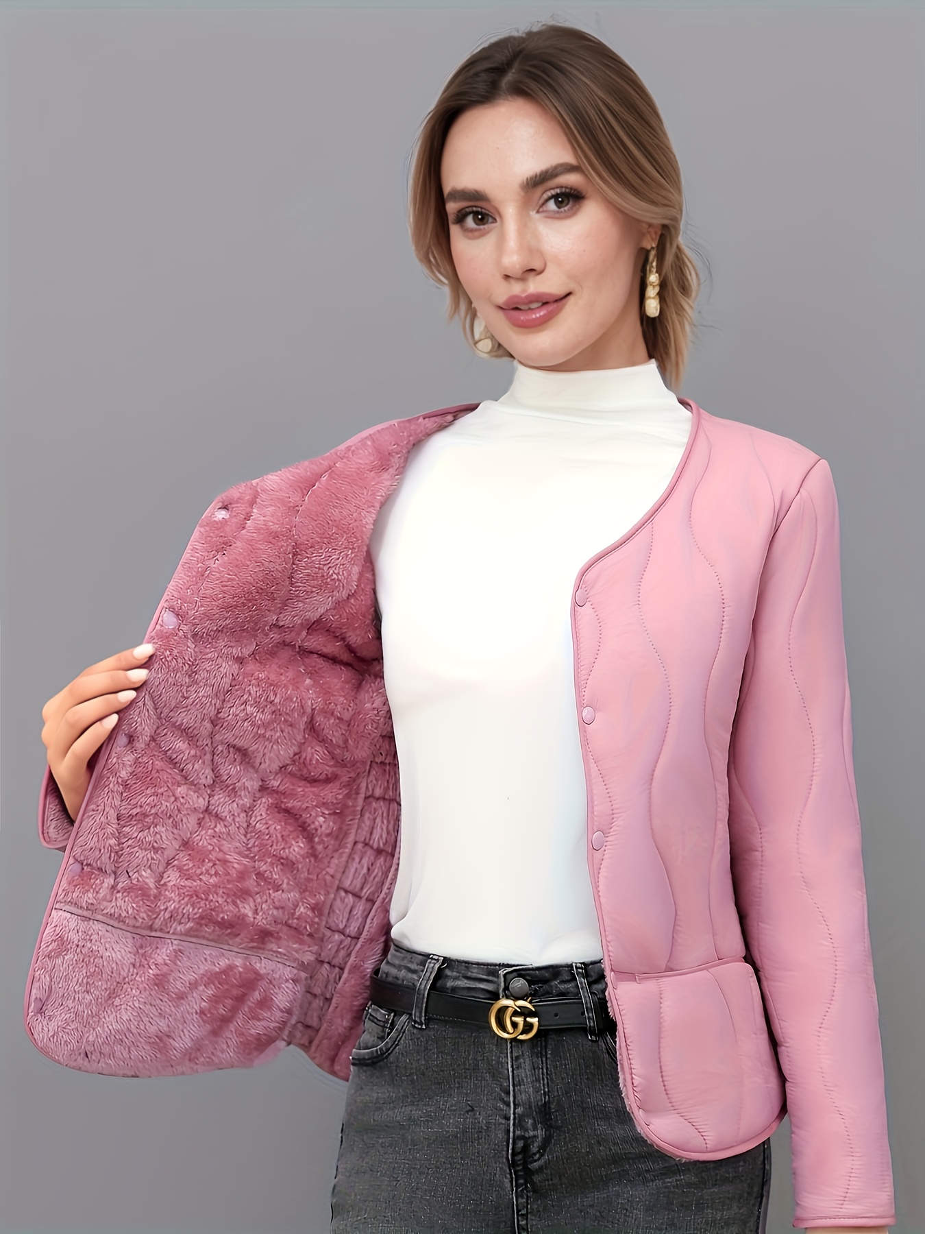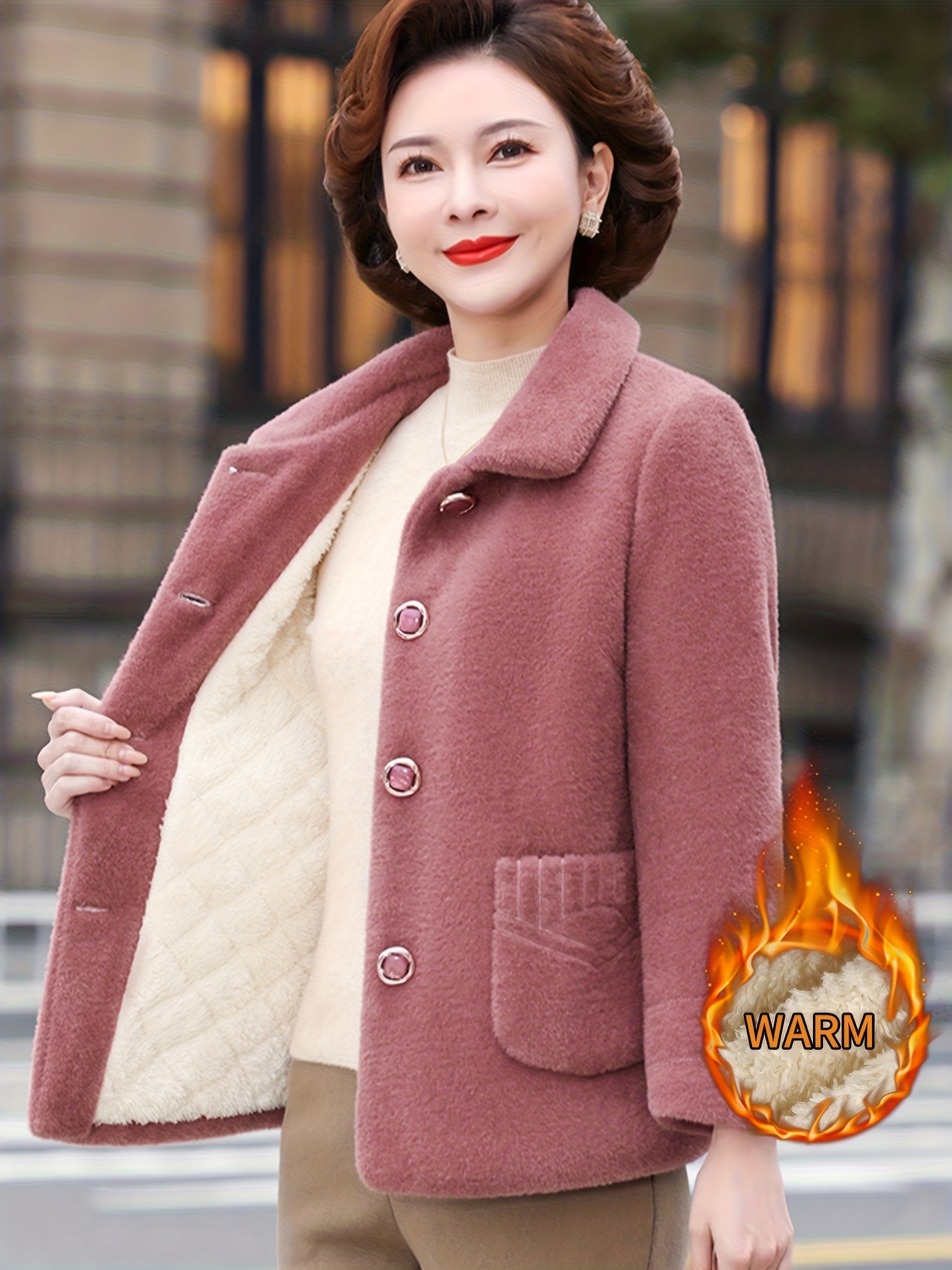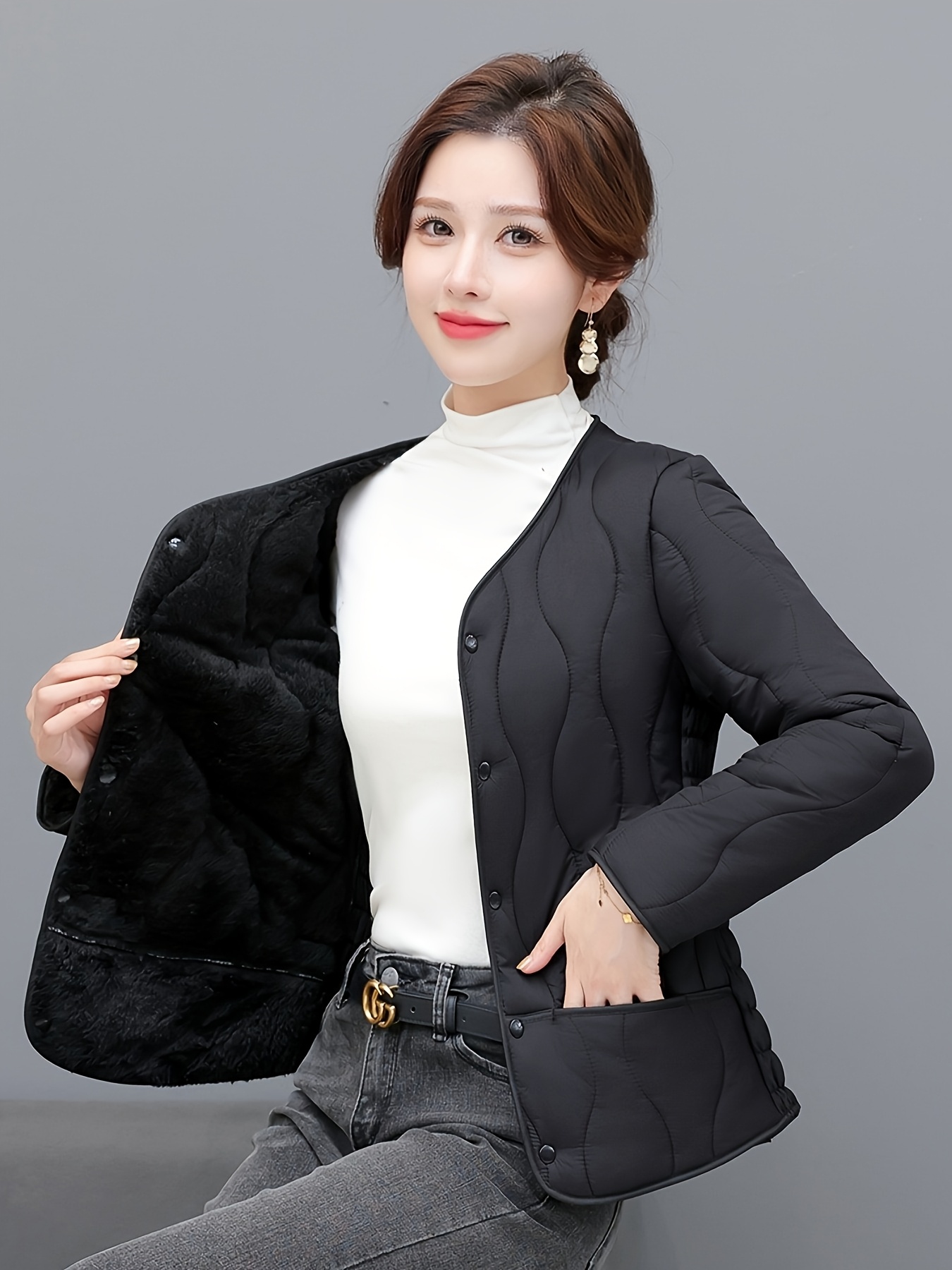 とてもいいです Women’S Lightweight Fleece-Lined Winter Jacket – Cozy Long Sleeve Button-Up Coat with Flap Pockets, Solid Color, Warm & Stylish for Fall/Winter, Perfect for Casual or Chic Outfits, Winter Coats-推奨100%