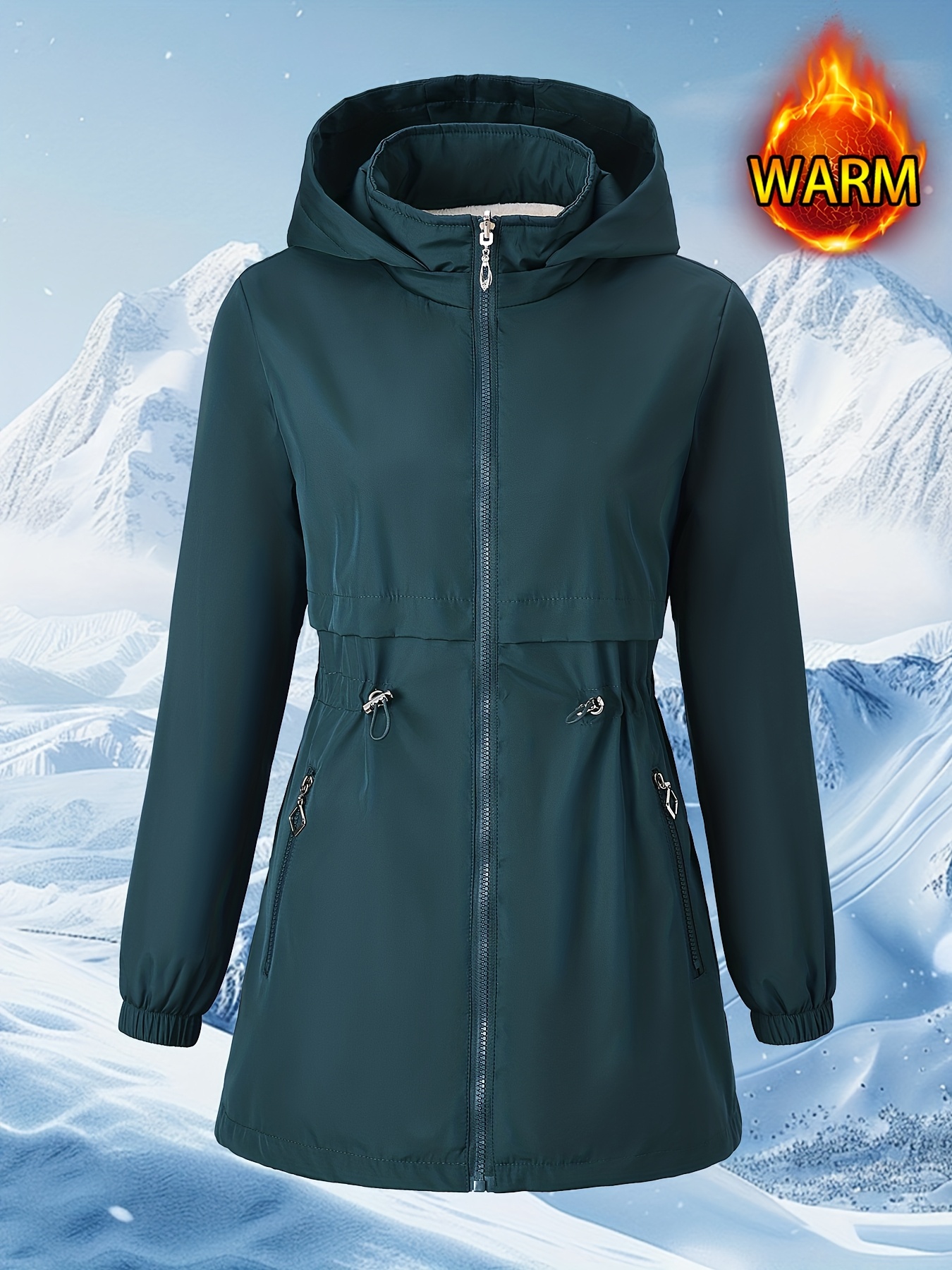 Women’S Lightweight Hooded Jacket – Thick Winter Coat with Full-Zip Front Closure, Non-Stretch Fabric, Drawstring Waist & Pockets – Cold Weather Outerwear for Everyday &, Formal Events – Available In, Navy, Brown, Olive Green, Grey