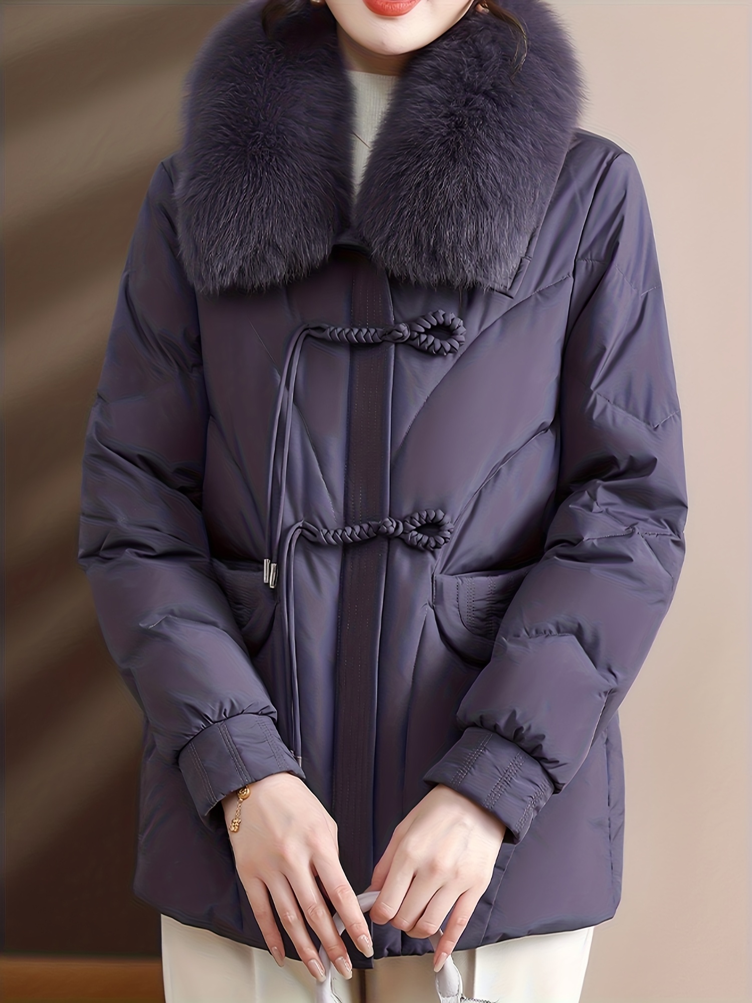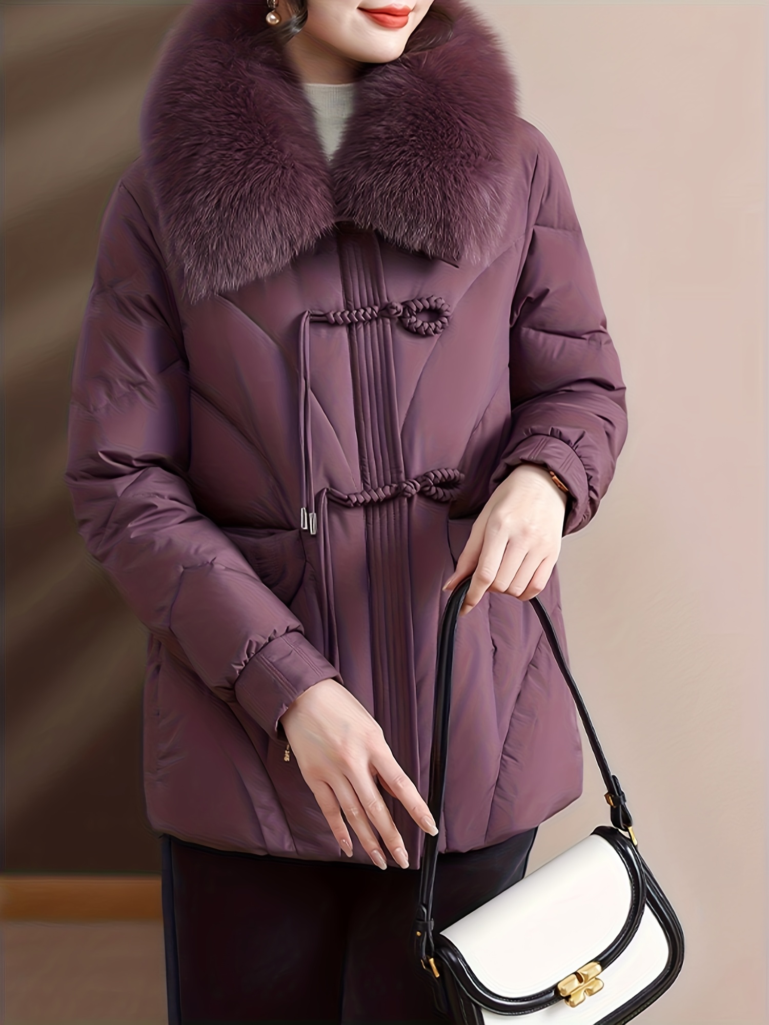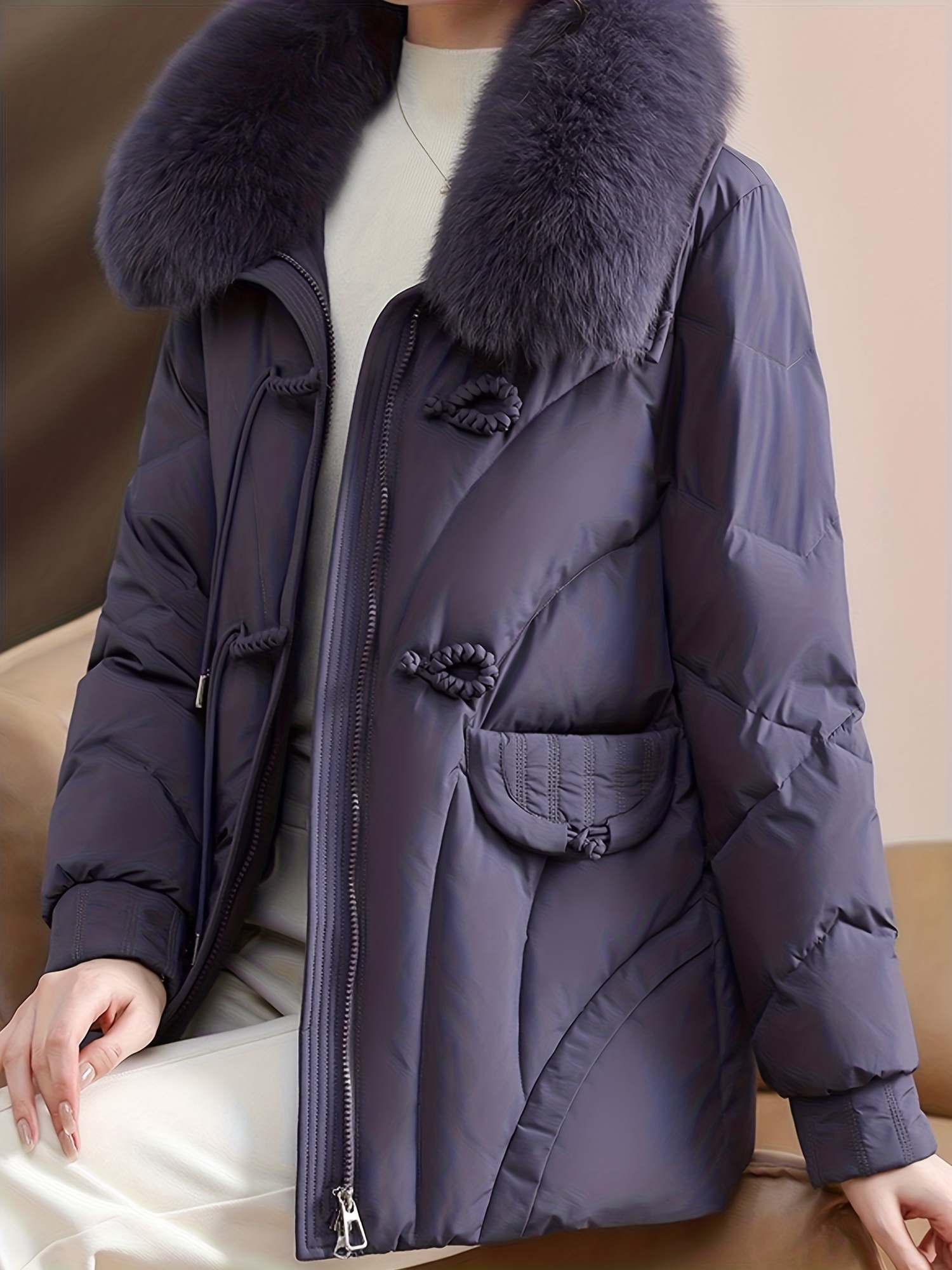Women’S Middle-Aged Mom’S Winter New Collared Down Jacket | Stylish Thickened Warm Outerwear with Duck Down, Cold-Resistant Noble, Solid Color, Chic Style, Pockets