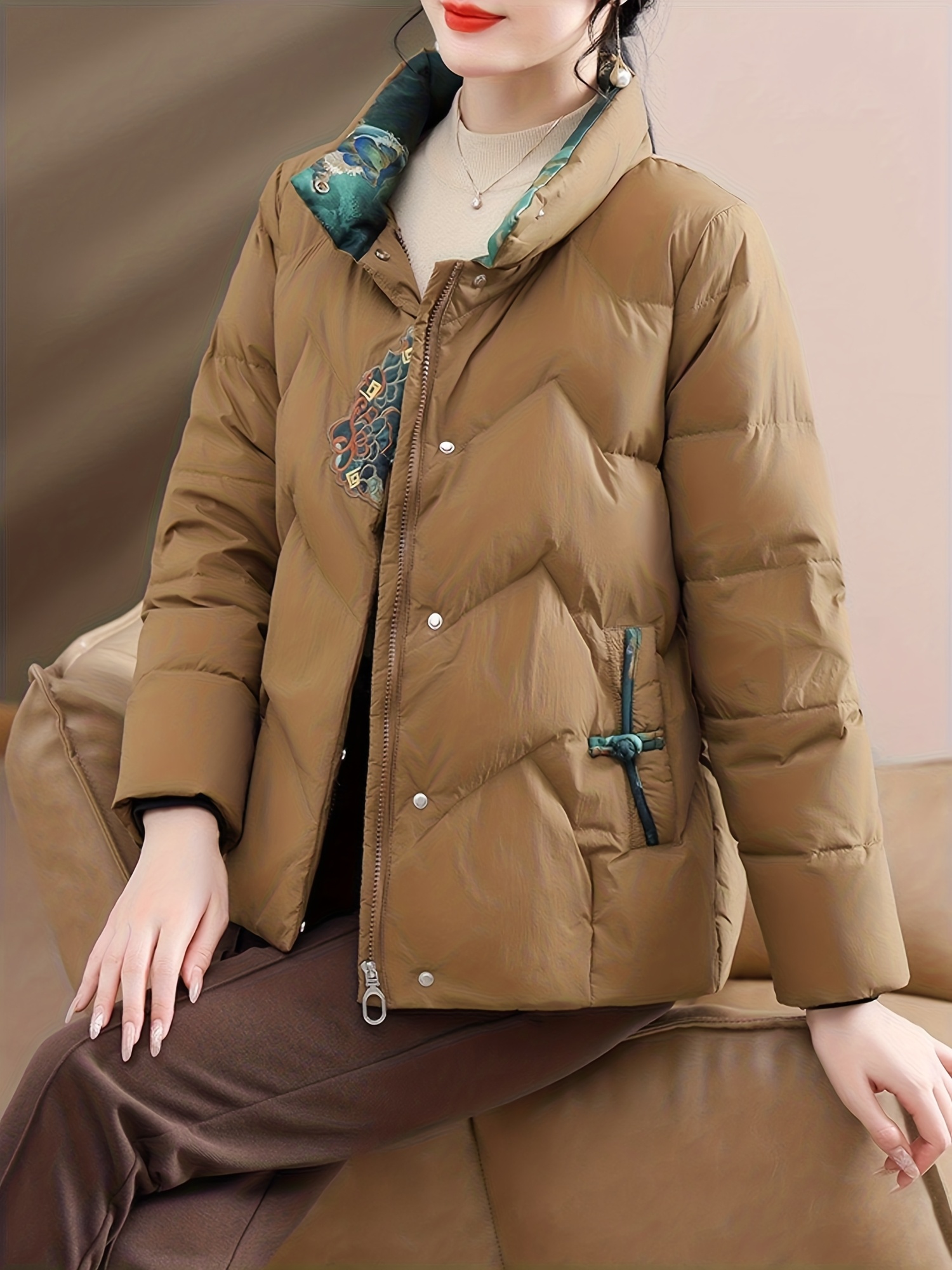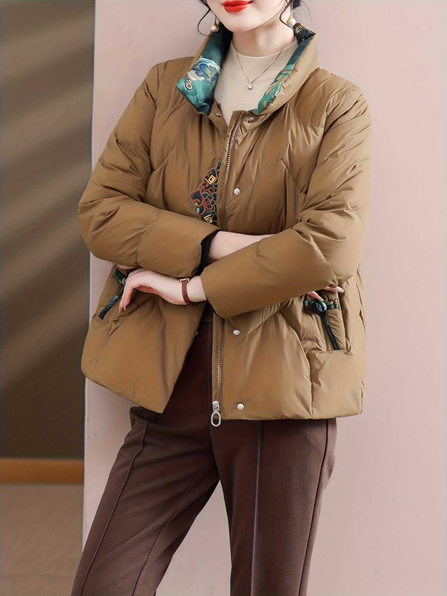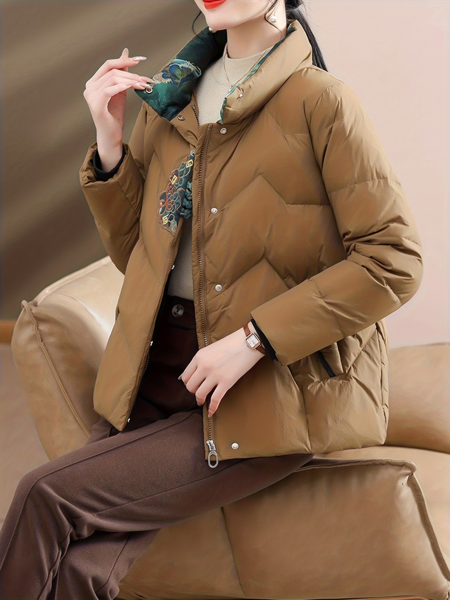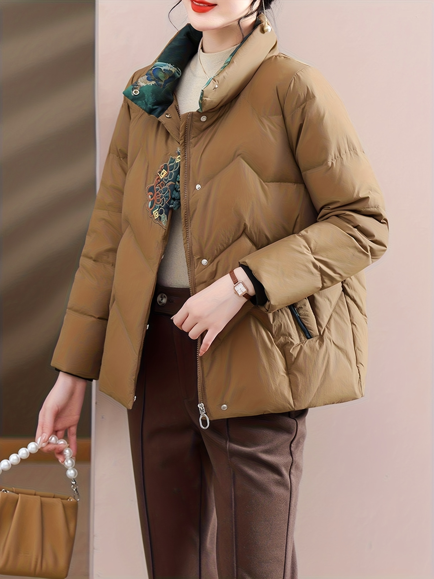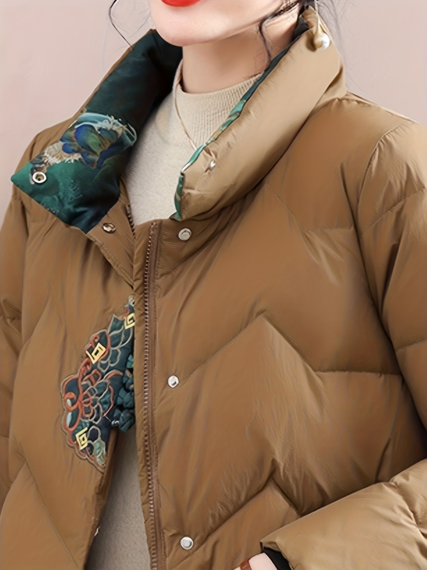 Women’S Middle-Aged Mom’S Winter New Down Jacket | Noble Thickened Warm Outerwear, Lightweight, Floral Pattern, Duck Down Filled, Chic Style by Xue Xi
