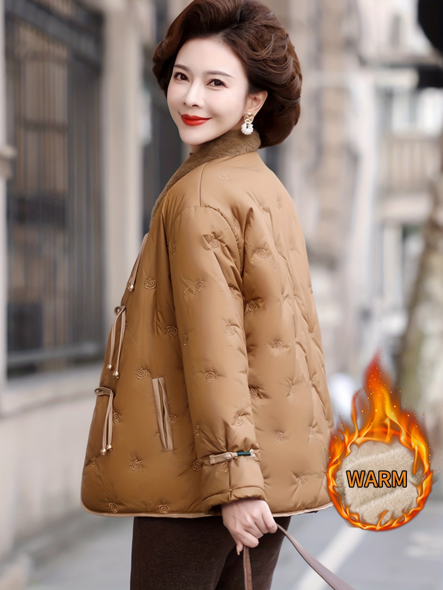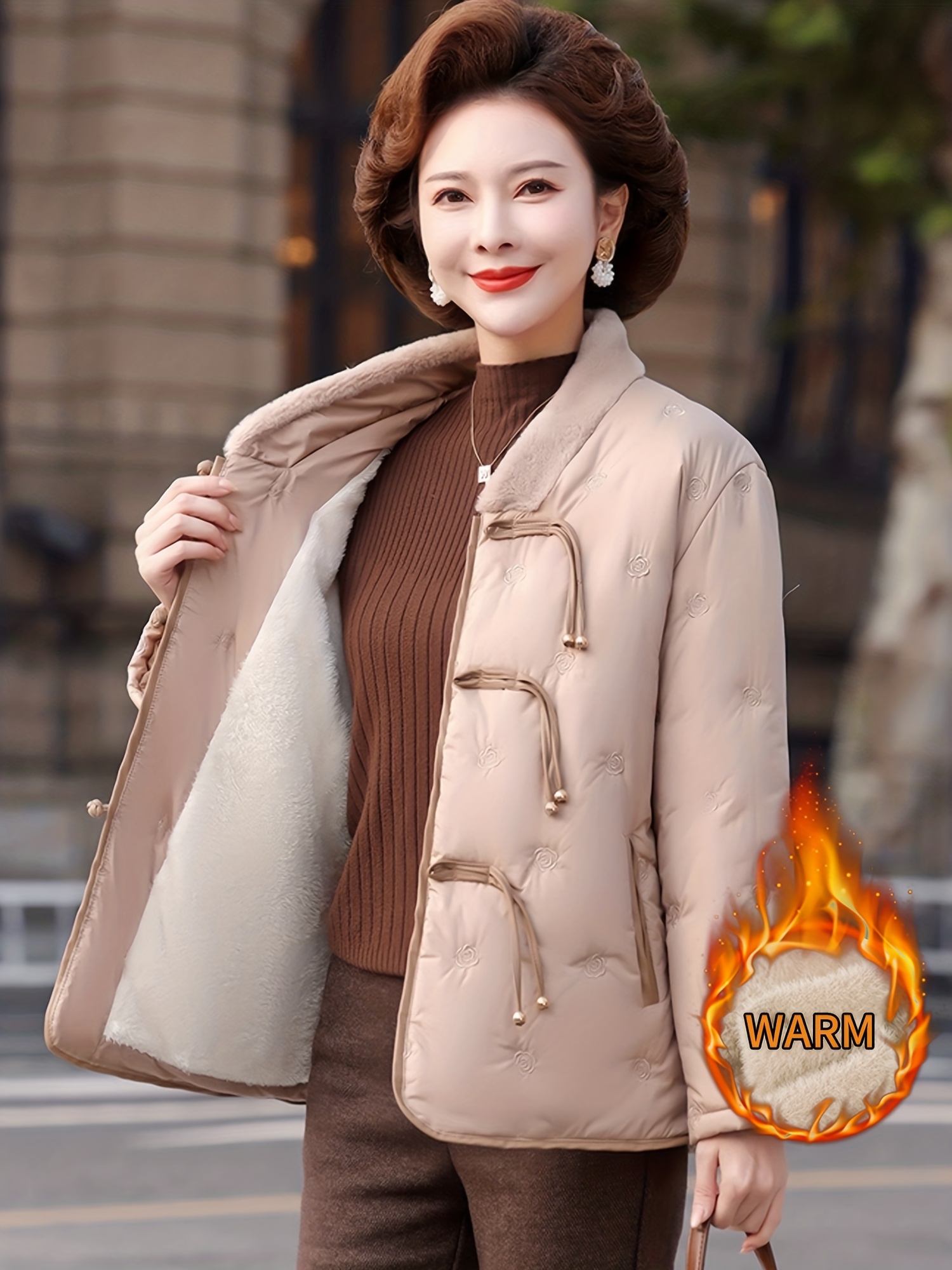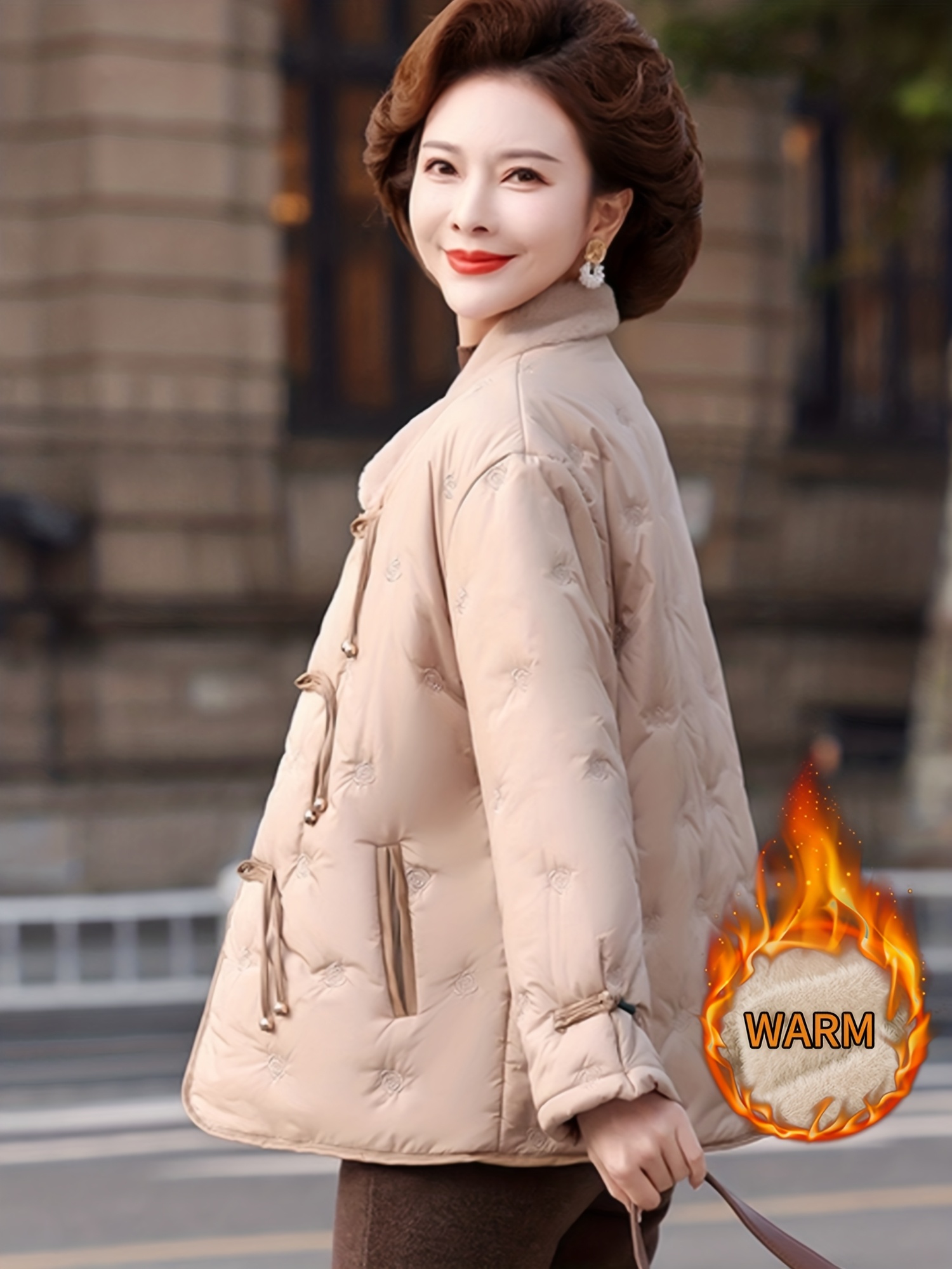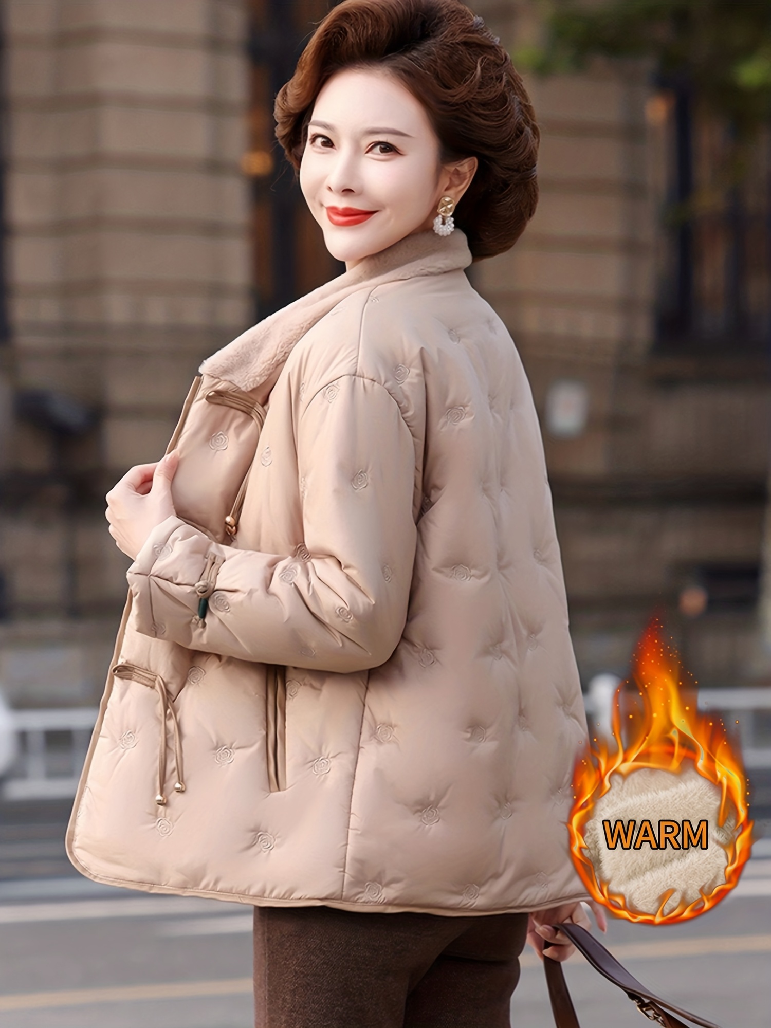 Women’S Middle-Aged Mom’S Winter New Fleece-Lined Quilted Coat | Thickened Warm Jacket, Elegant Solid Color Long Sleeve Outer Wear by Xuexi.