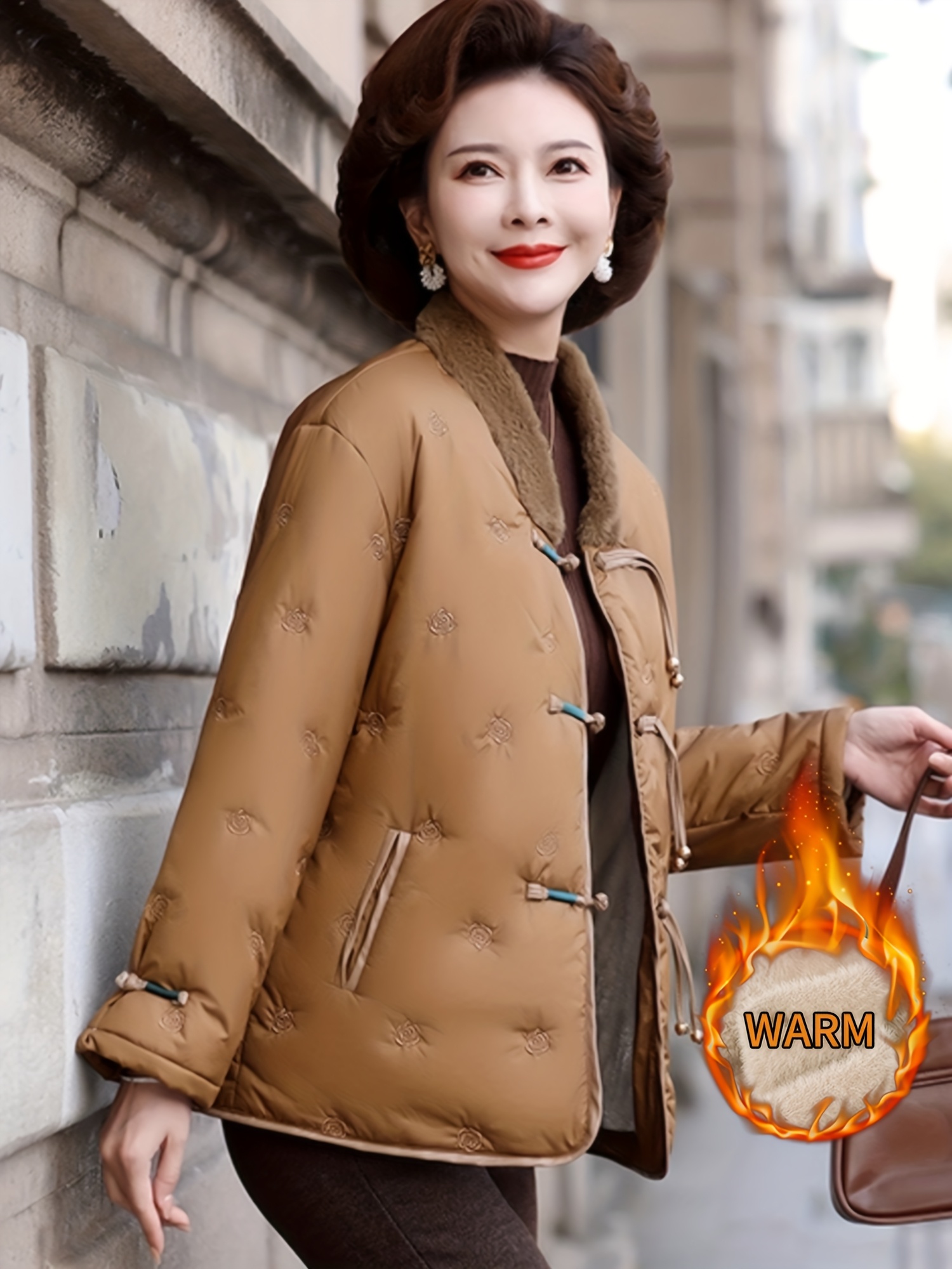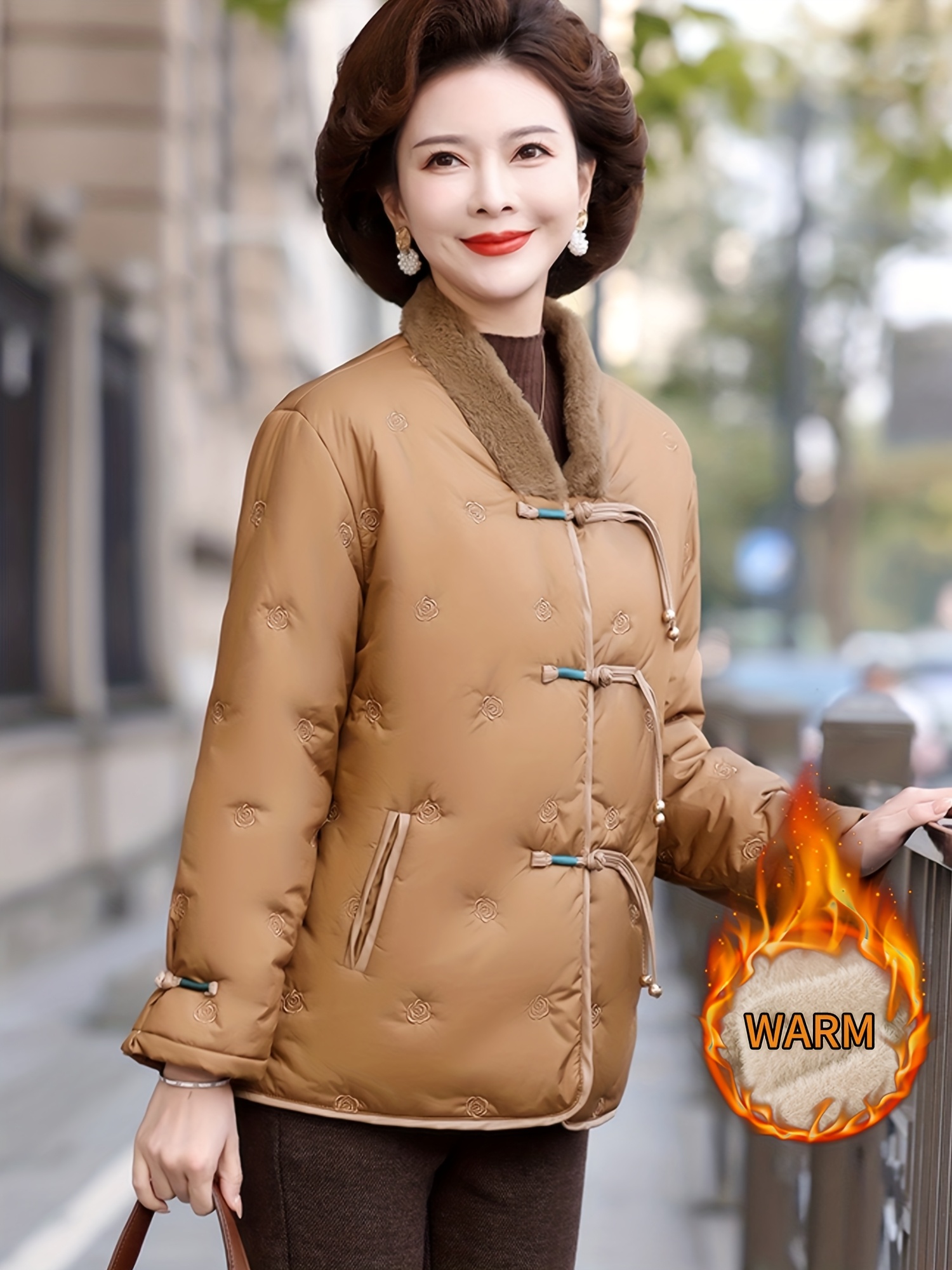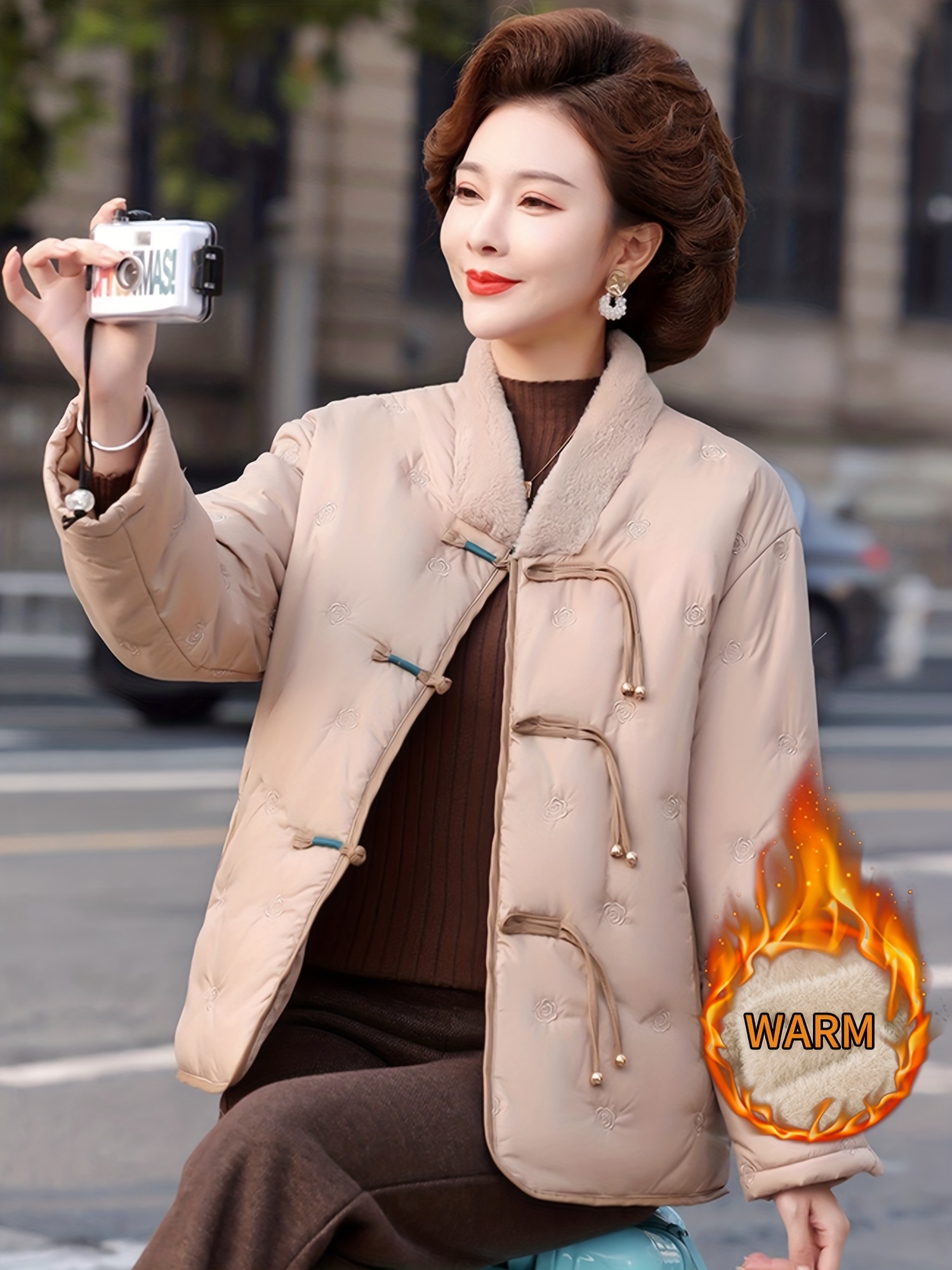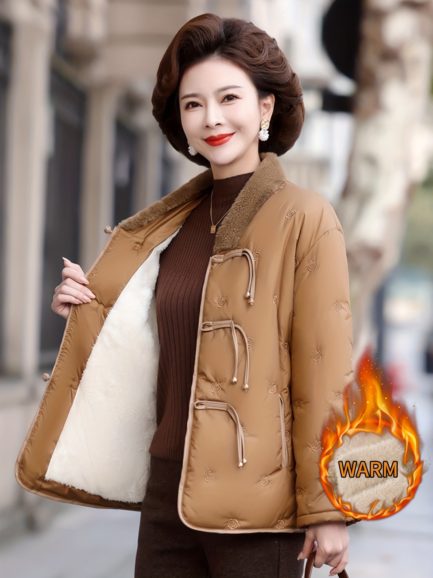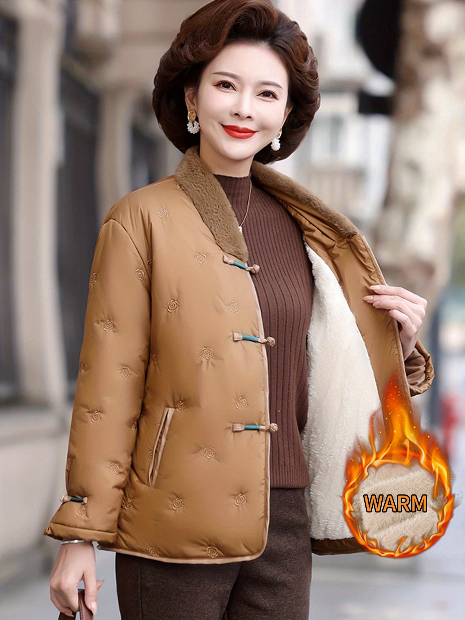 Women’S Middle-Aged Mom’S Winter New Fleece-Lined Quilted Coat | Thickened Warm Jacket, Elegant Solid Color Long Sleeve Outer Wear by Xuexi.